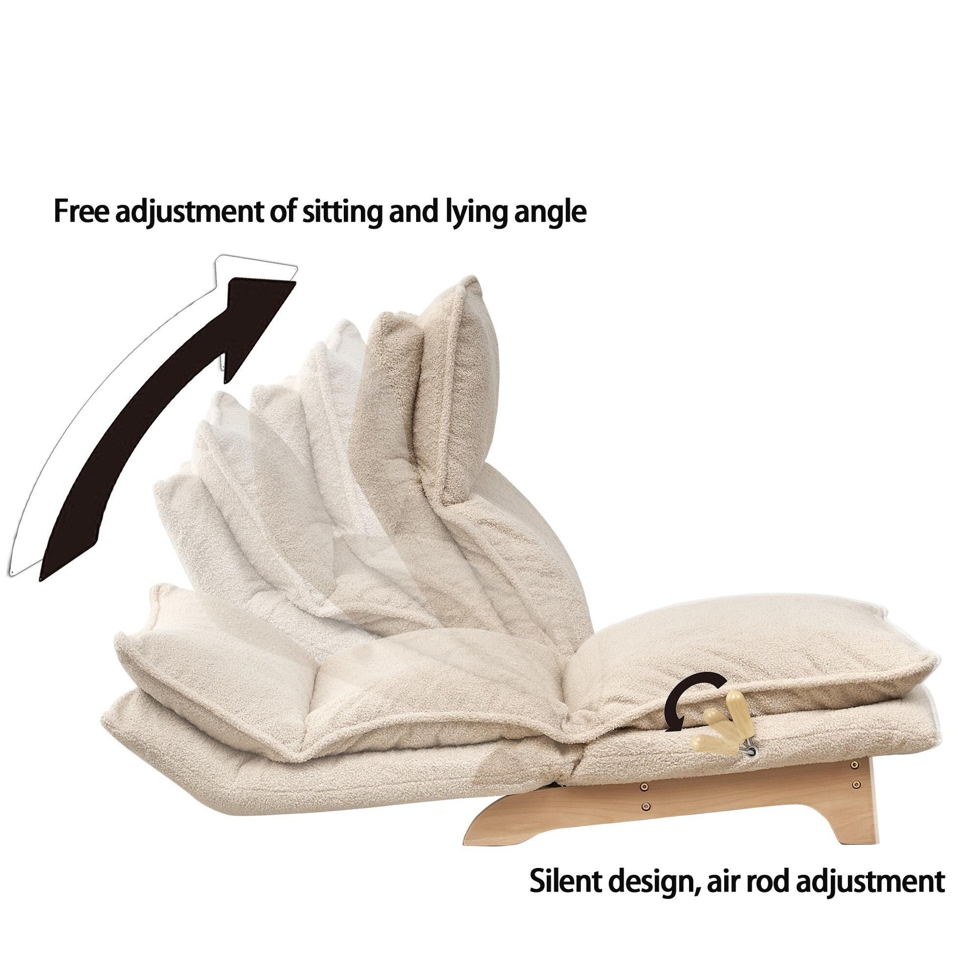 Multifunctional Floor Chair: Ideal for various spaces such as the living room, bedroom, and balcony, this chair is perfect for reading, gaming, watching TV, meditating, or working by the bed. The semi-automatic pneumatic rod allows for arbitrary angle adjustment, aligning with ergonomic design principles. The head and waist sections can be adjusted to meet any desired angle for sitting or lying down.