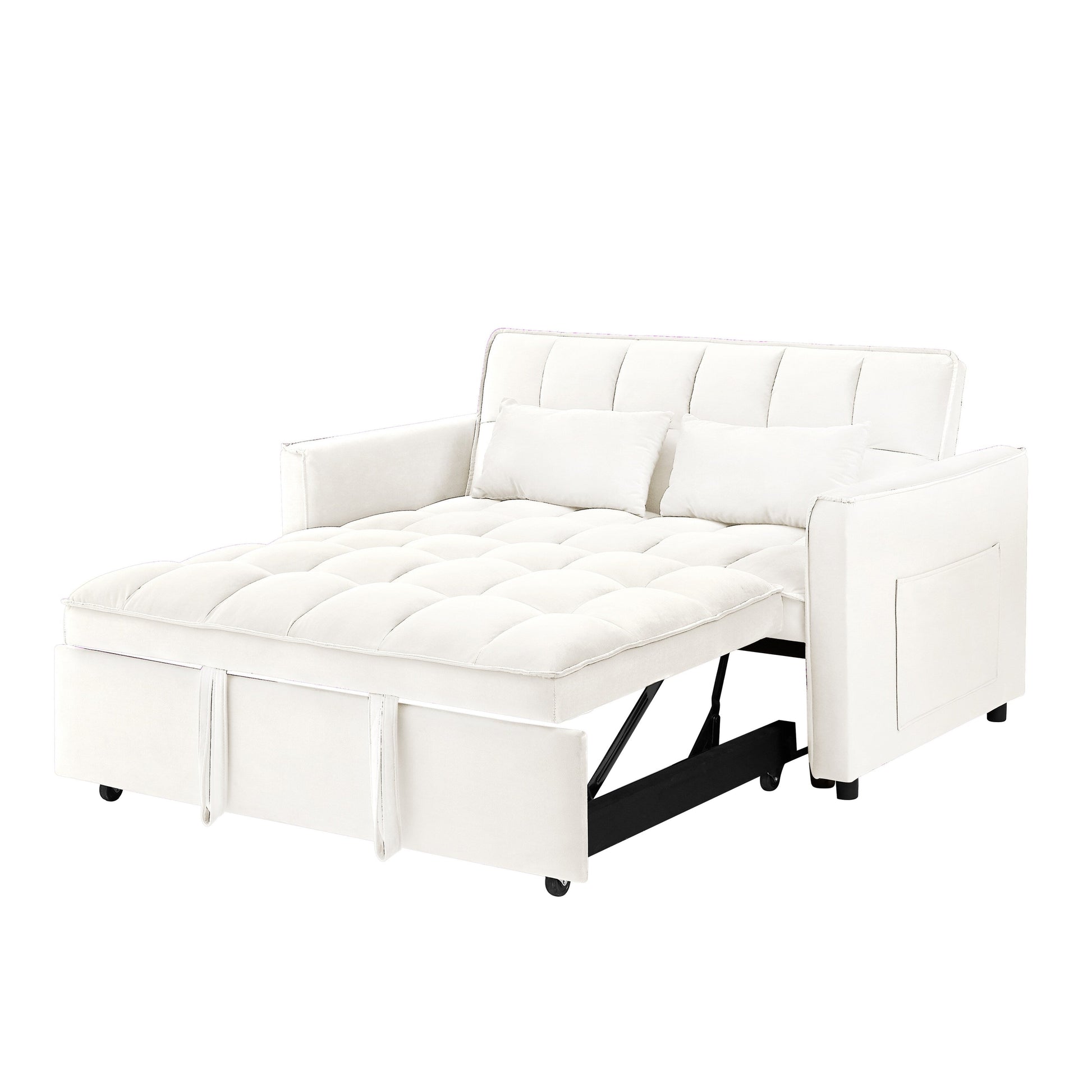 Beige+White Modern 55.1 3 in 1 Convertible Loveseat Sofa Bed with Adjustable Back and Storage Bag for Living Room