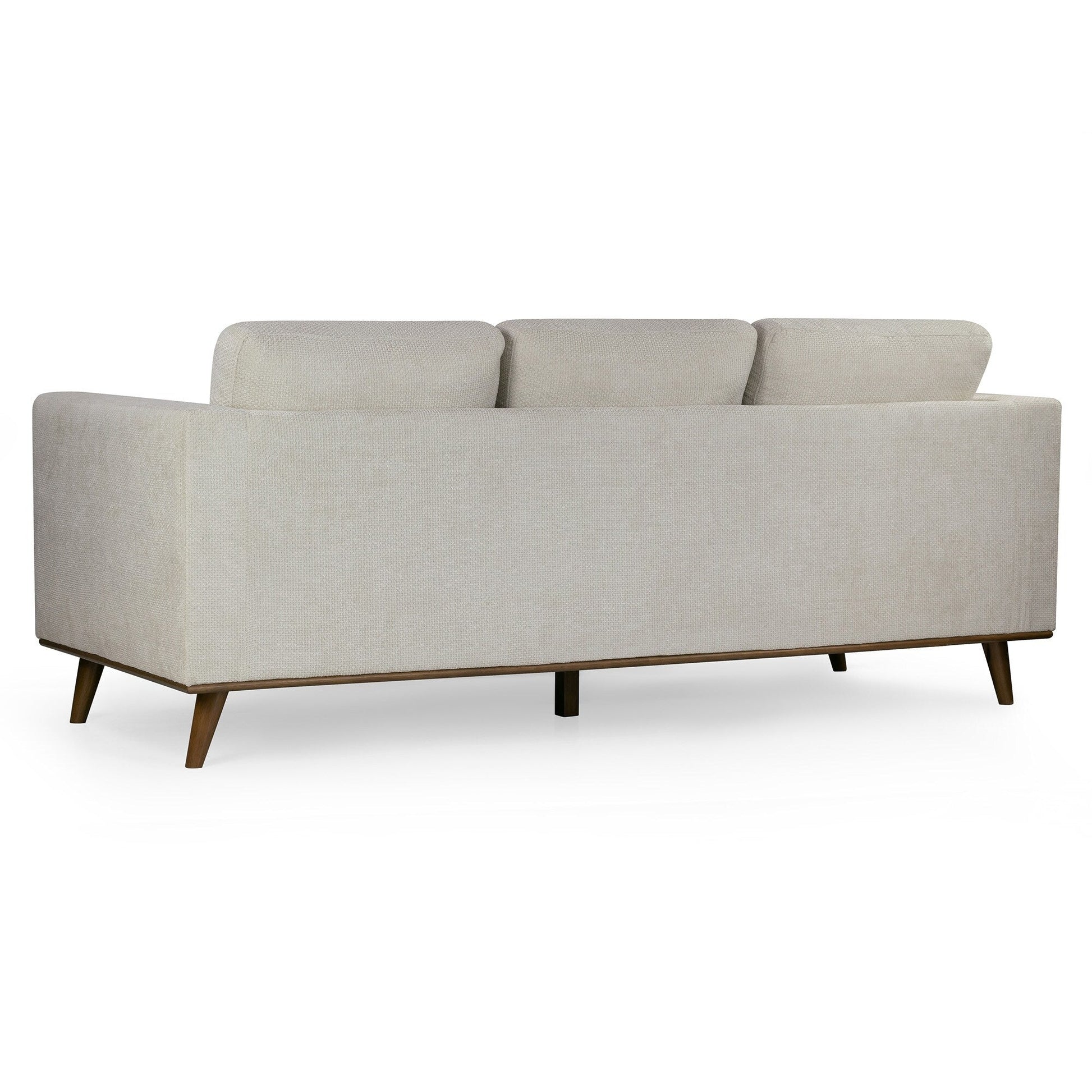 Bishop White Corduroy Twill Fabric Sofa with Walnut...