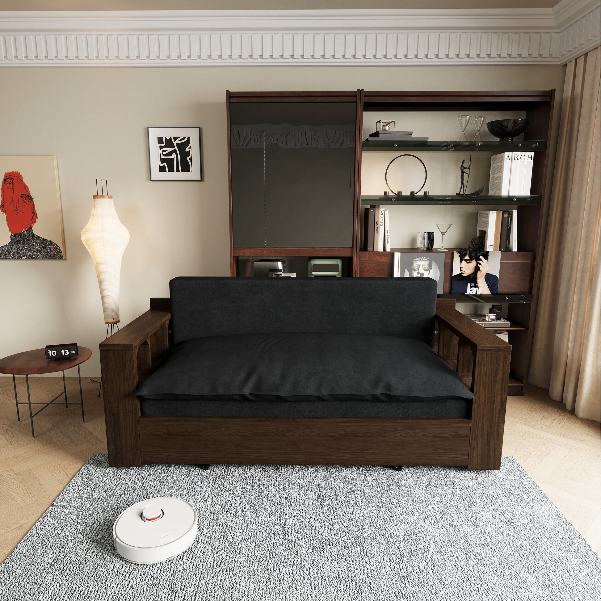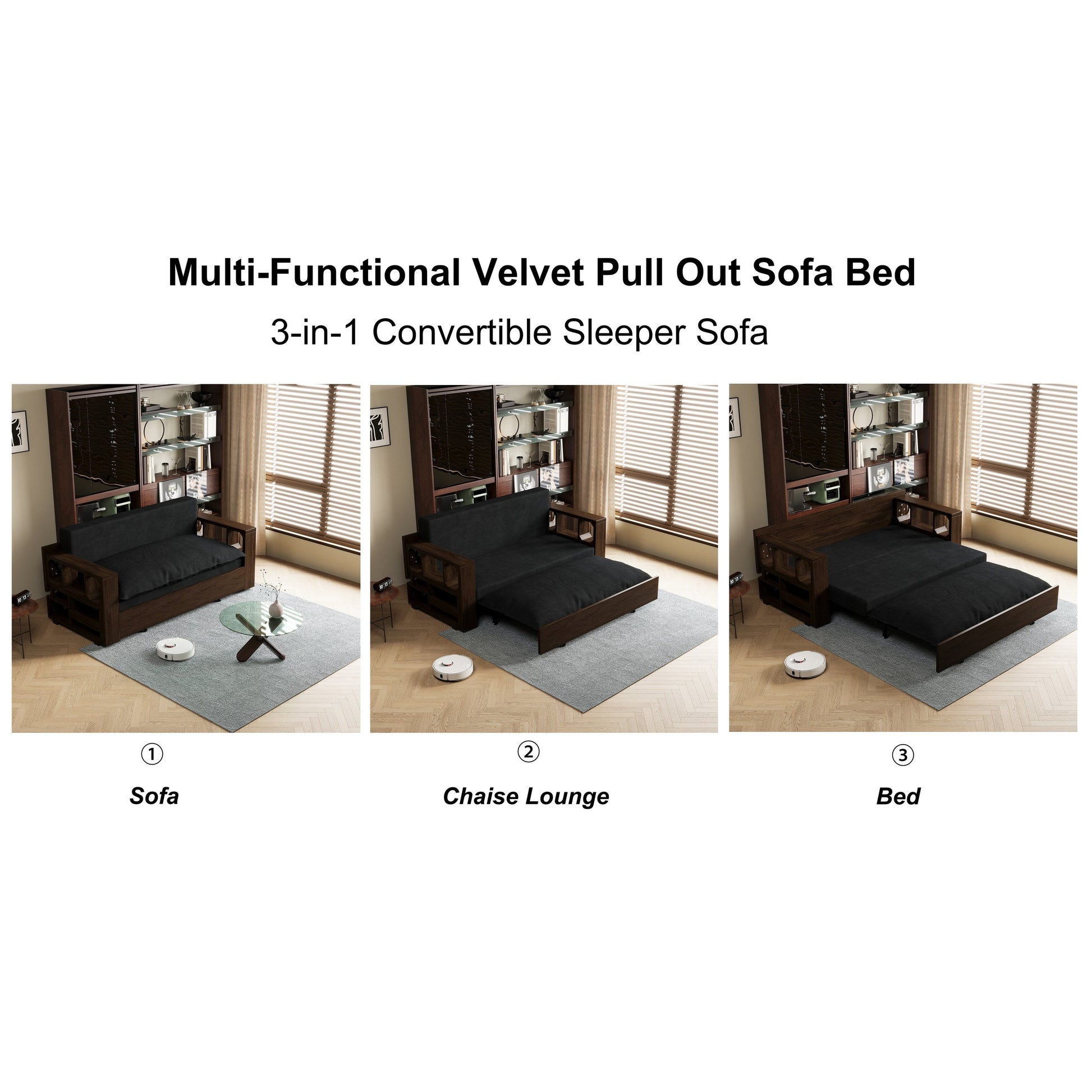 Black 52.4 3-in-1 Loveseat Hydraulic System Convertible Pull Out Sofa Bed with Storage and 2 Soft Pillows for Living Room
