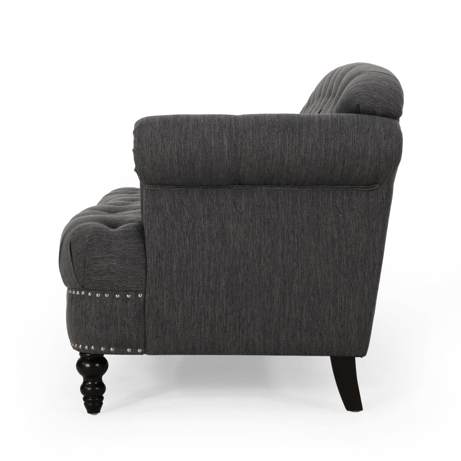 Black 74'' Fabric 3-Seater Sofa with Rivet Accents...