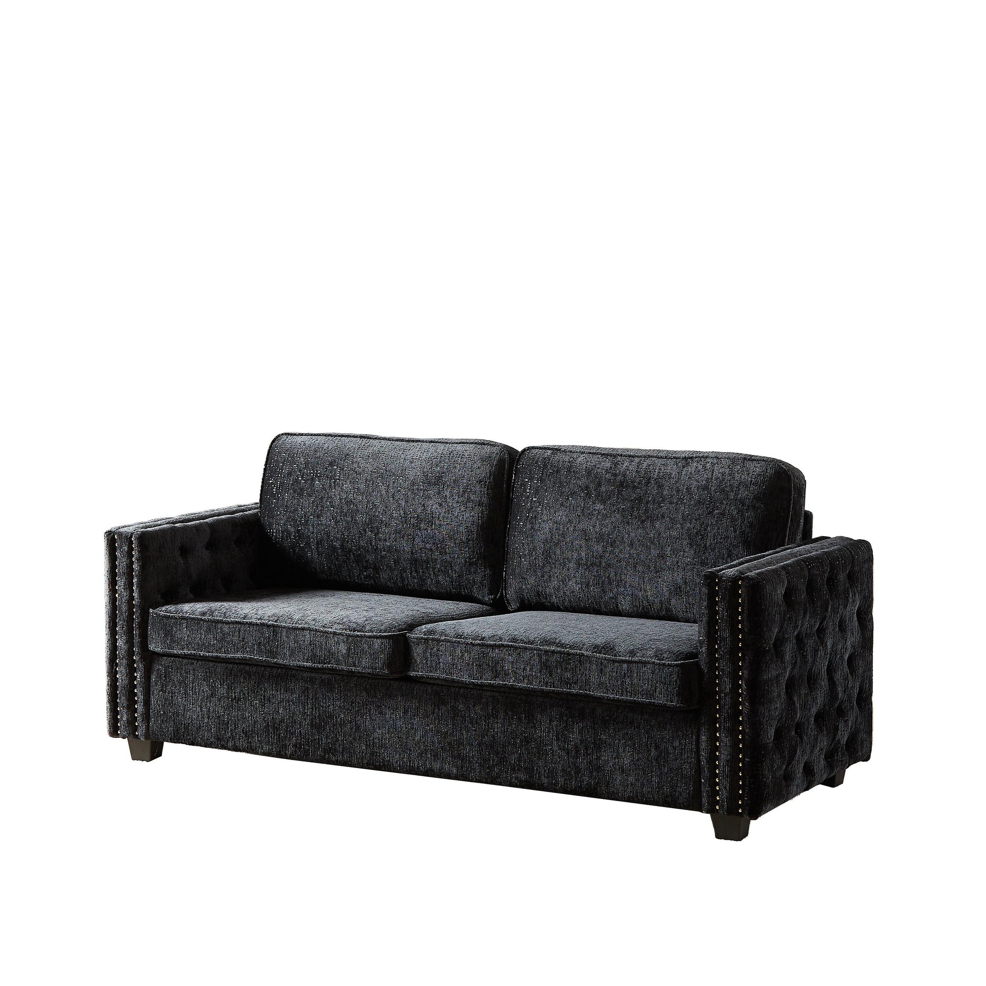 Covered in Chenille Fabric, this couch with a pull-out bed adds a touch of glamour to your living room decor. Its elegant and inviting texture provides a cozy and stylish seating option.