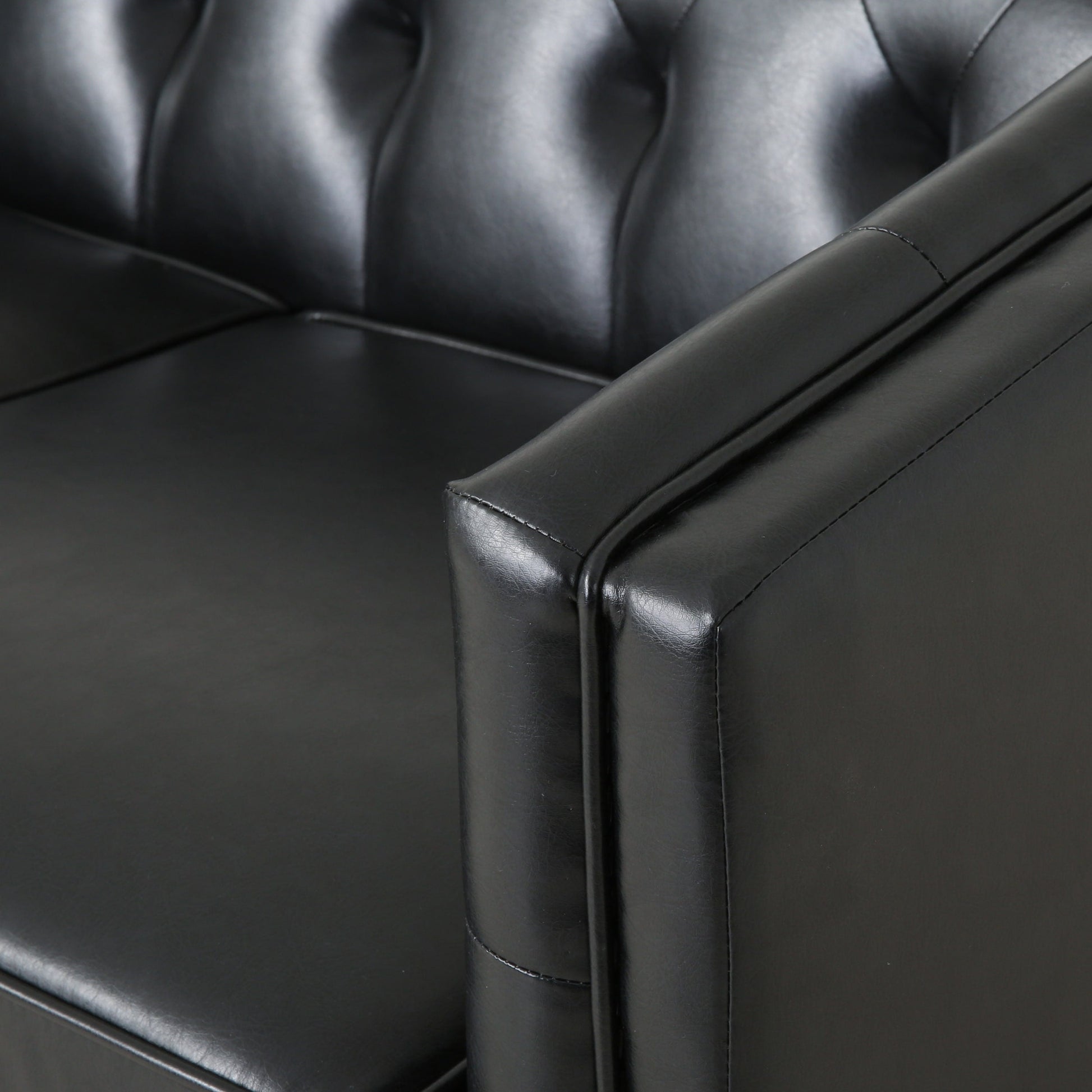 Black 81'' PU Leather 3-Seater Sofa with Tufted...
