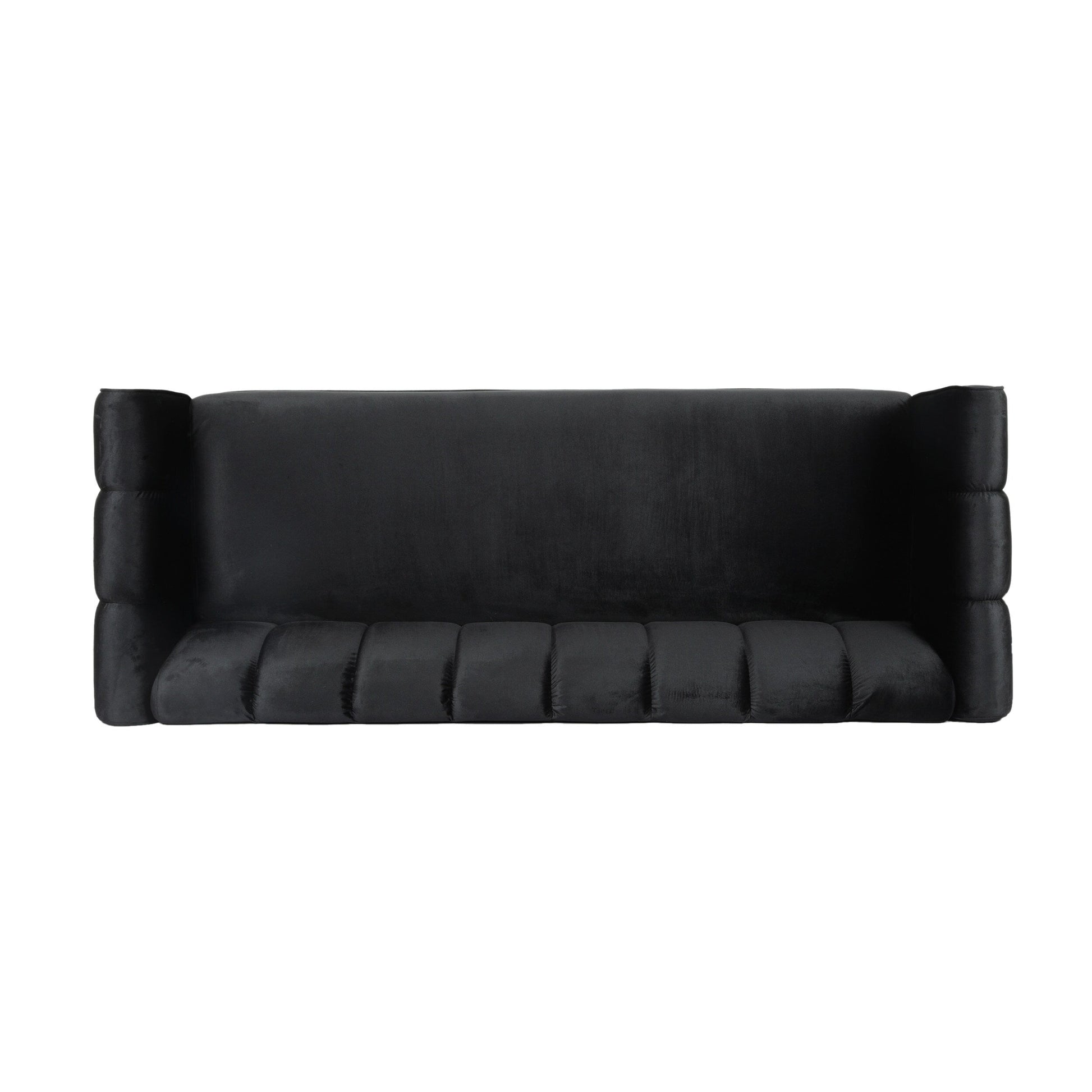 Black 83.25 Velvet Channel Tufted 3-seater Sofa with...