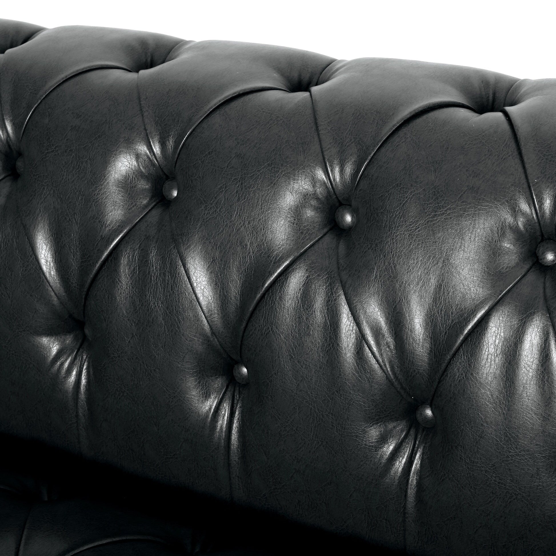 Black 83.5 PU Leather 3-Seater Sofa with Button-Tufted...