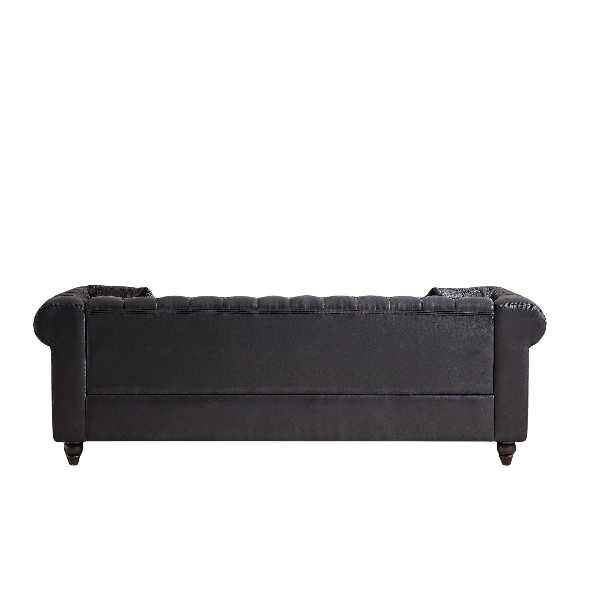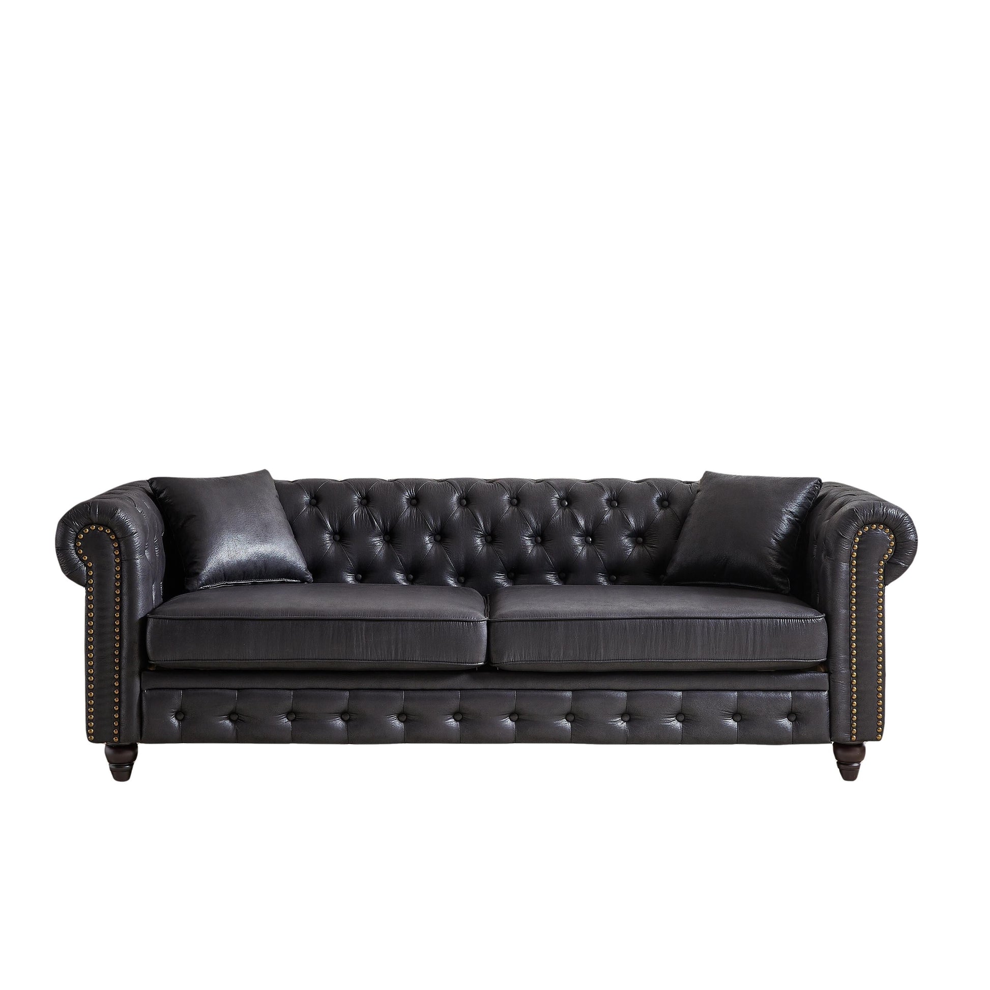 Black 85.5 Tech Fabric 3-seater Rolled Arms Chesterfield...