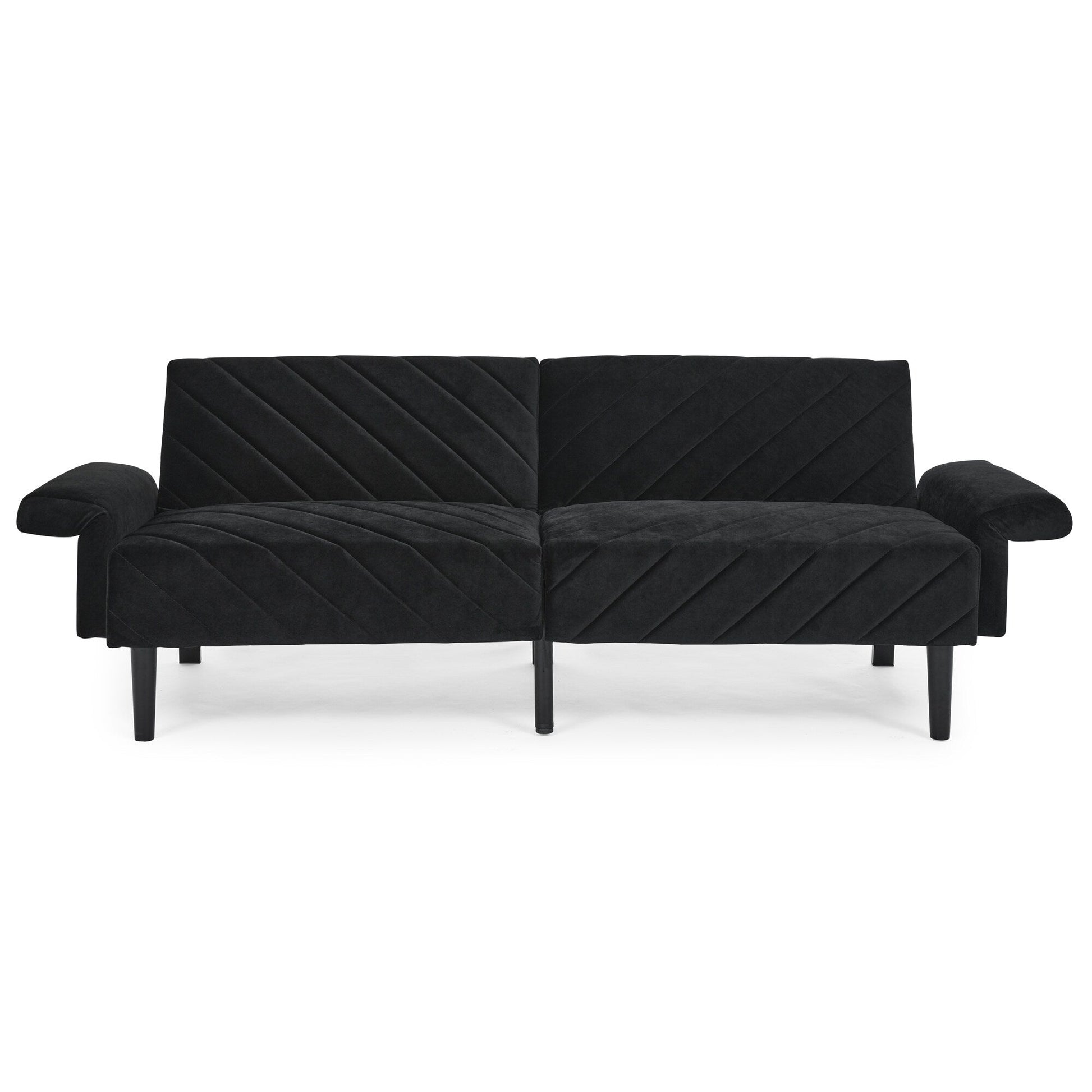 Black 87 Velvet Tufted Convertible Futon Sofa Bed with Adjustable Armrests for Living Room