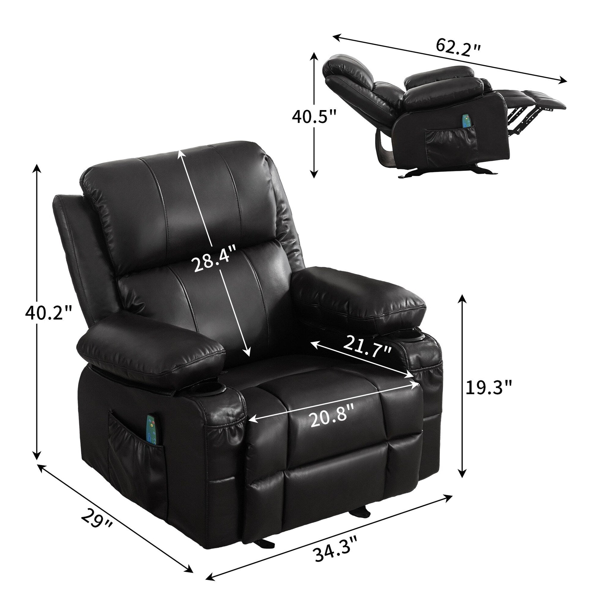Black Adjustable Rocking Recliner Chair, with USB Port,...