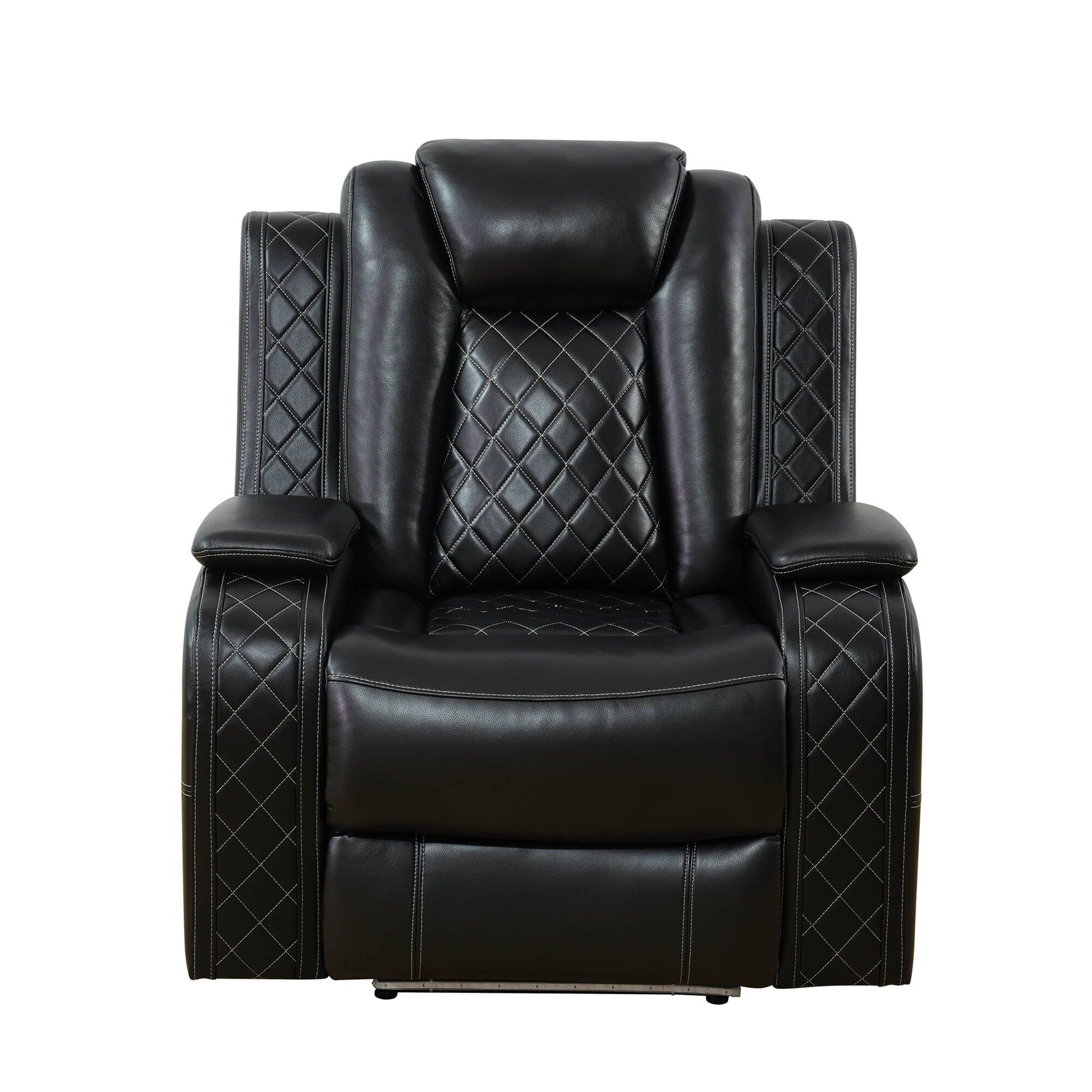 Black Breathing Leather Living Room Sectional Recliner Chair