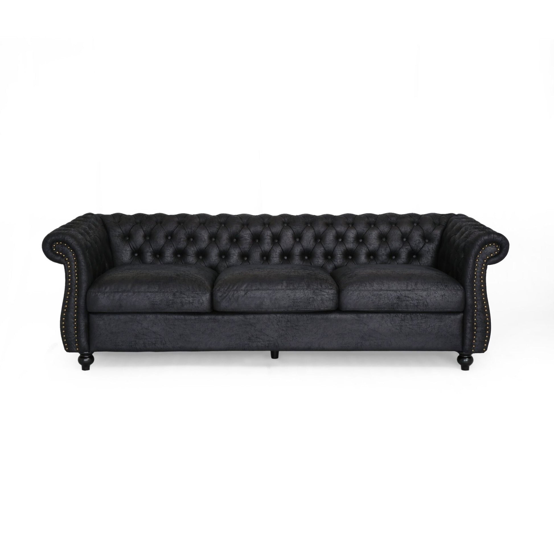 Black Chesterfield 84.75 Button Tufted Upholstered 3-seater Sofa...