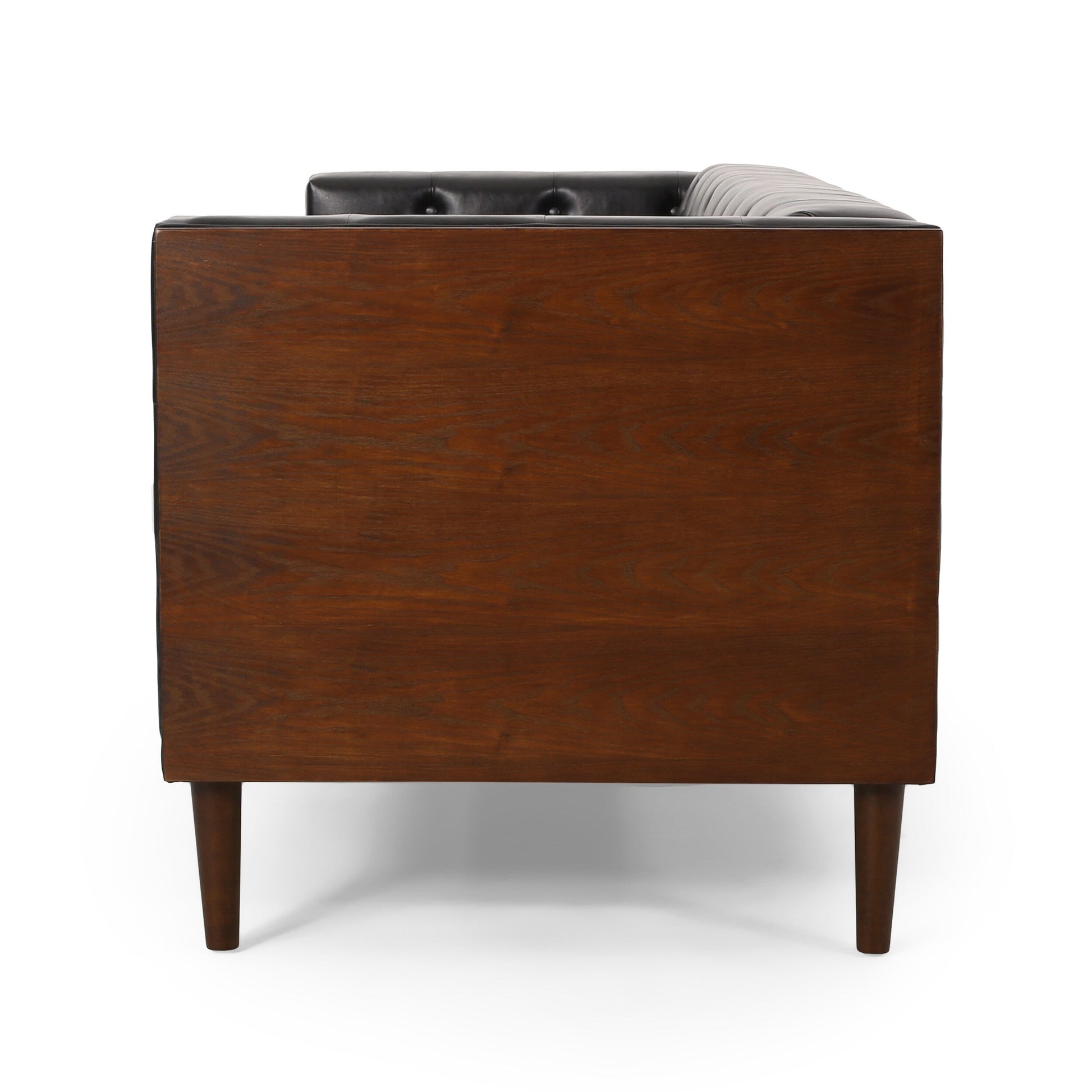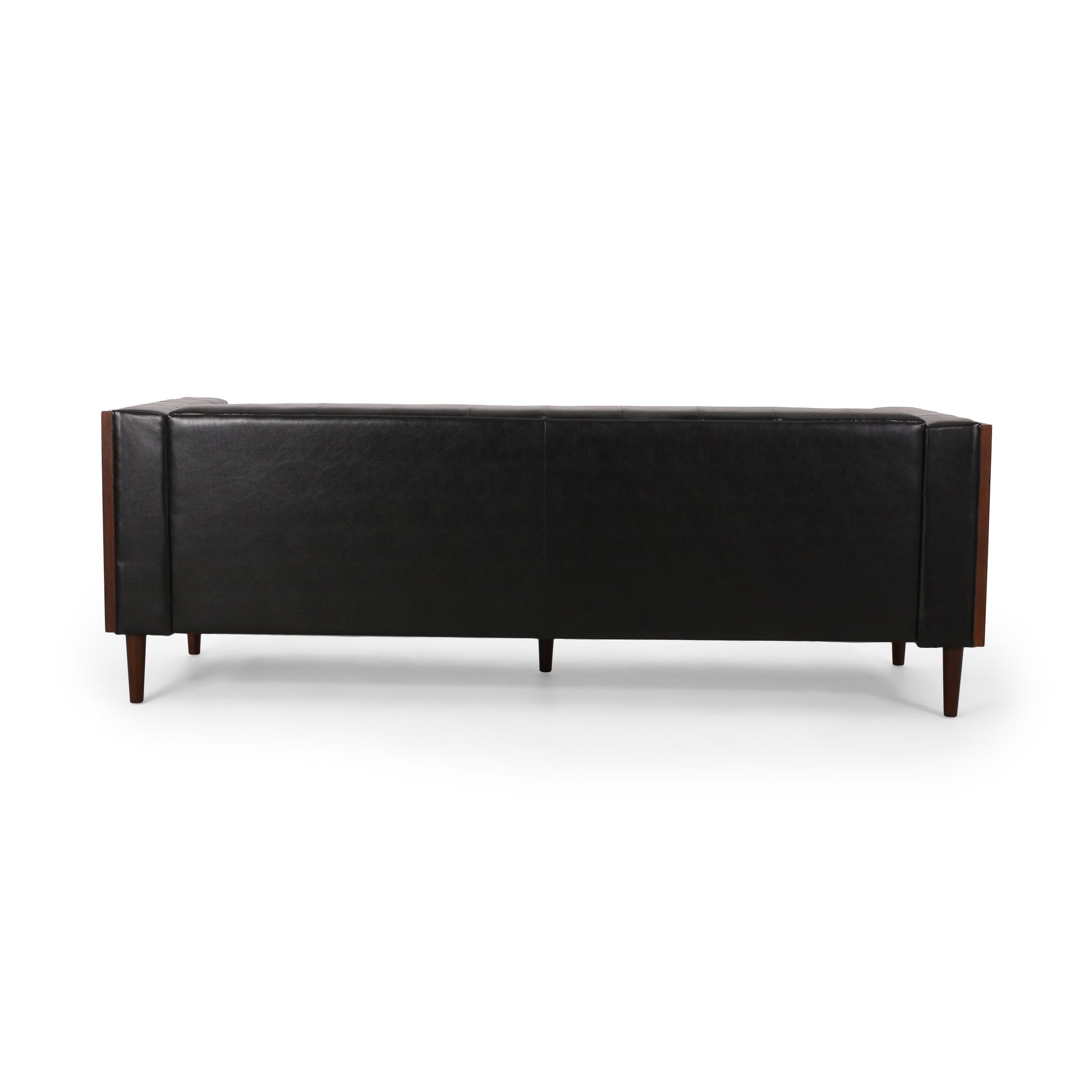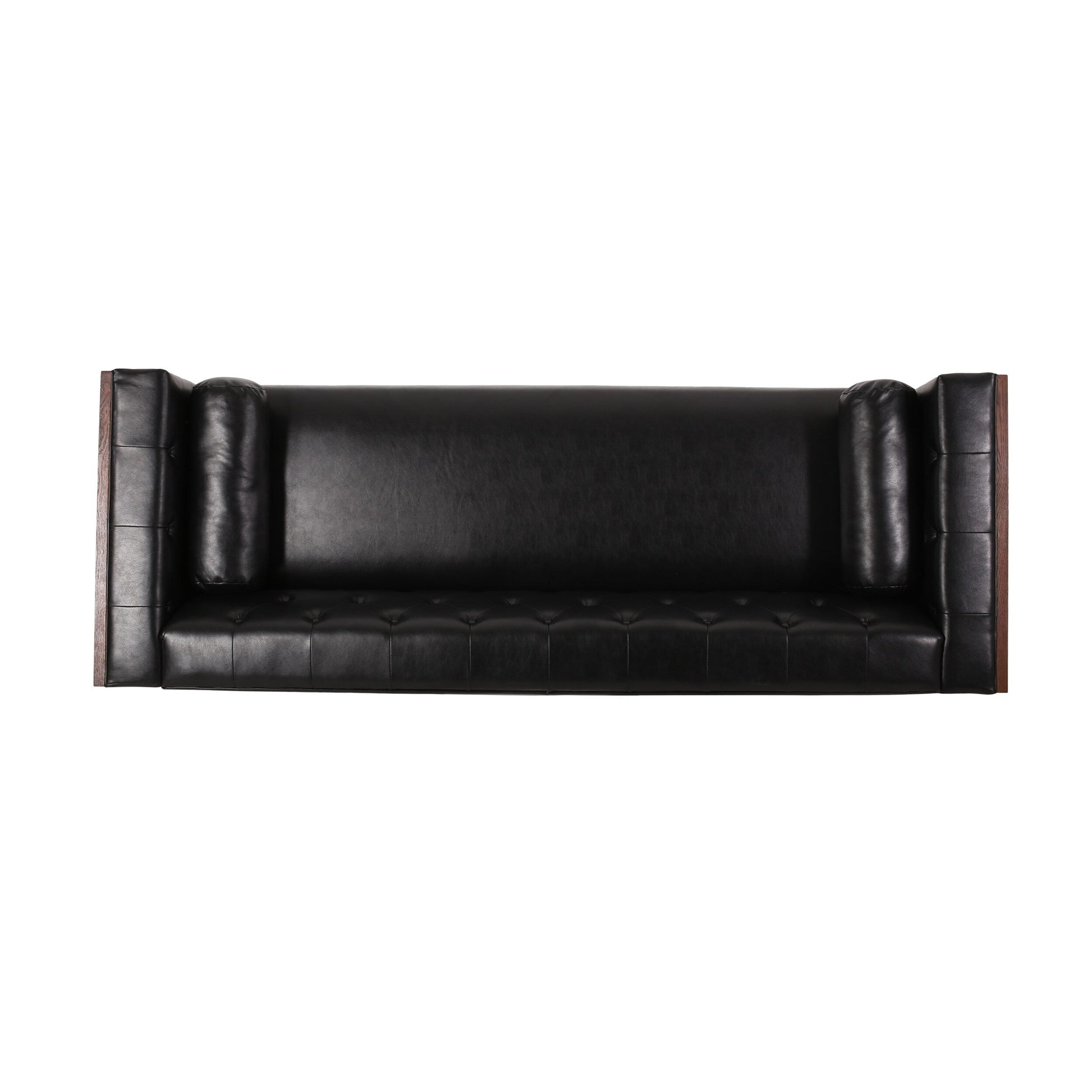 Black Faux Leather Button Tufted 3-seater Sofa with...
