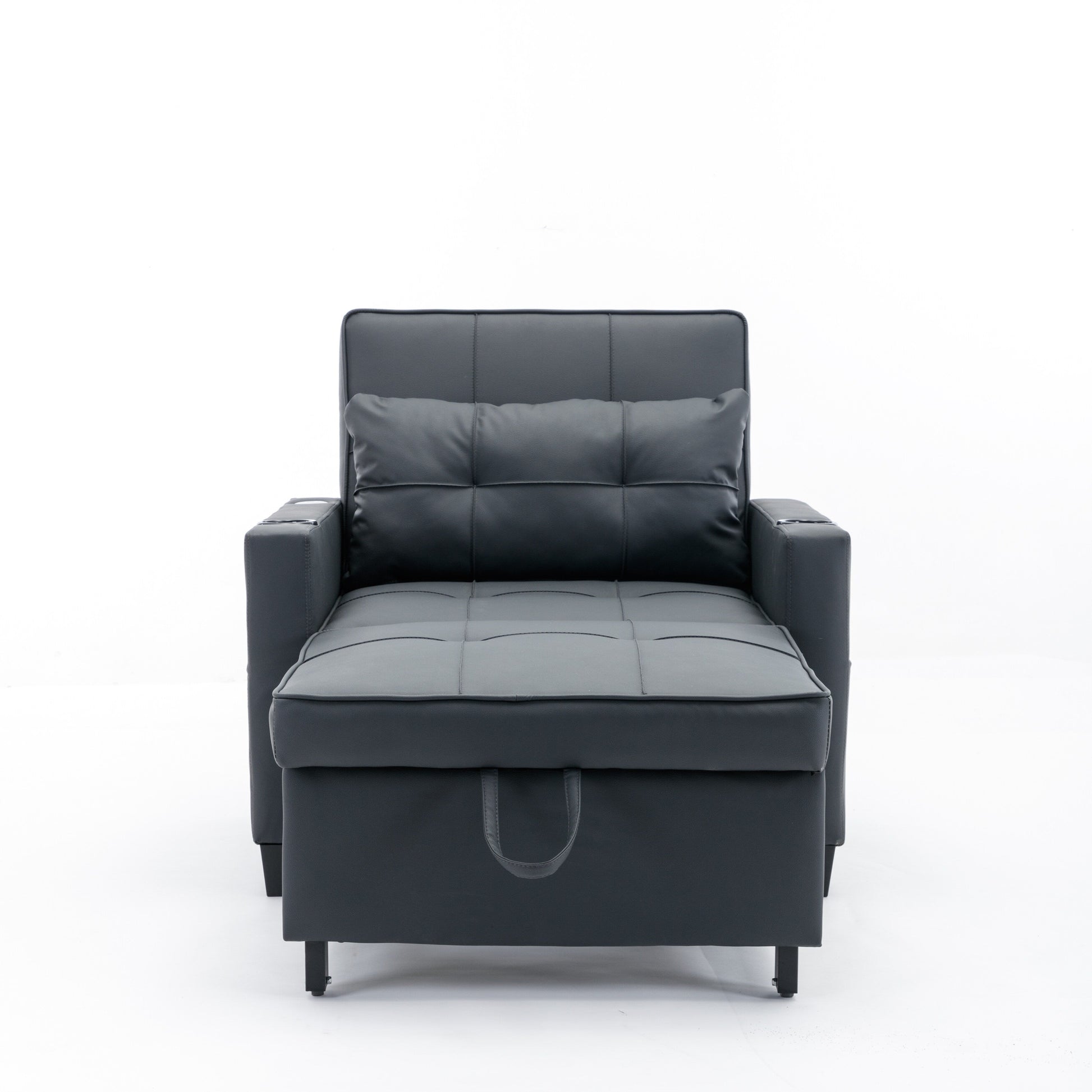 Black Faux Leather Convertible Sofa Bed with USB Ports