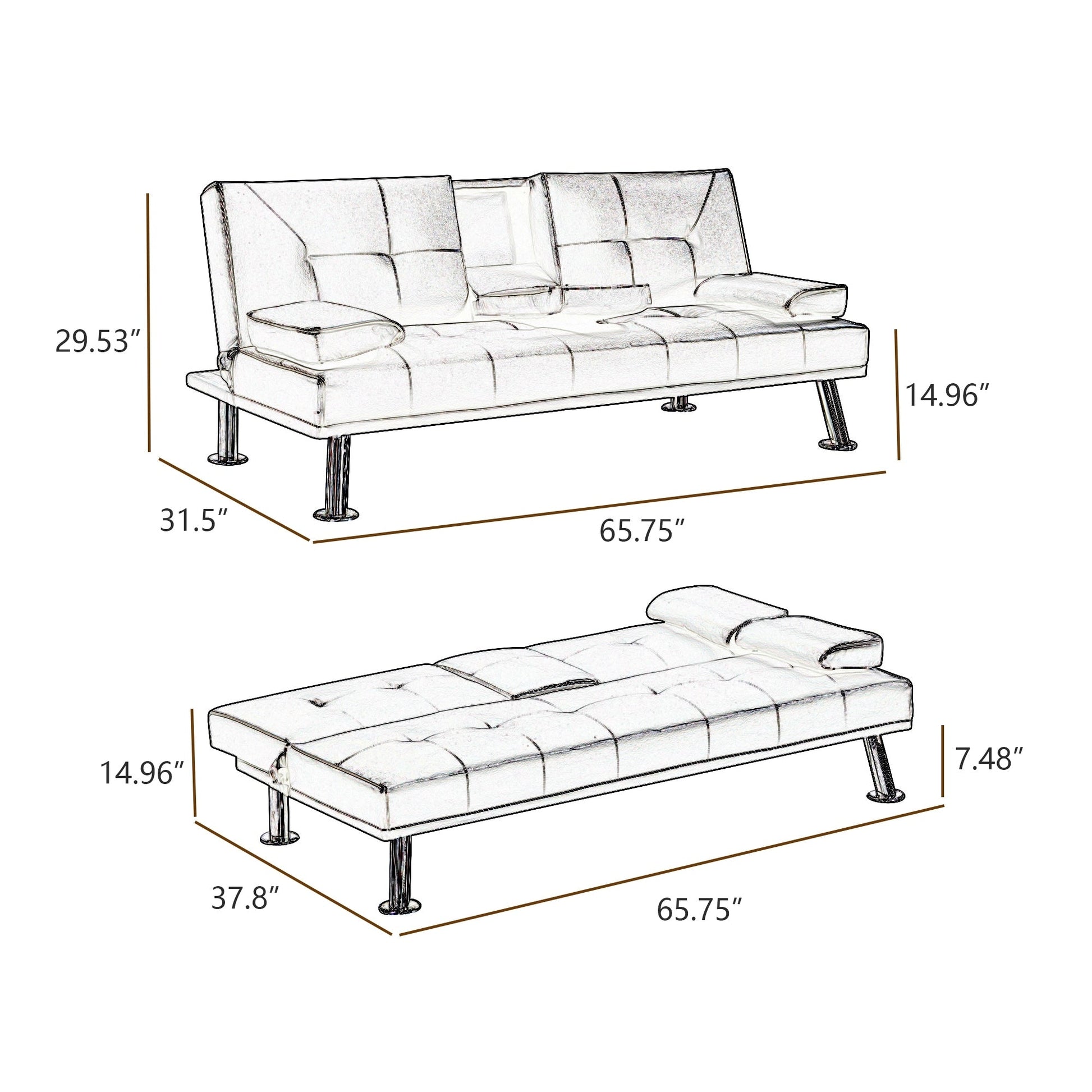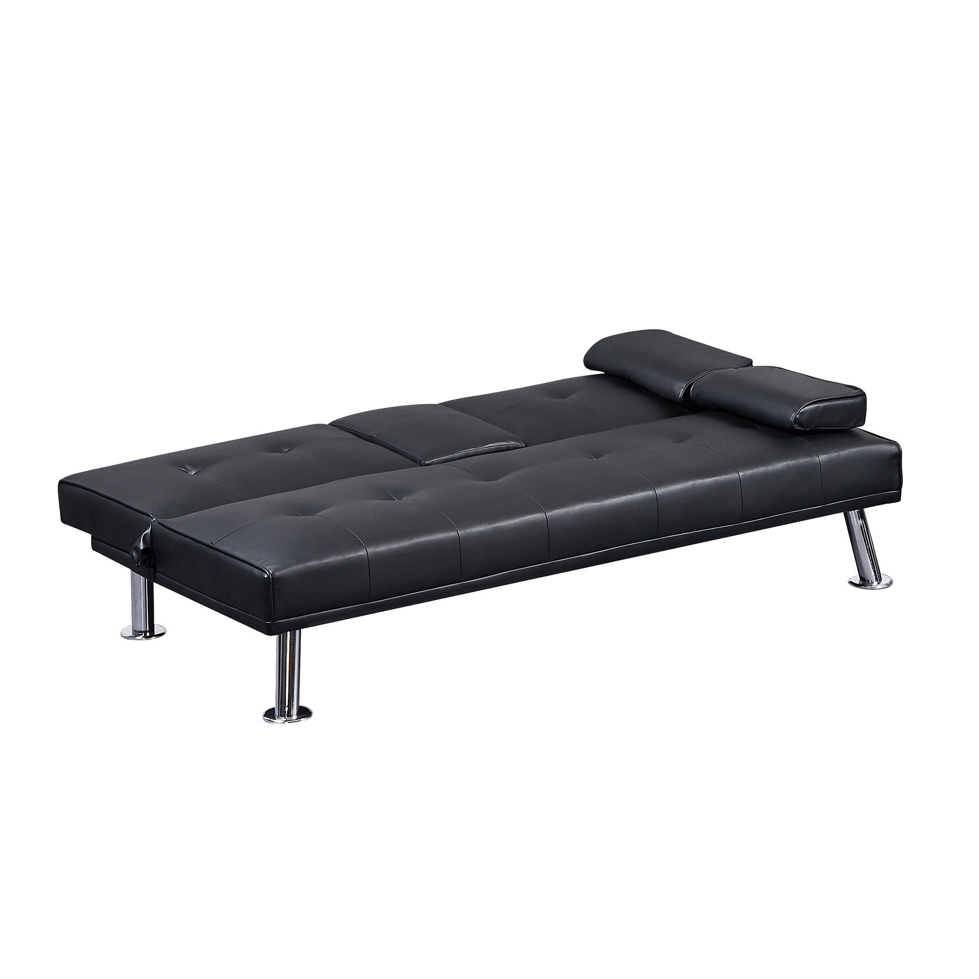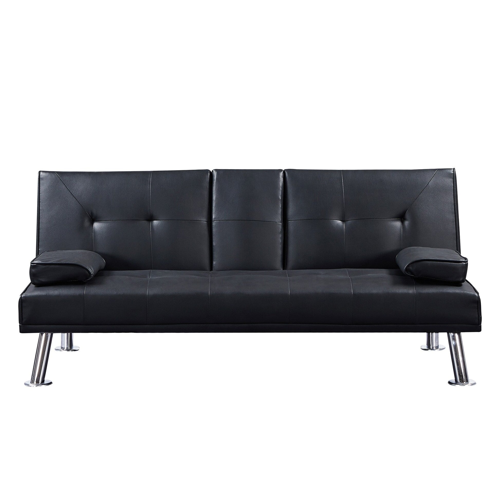 Black Faux Leather Loveseat Sofa Bed With Cup...