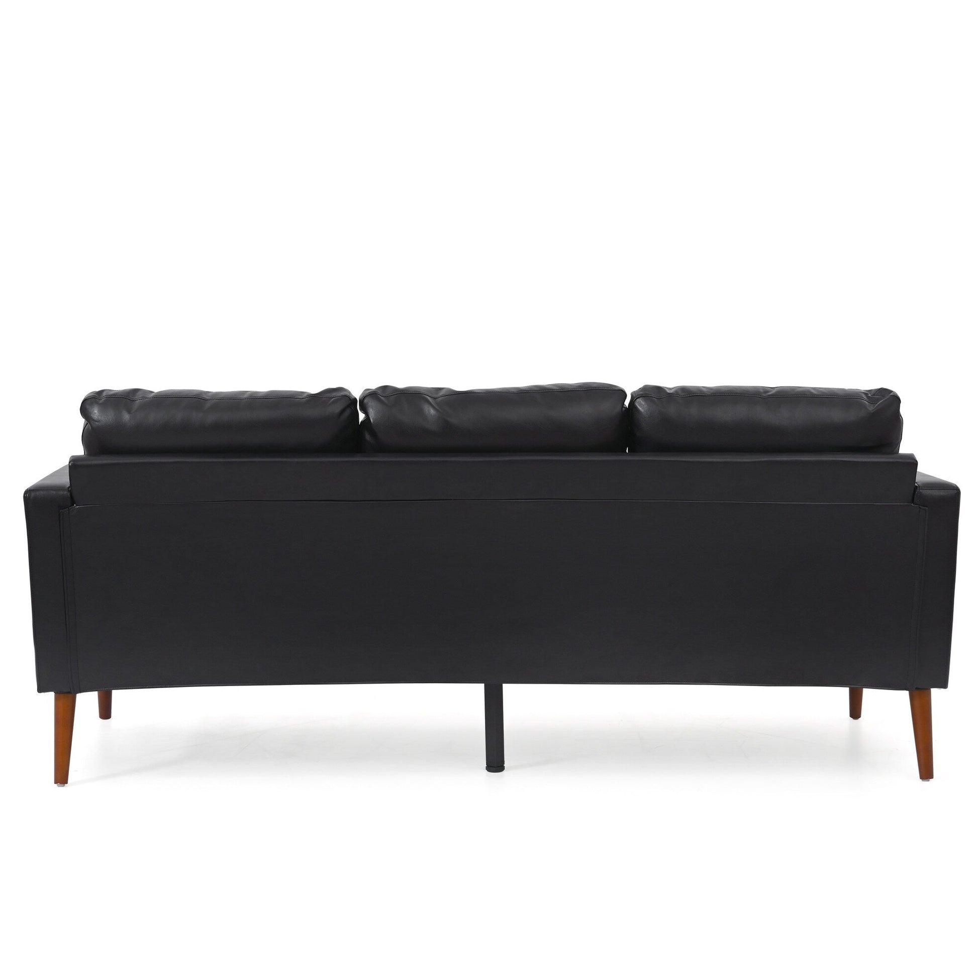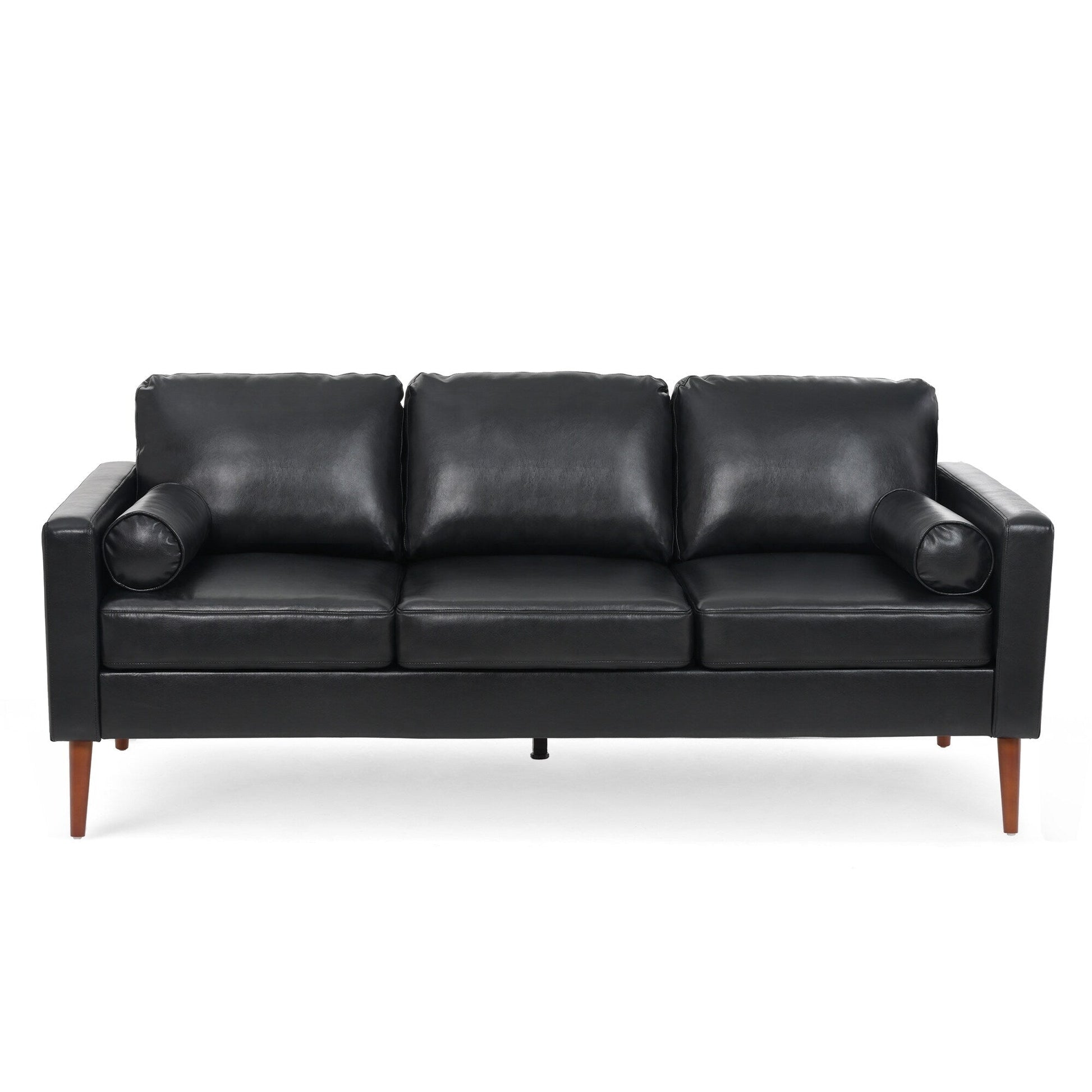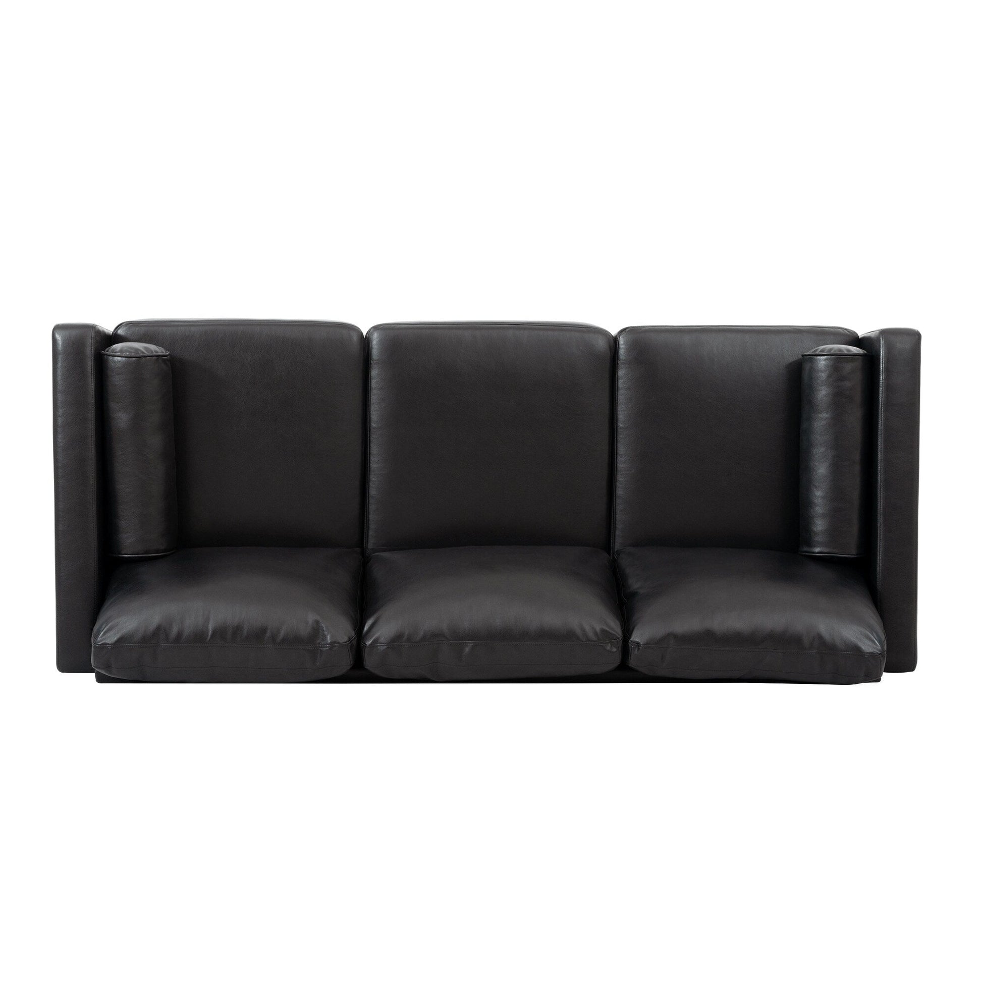 • This comfortable sofa is crafted with a solid wood construction, featuring birch feet, spring wrap, PP cotton, and high-density foam. It is designed to support up to 660 pounds, making it a durable and reliable choice for any living space. The PU fabric is skin-friendly and soft to the touch, providing a luxurious seating experience. The backrest, seat cushion, and round pillow are removable for easy cleaning and maintenance. Additionally, it comes with 2 soft pillows filled with PP cotton, ensuring they do not easily deform and maintain their shape over time. This sofa is ideal for enhancing the comfort and style of your living room.