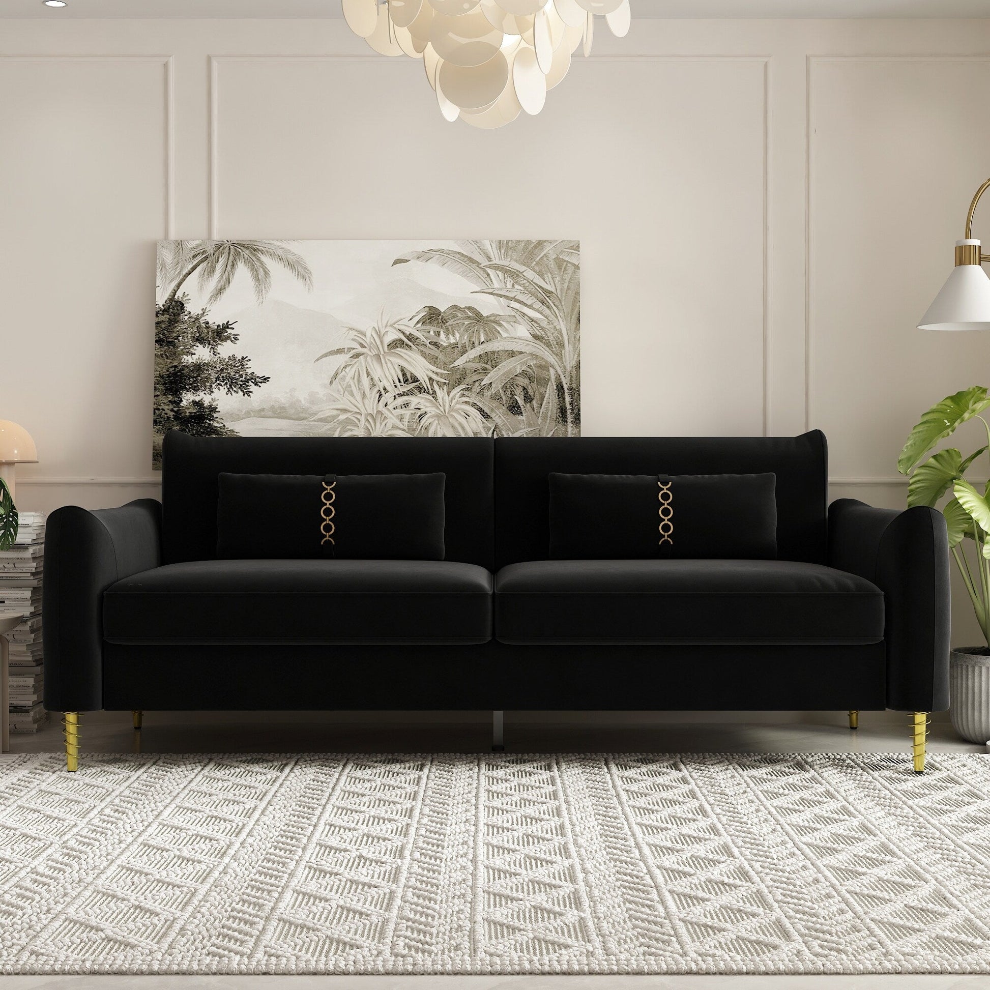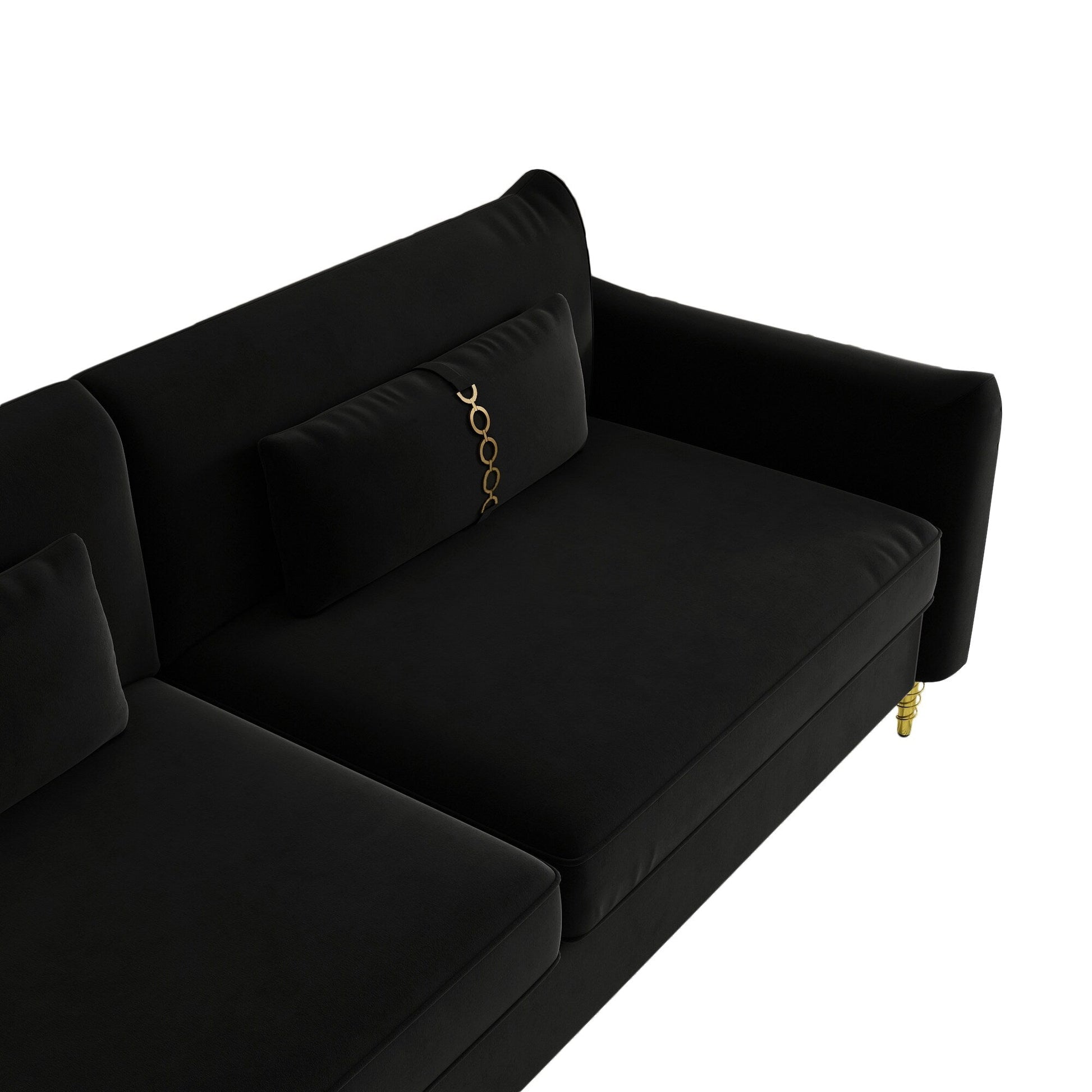 • This modern and luxurious sofa is designed to elevate your living space with its sleek and elegant aesthetics. The plush velvet upholstery offers a sumptuous and inviting texture, ensuring a comfortable and opulent seating experience.
