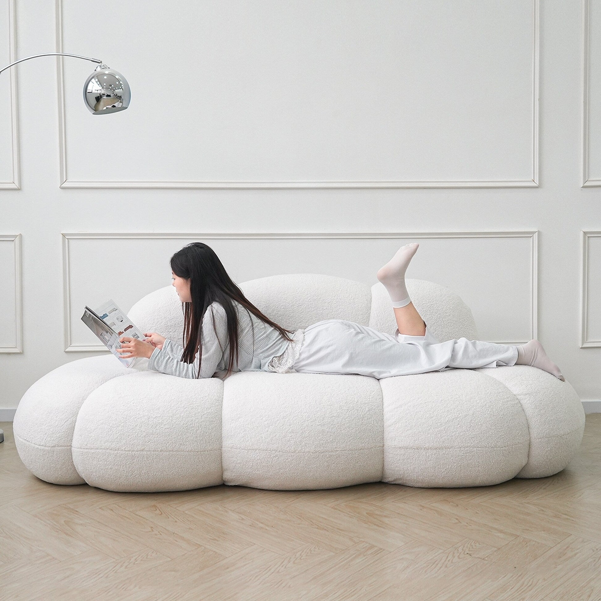 Boucle Upholstered Cloud Sofa Modern Frameless Floor Couch