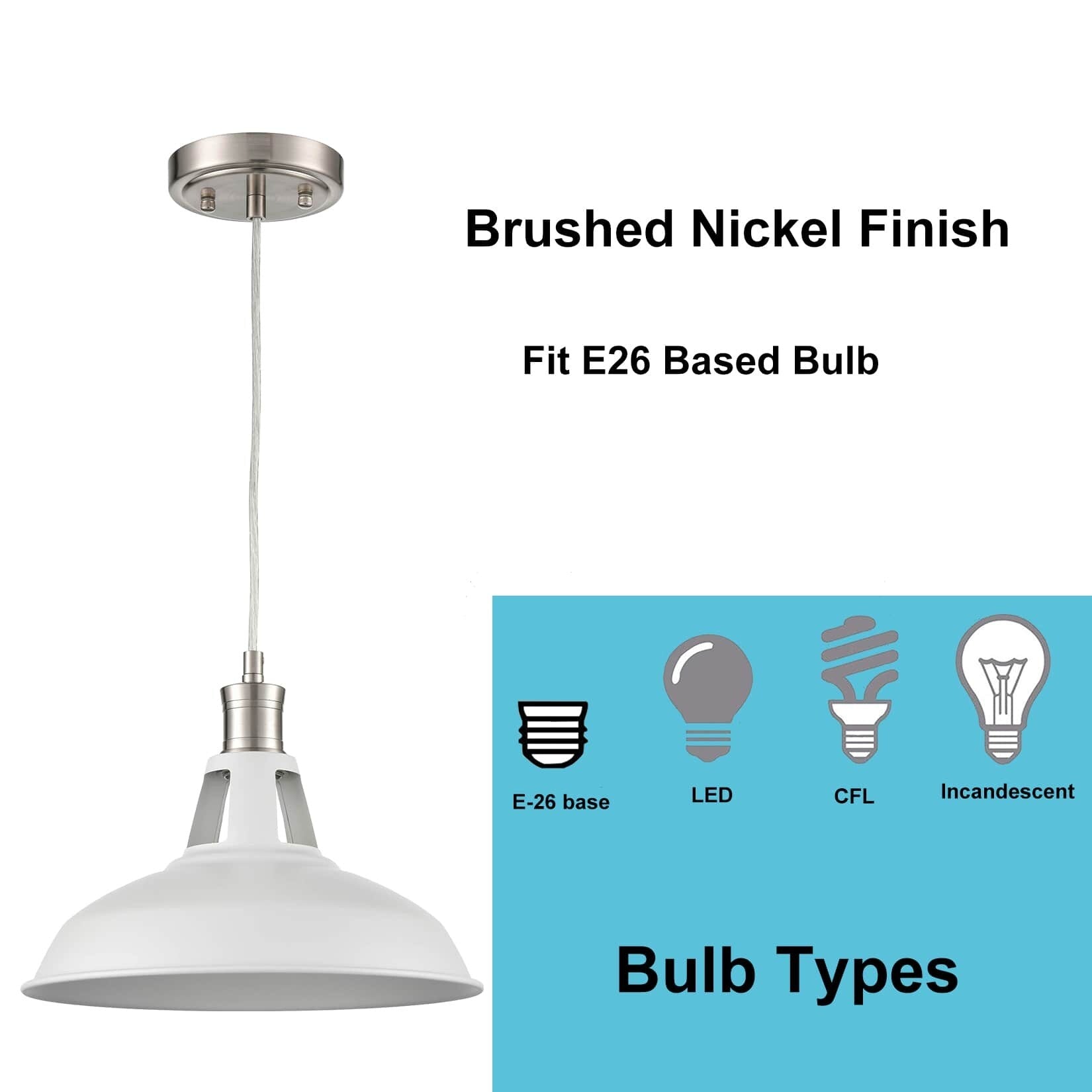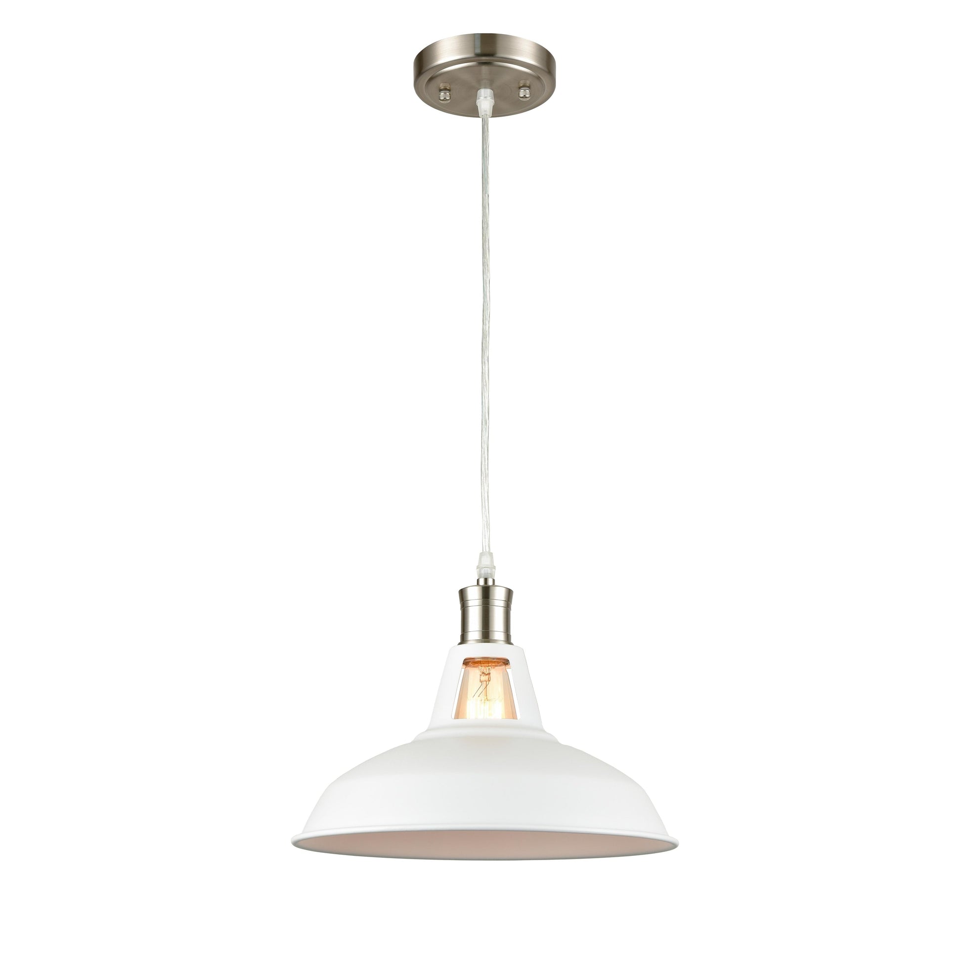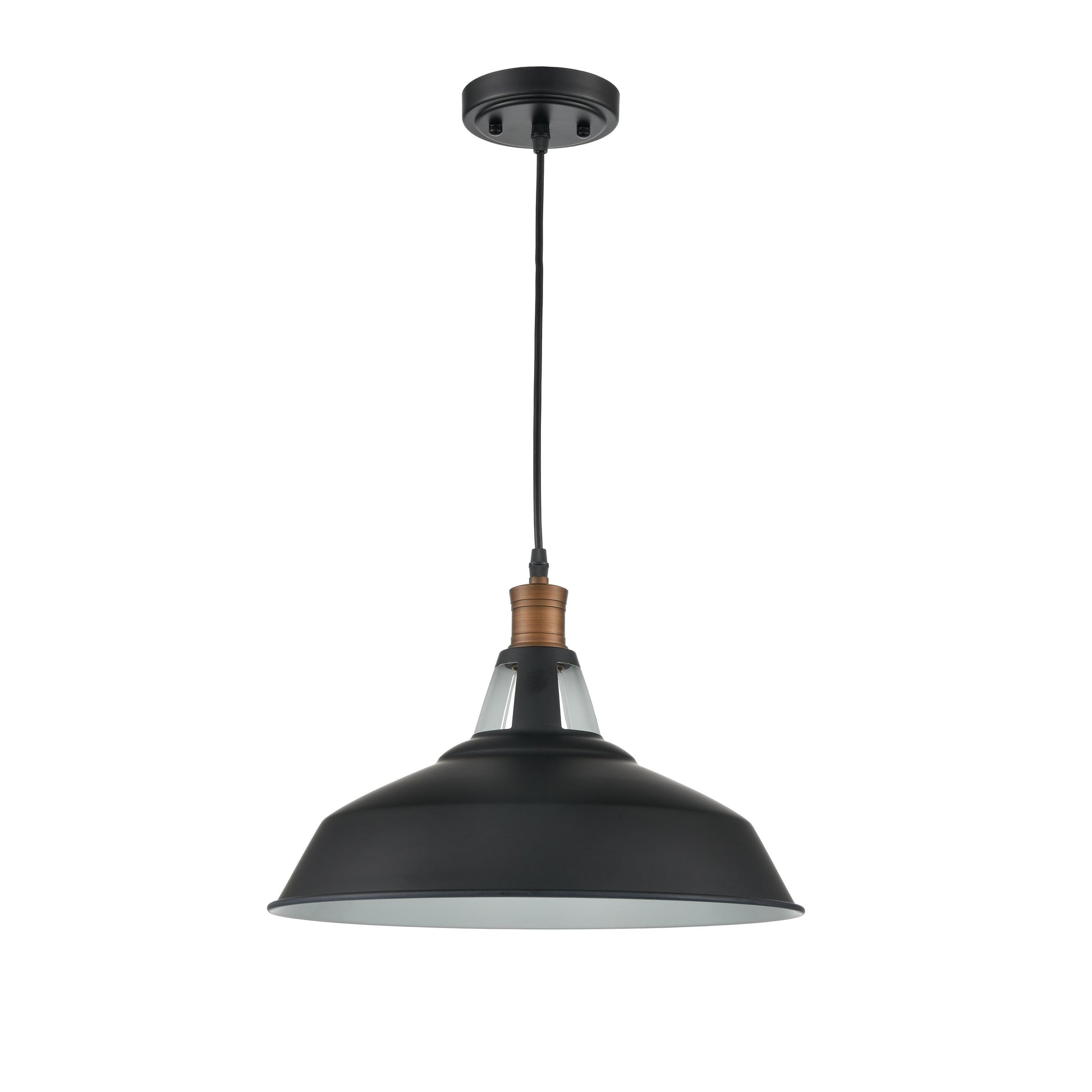 Add an industrial touch to your home decor with the Carbon Loft Kamari Industrial Mini Metal Pendant Light. The pendant light features a solid metal construction, with a rustproof matte black finish on the outer surface of the barn shade and white finish on the inner surface. The upper part of the lampholder has a unique and hollow design, allowing you to directly see the bulb inside.