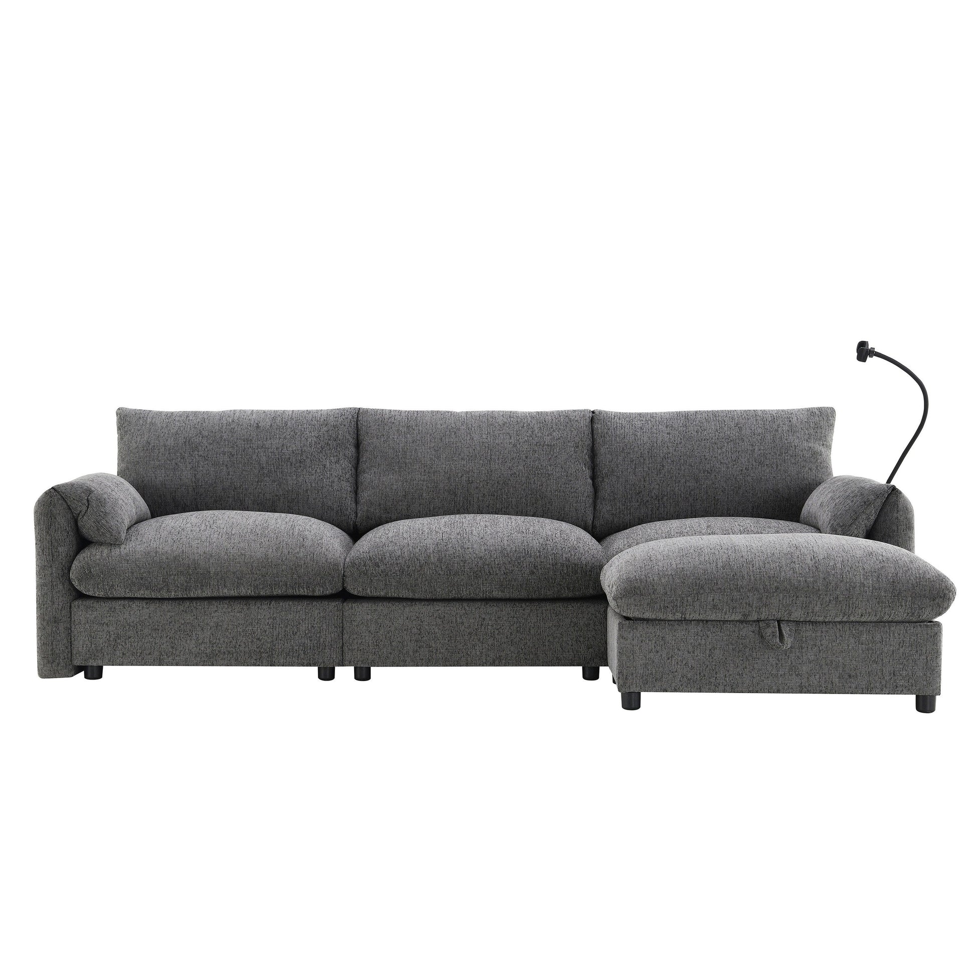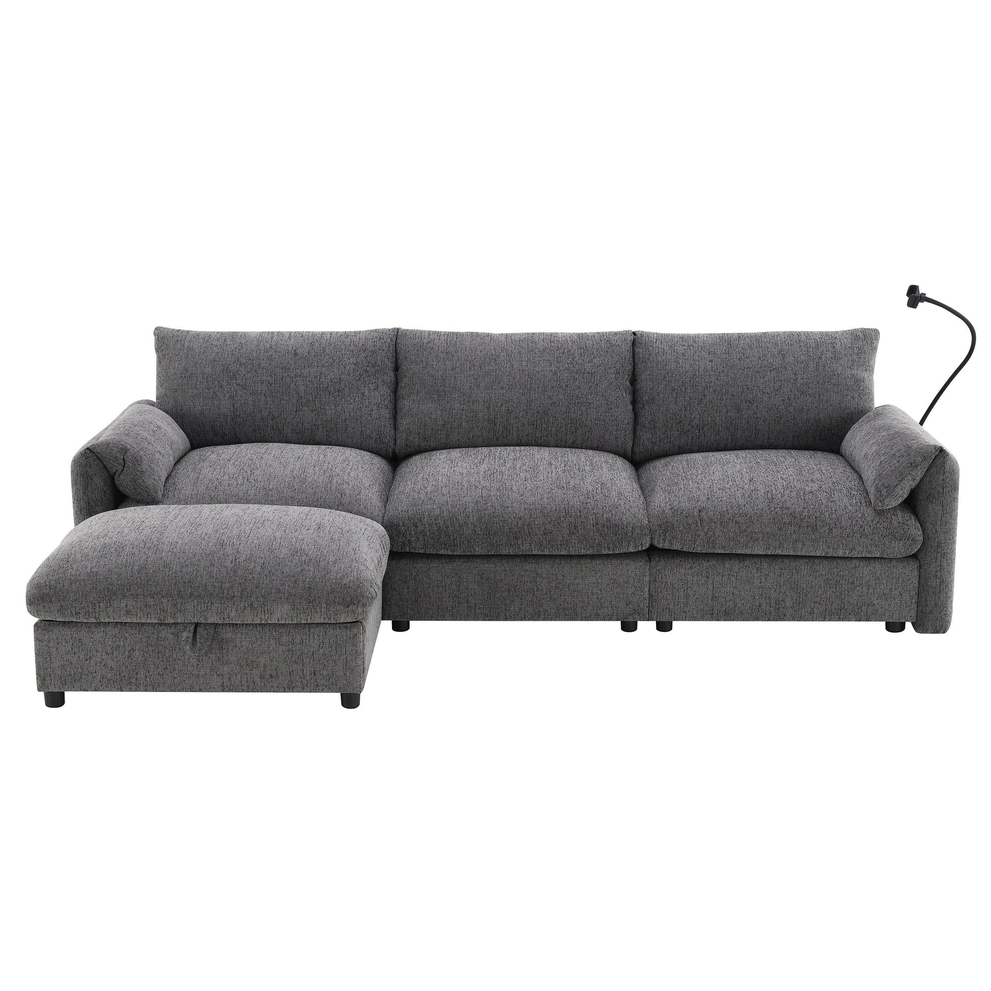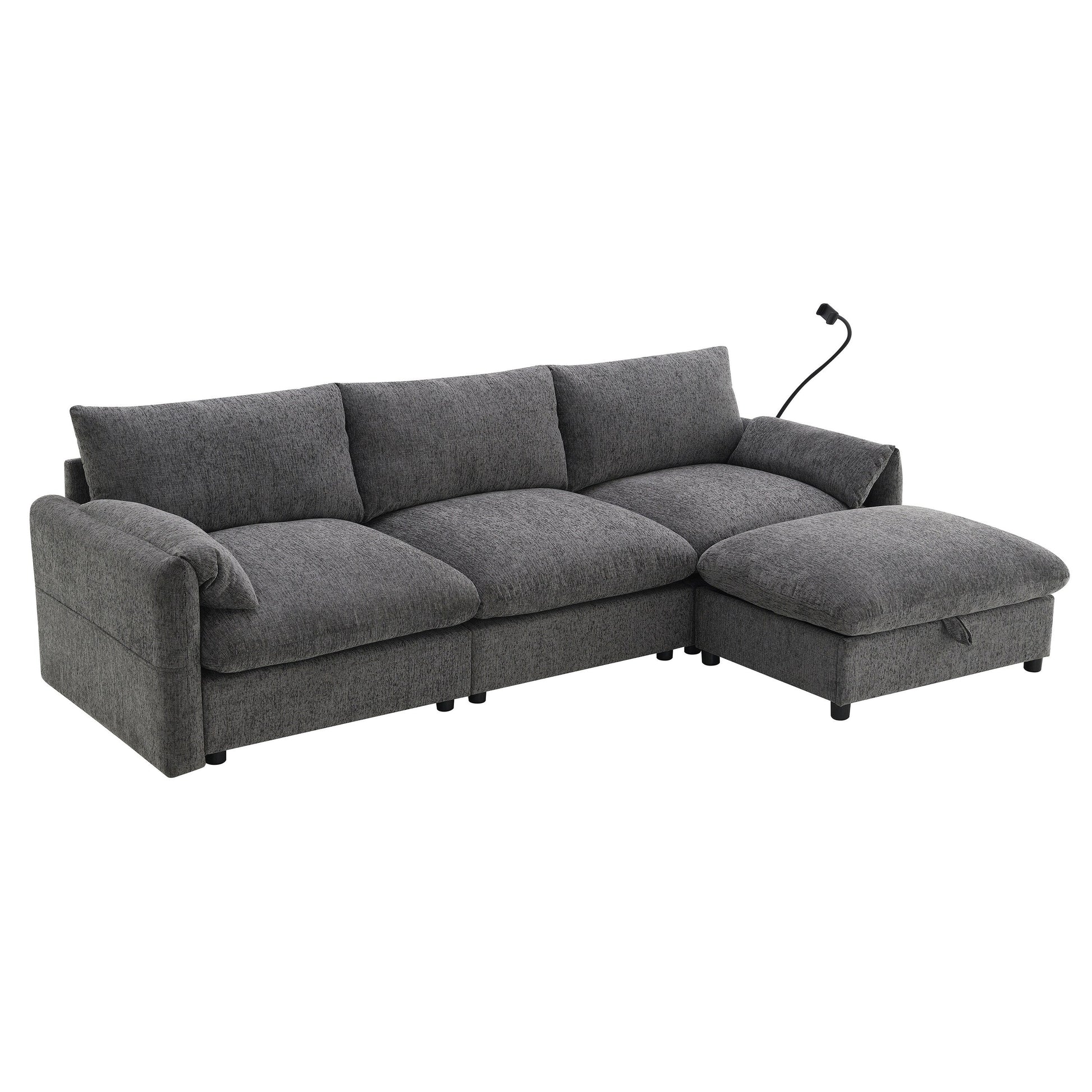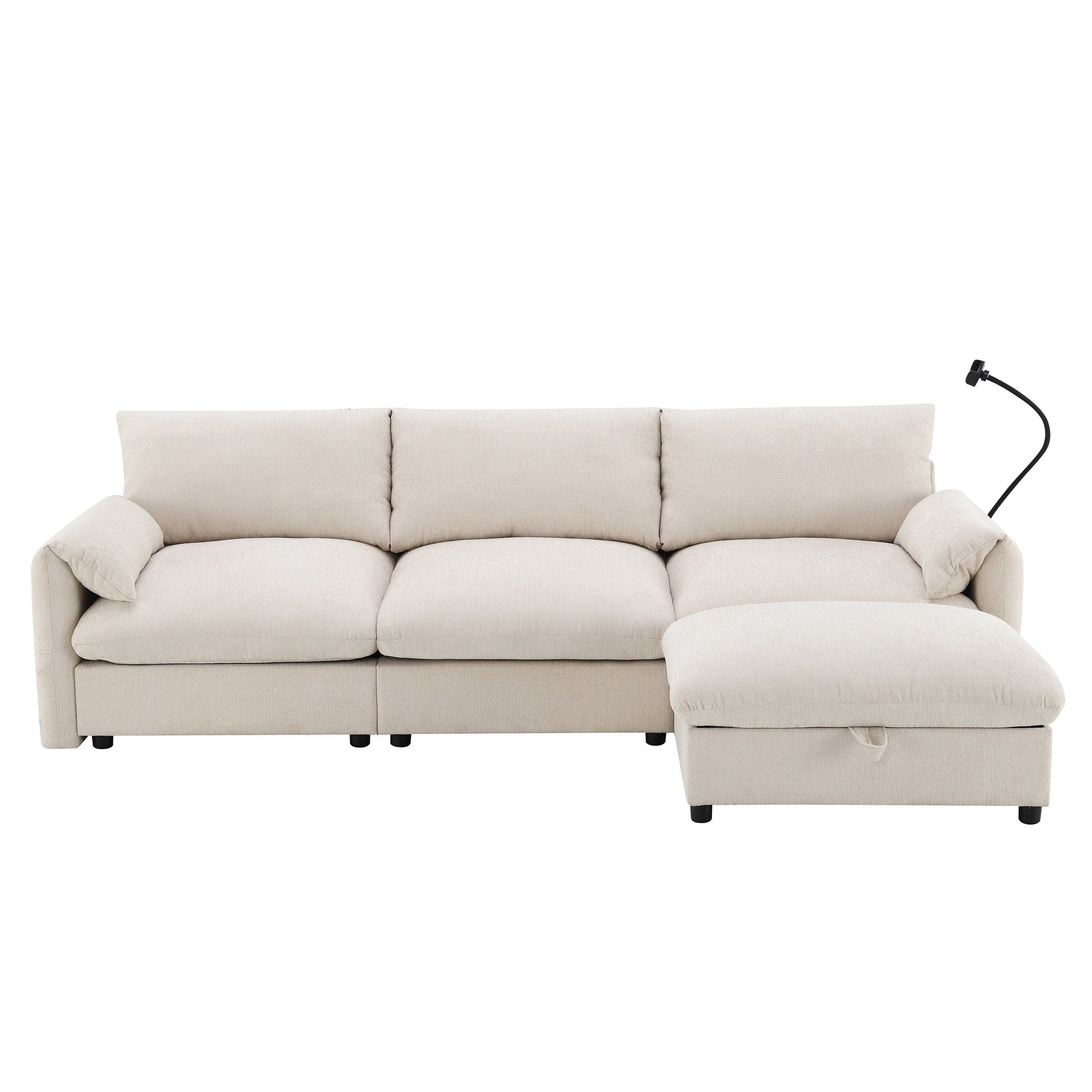 Oversized Multifunctional Storage Ottoman: The sofa features an exceptionally large 32.5-inch ottoman that offers both comfort and practicality. This multifunctional piece can be used as a footrest or extra seating while also providing hidden storage space. It's perfect for stowing away blankets, books, or other essentials, helping to keep your living area tidy and organized.