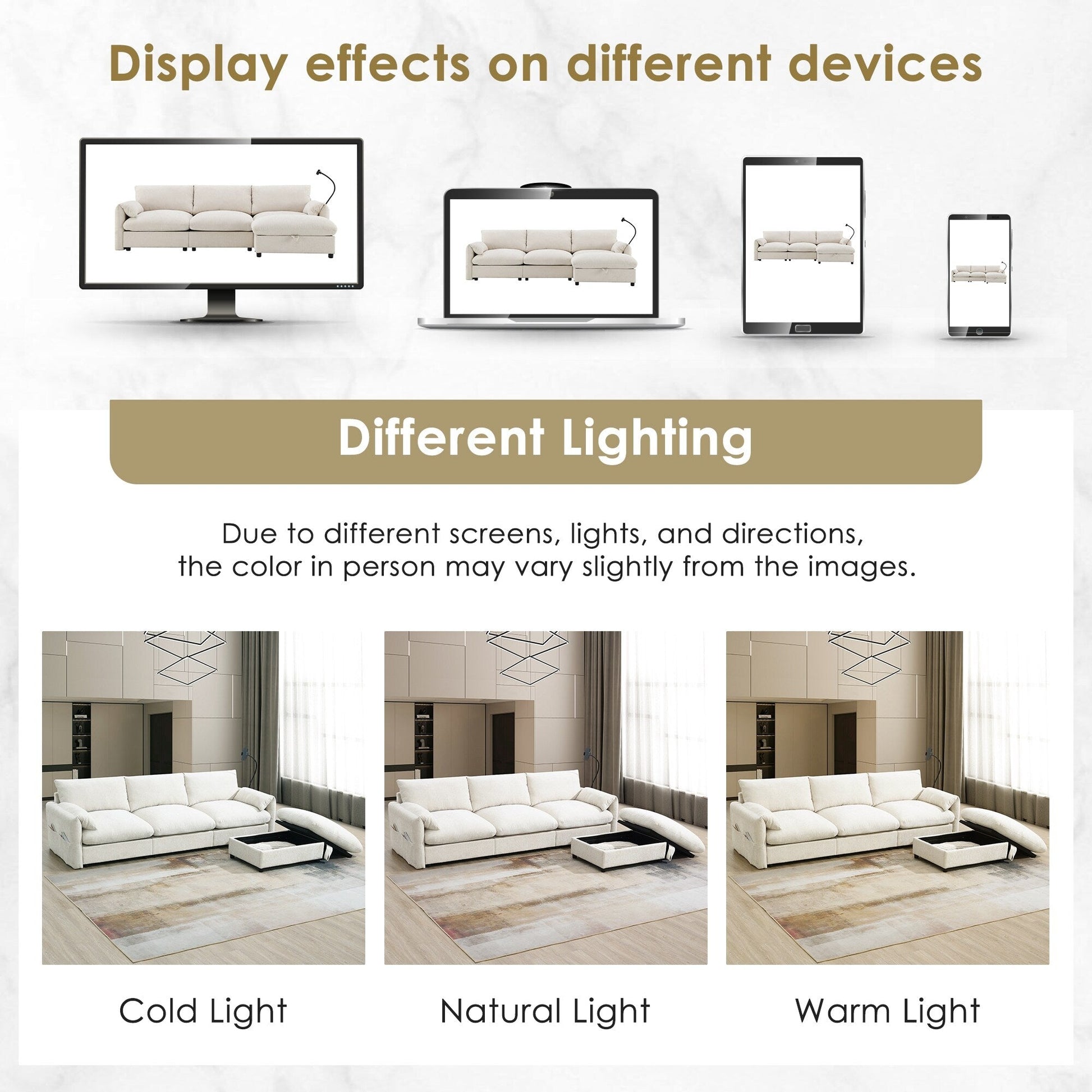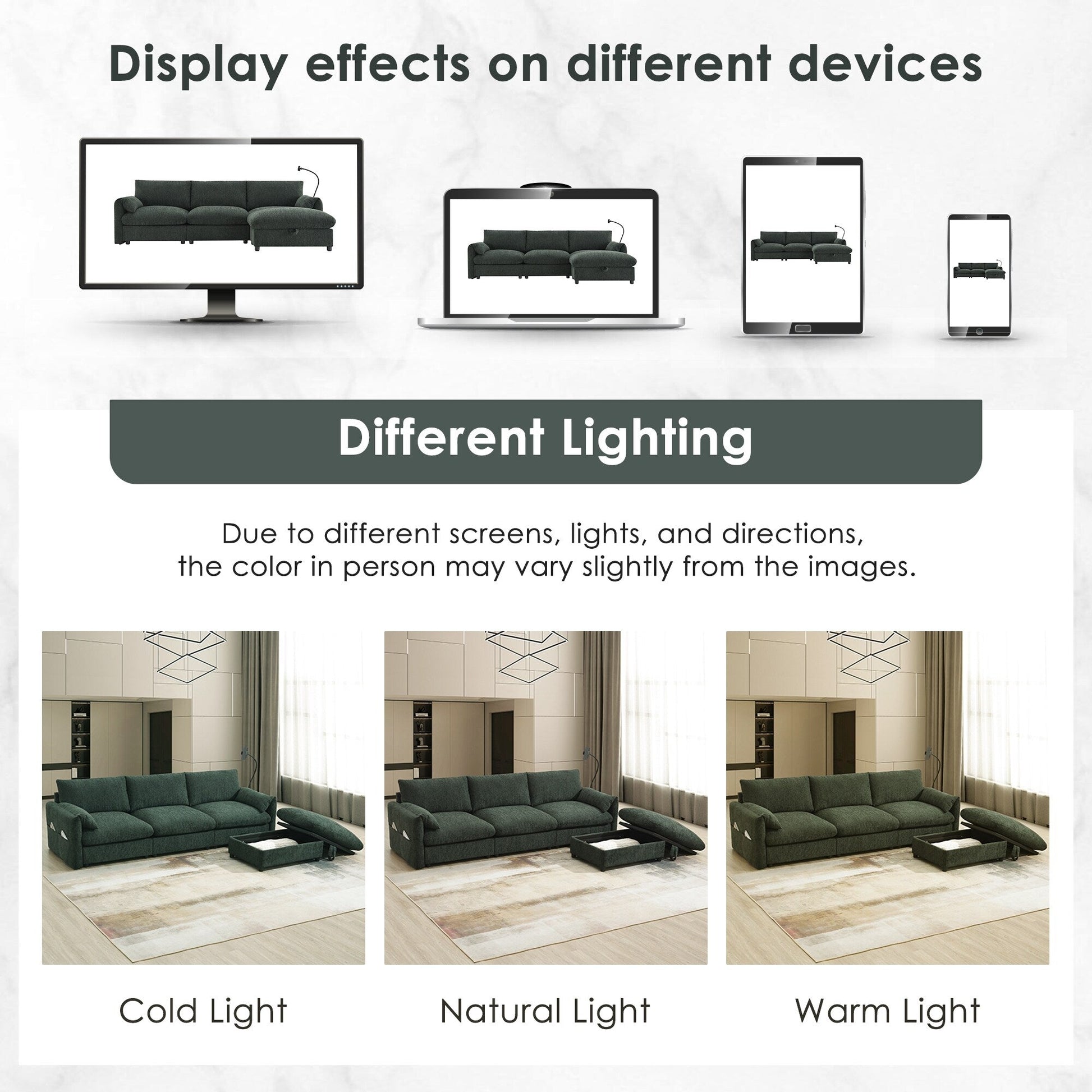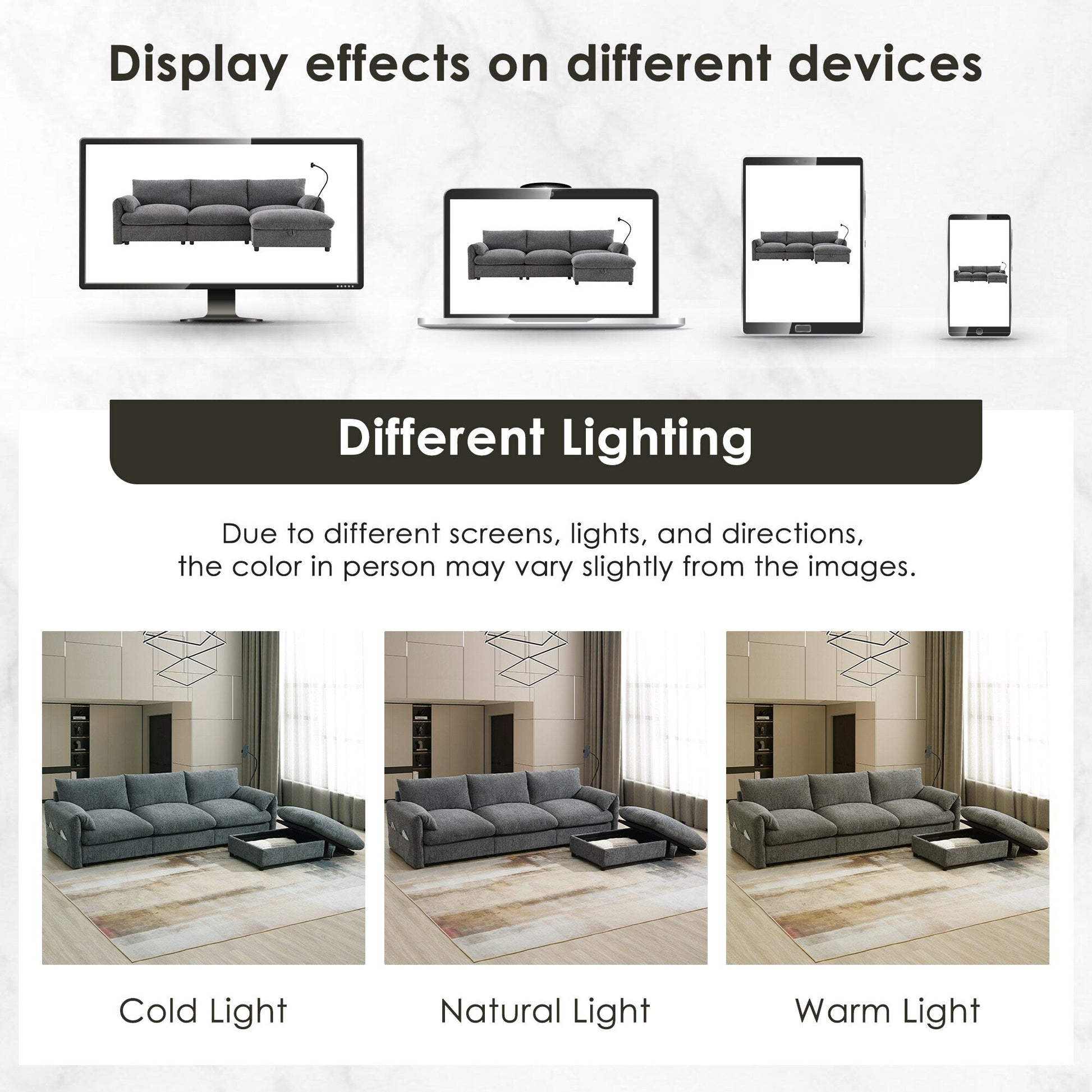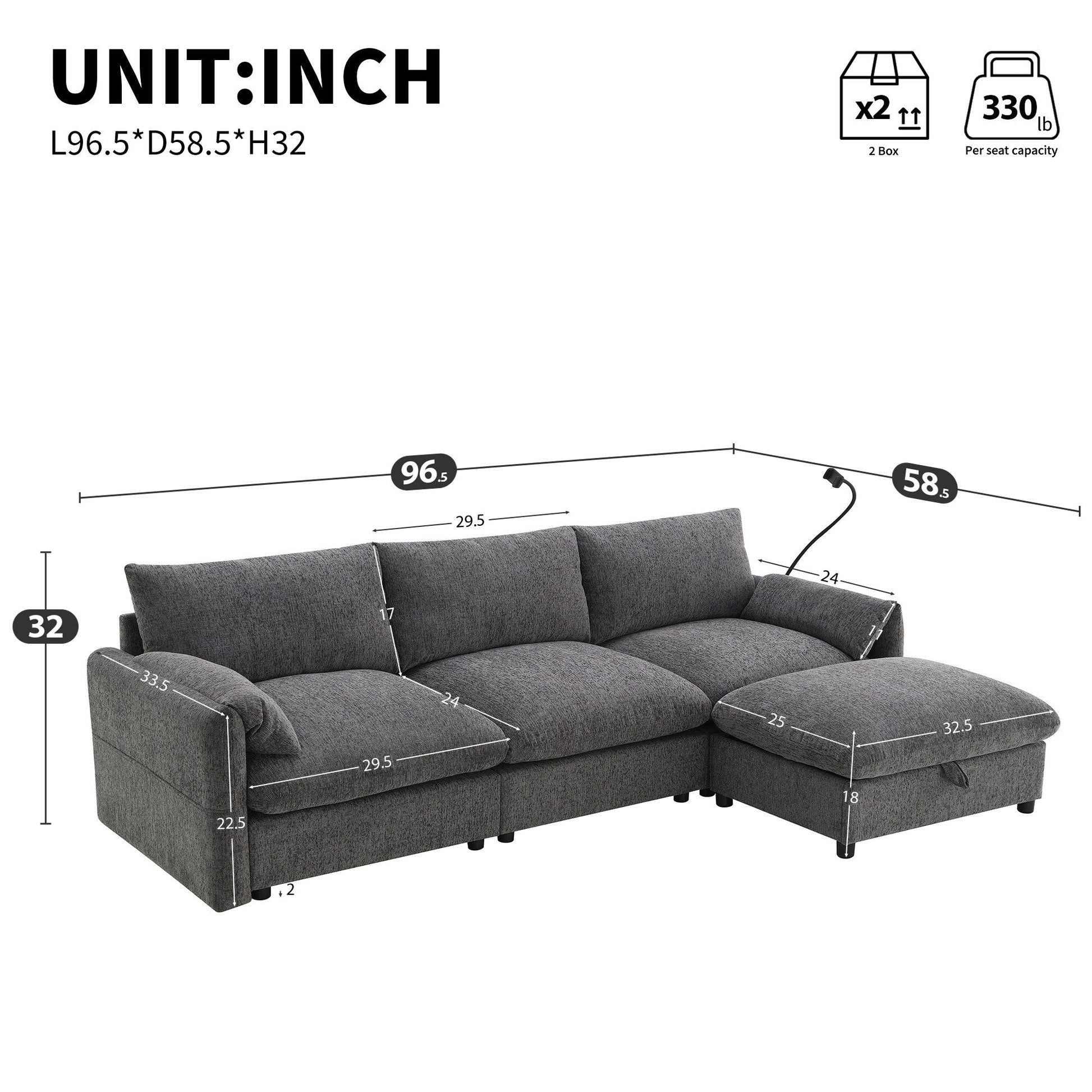 Oversized Multifunctional Storage Ottoman: The sofa features an exceptionally large 32.5-inch ottoman that offers both comfort and practicality. This multifunctional piece can be used as a footrest or extra seating while also providing hidden storage space. It's perfect for stowing away blankets, books, or other essentials, helping to keep your living area tidy and organized.