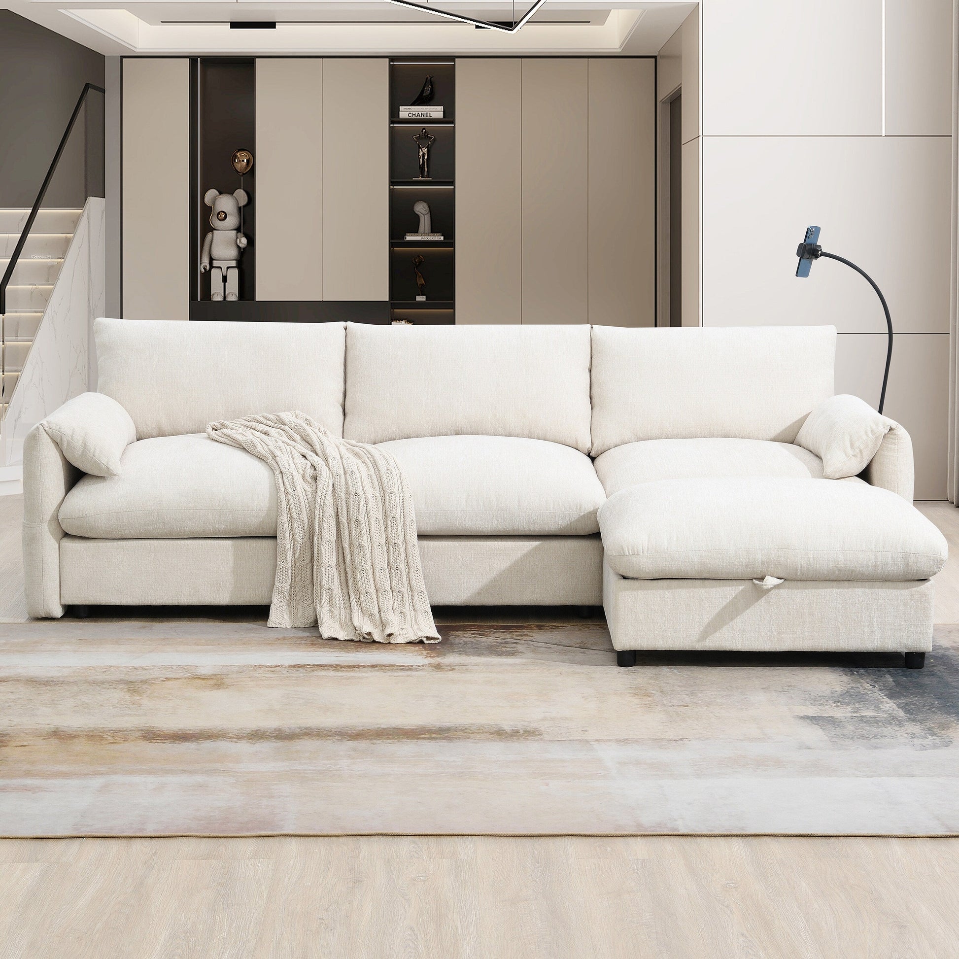 Adjustable Phone Holder: Designed with convenience in mind, this sofa includes an adjustable phone holder. Whether you're watching videos, making video calls, or just keeping your phone within easy reach, this flexible holder allows you to position your phone at the ideal angle for comfort and hands-free use.