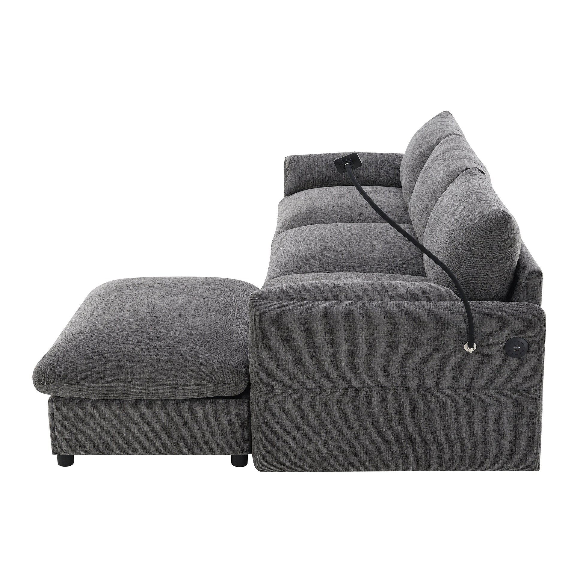 Type C + USB Charger: Stay connected without having to get up! The sofa is equipped with both a Type-C and a USB charging port, enabling you to charge your devices easily while relaxing. These convenient ports are built right into the sofa, making it easier than ever to power your phone, tablet, or other electronics without the need for extra cables or plugs.