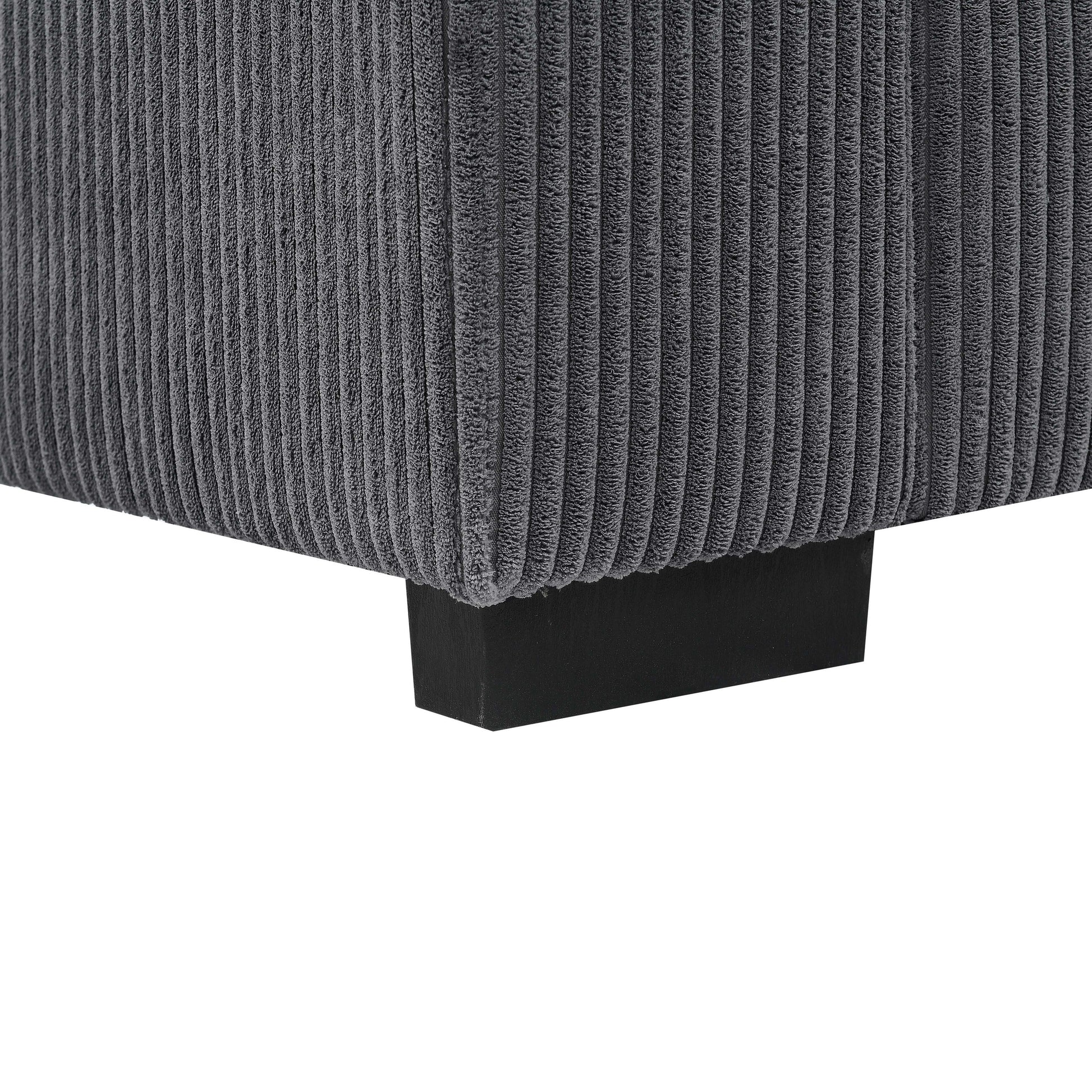 • Upholstered in soft, textured corduroy fabric in a calming hue, this sofa evokes the serene charm of a beachside retreat.