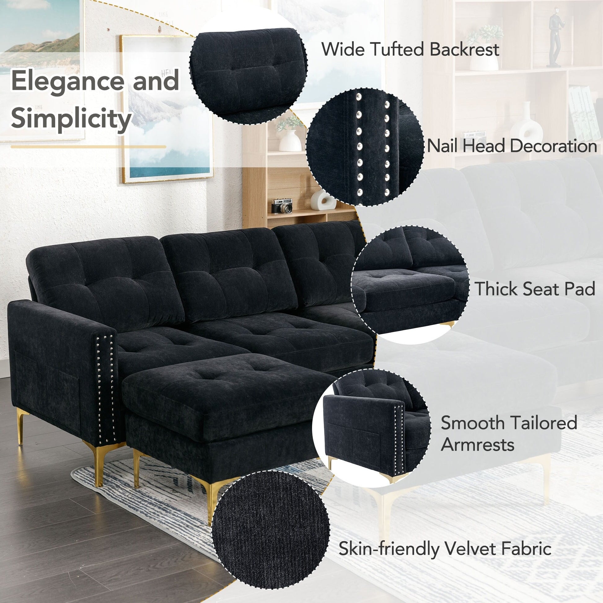 Convertible L-Shaped Velvet Sectional Sofa with...