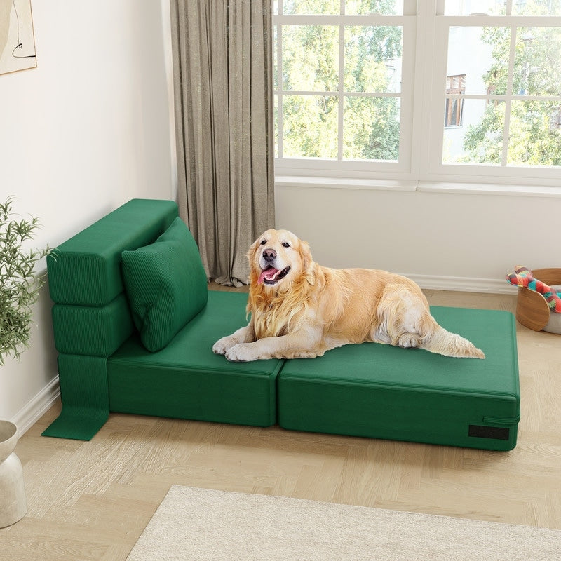 Corduroy Compression Convertible Folding Sectional Sofas...