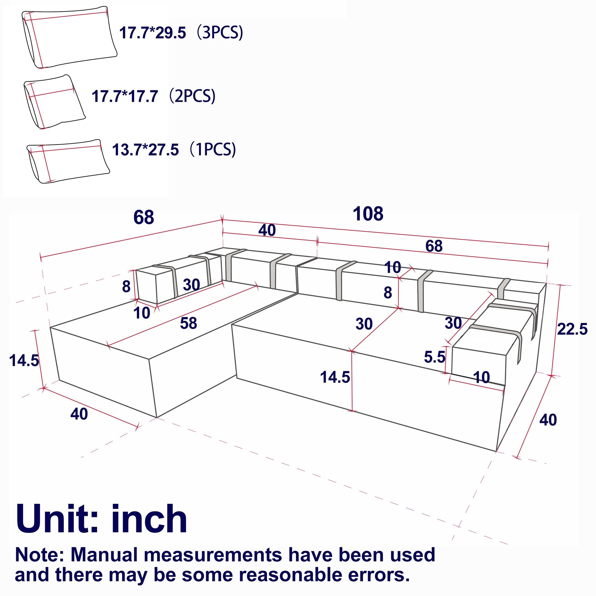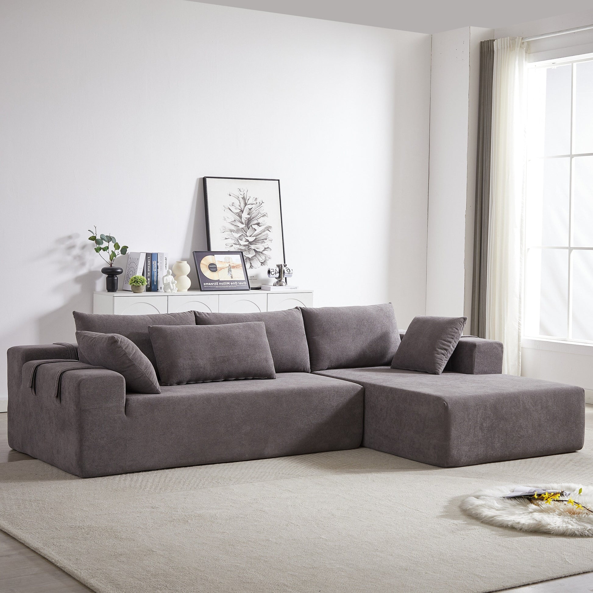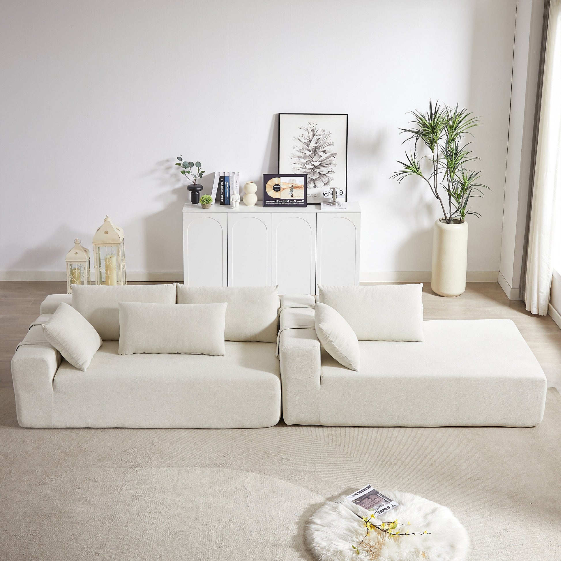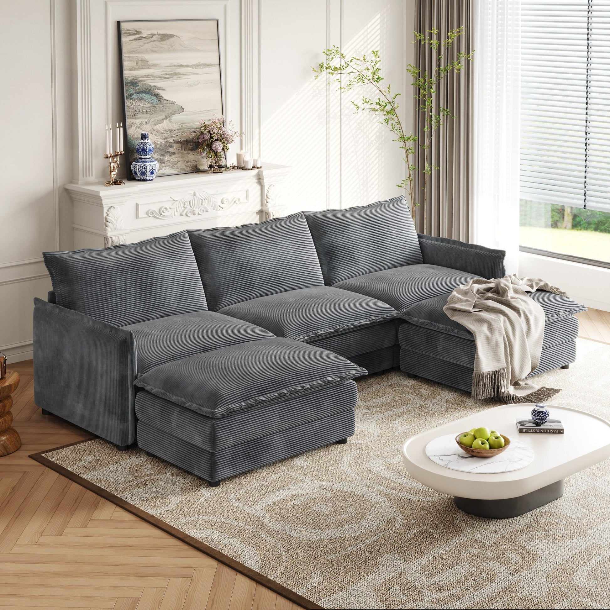 Corduroy Fabric 3-Seater Cloud Couch with 2 Movable Footrest,U Shaped Couch Set,Upholstered Deep Seat 2-Seat with 3 cushions