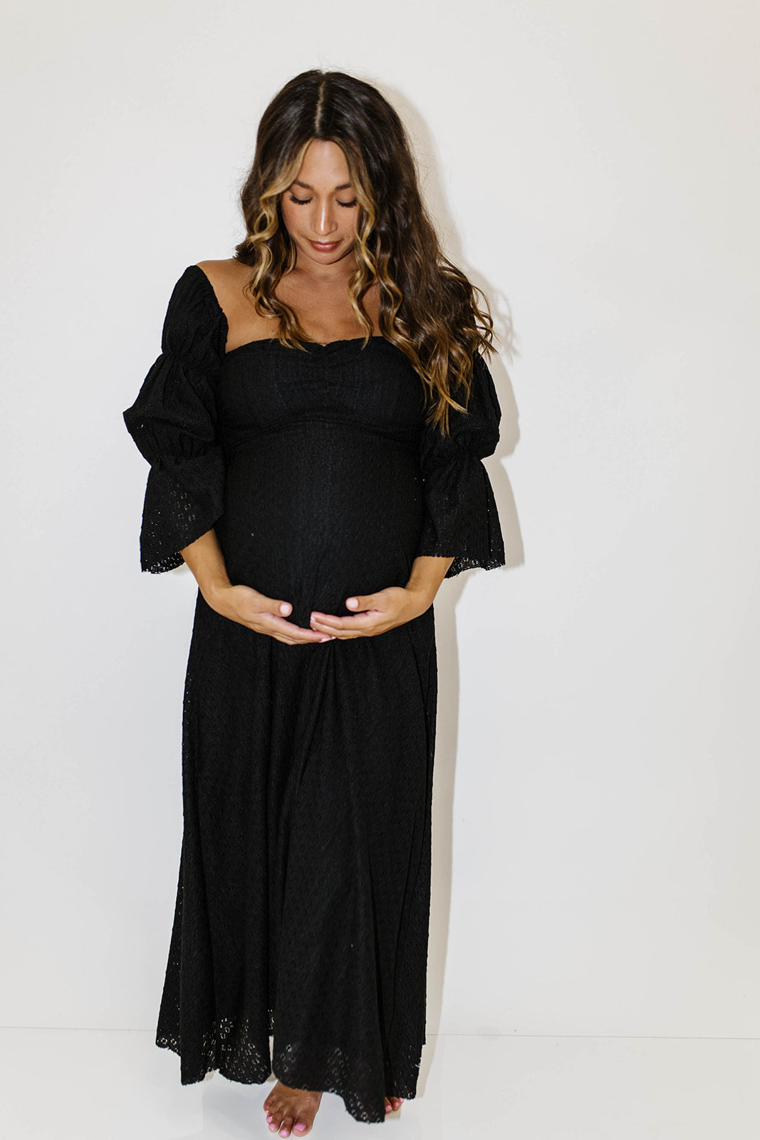 Corrine Tiered Sleeve Maxi Dress with Pockets in Black - Bump Friendly
