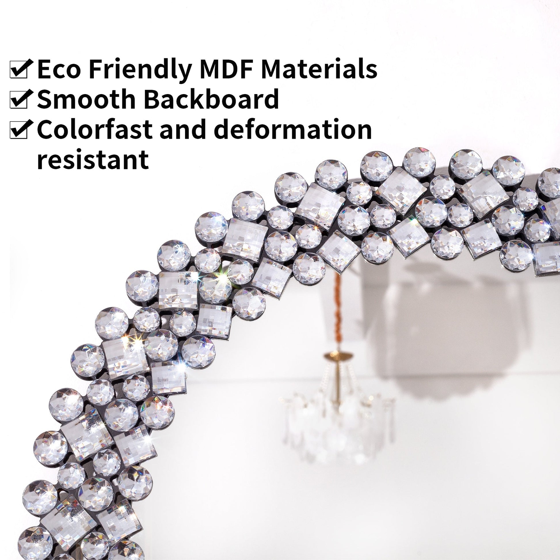 • Sophisticated Design】The round wall mirror is adorned with several layers of large, shiny, and luxurious crystals on the outer edge, creating a sparkling effect that captures attention and serves as a focal point in home decor.