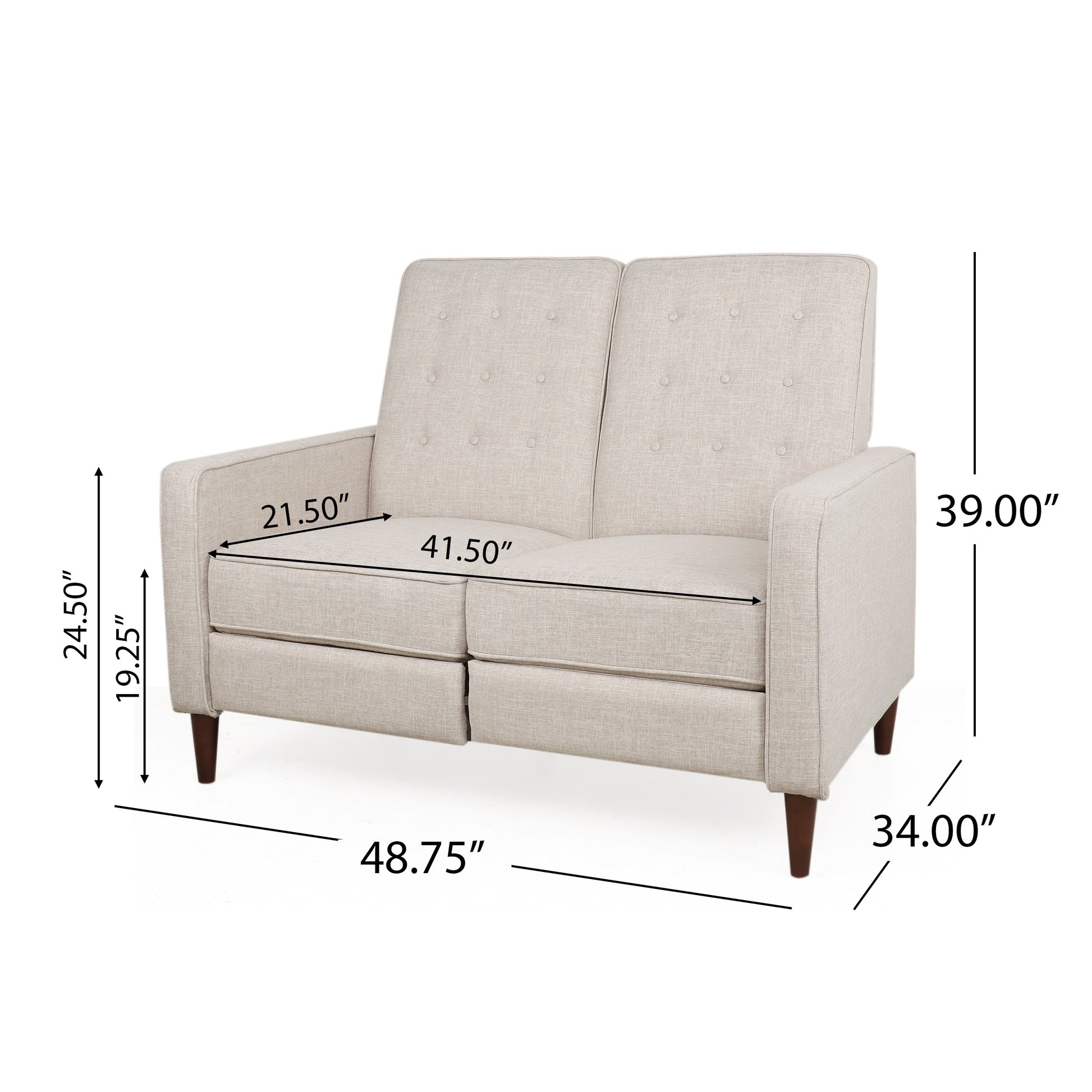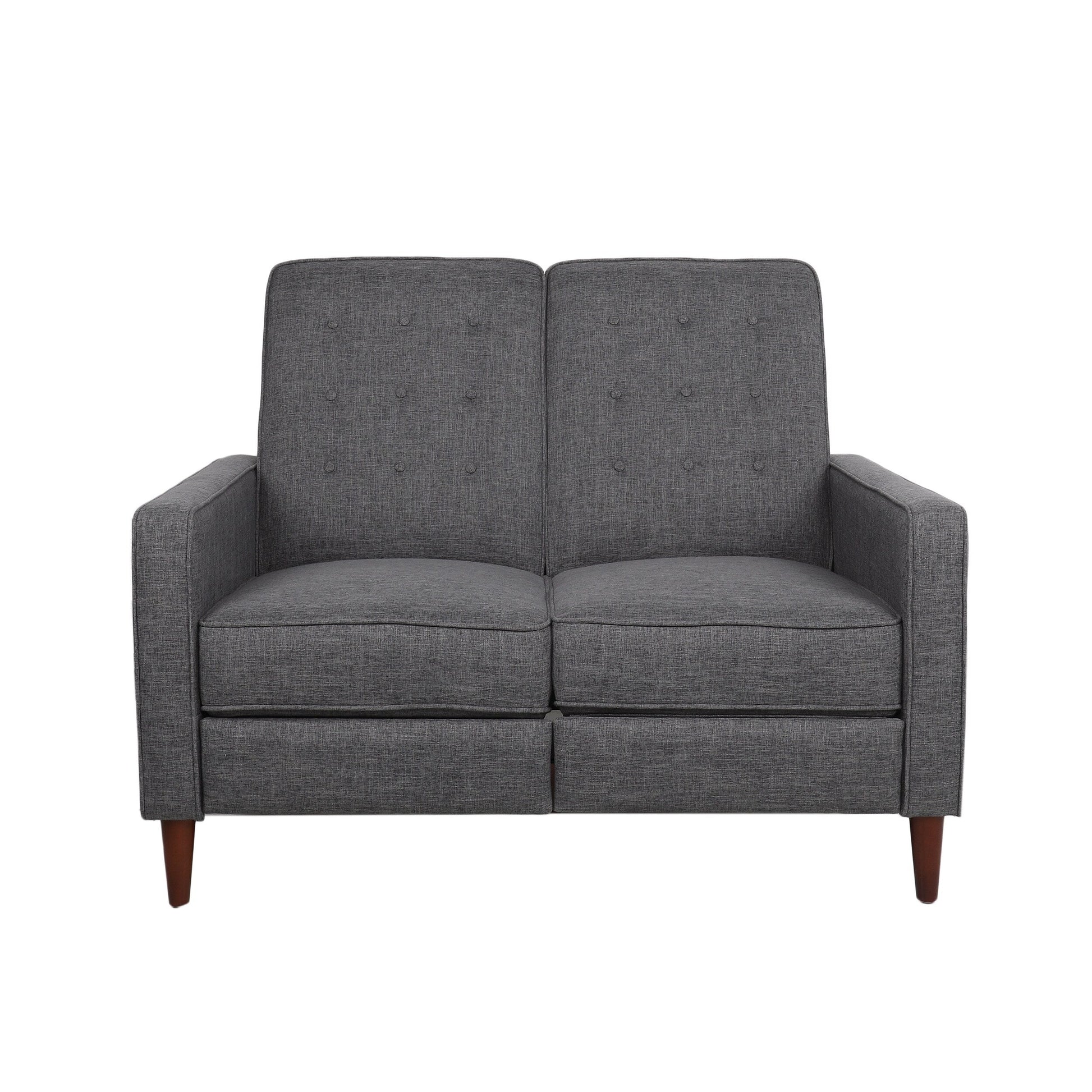 Snuggle up with a loved one in seating that was made for two. Our convenient loveseat recliner provides an incredibly high degree of leisure in an attractive package, emphasizing clean lines and a charming contemporary design. Featuring sophisticated button tufting and complementing waffle stitching, this recliner perfectly pairs style with its push-back functionality allowing for high comfort with little effort. Sure to become the new favorite spot of leisure, this loveseat recliner is something you and your family will surely enjoy.