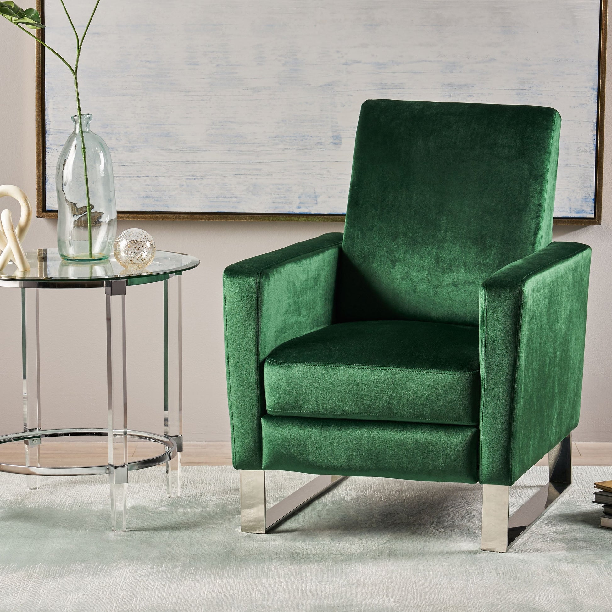 Emerald Modern Velvet Upholstered Push-Back Recliner...