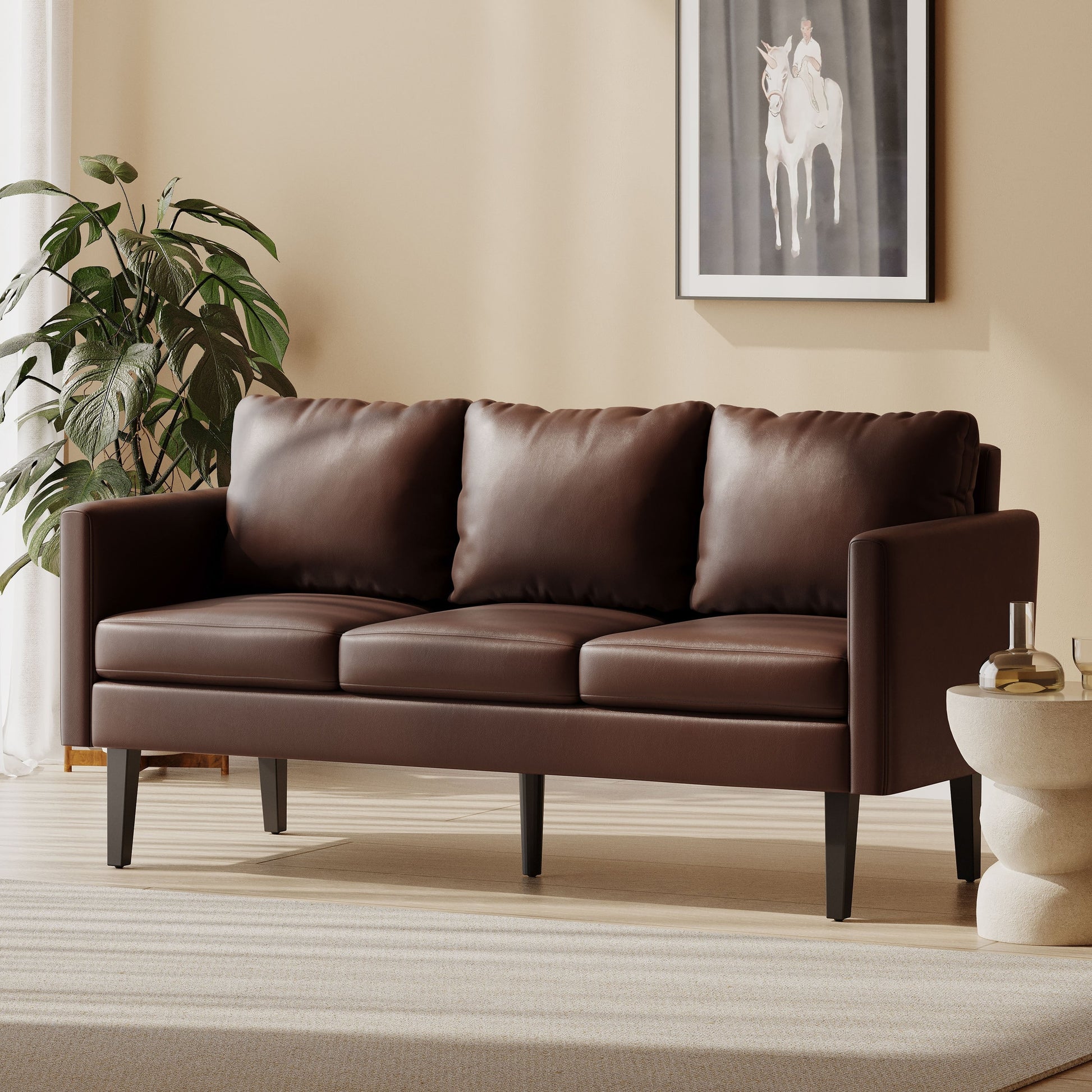 Faux Leather 3-seater Sofa with Birch Wood Legs