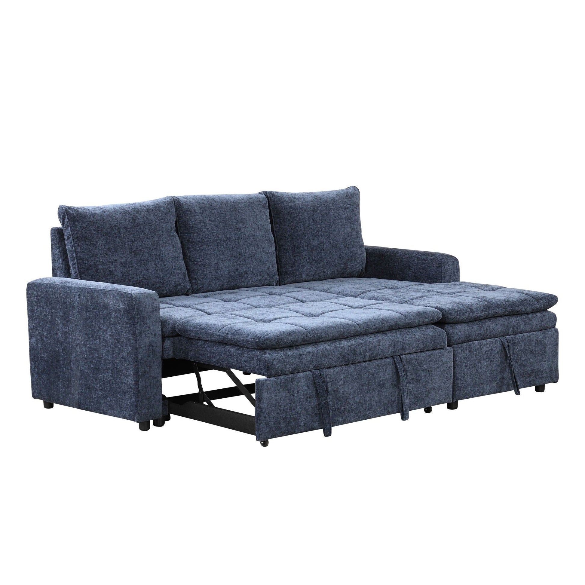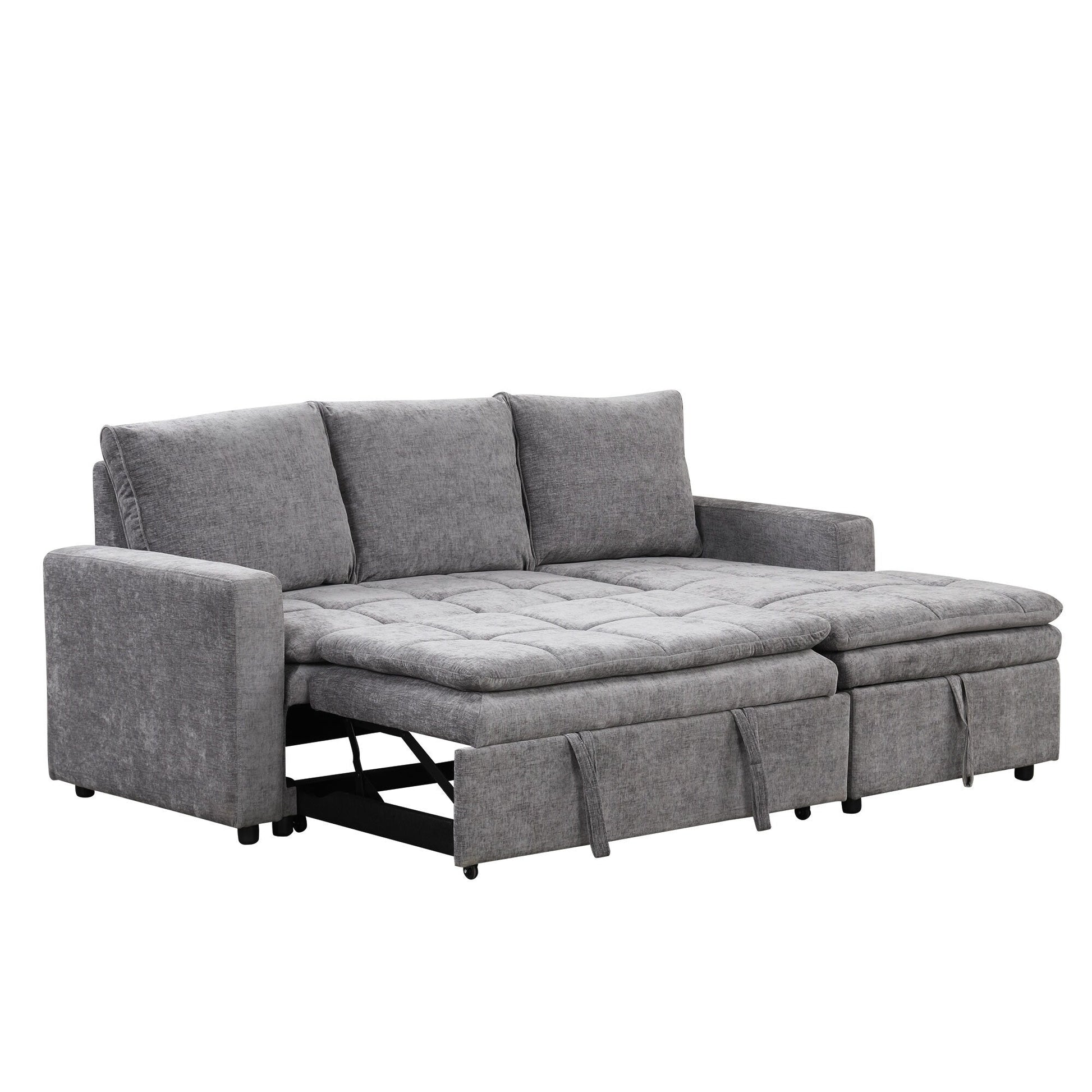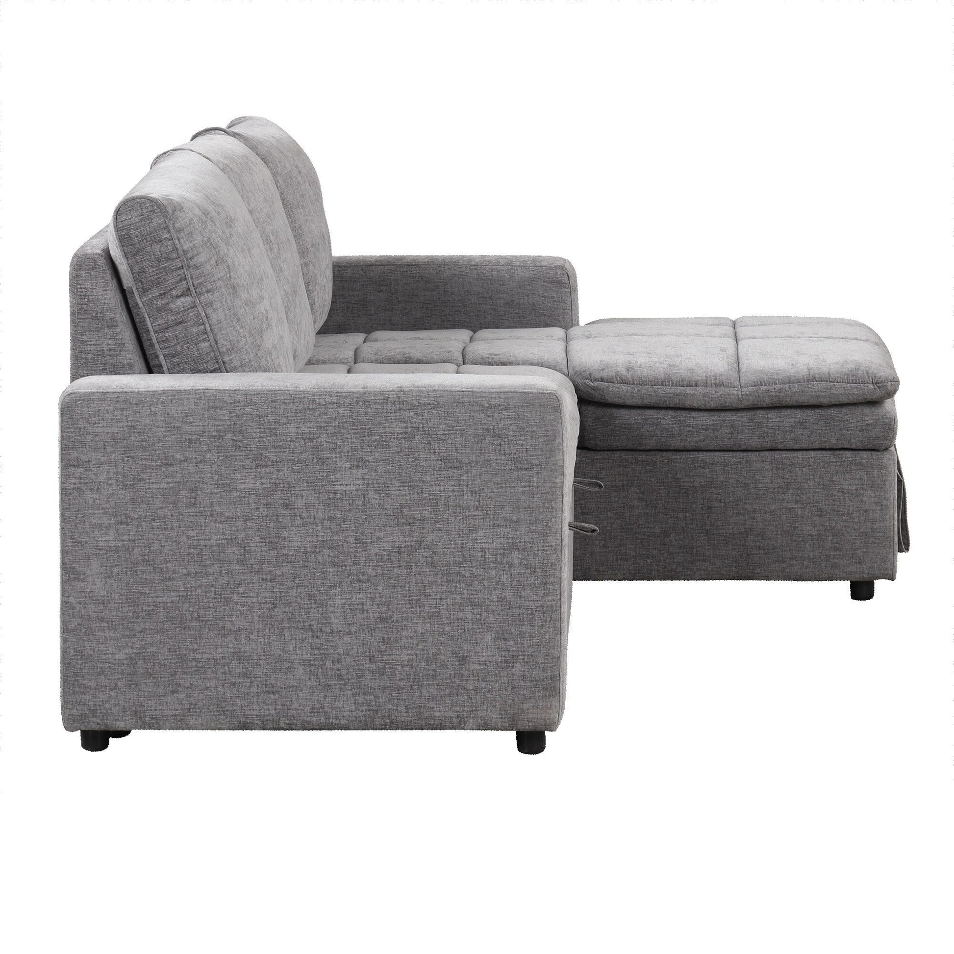 Free Conversion L-Shaped 3-Seat Sectional Sofa Bed with...