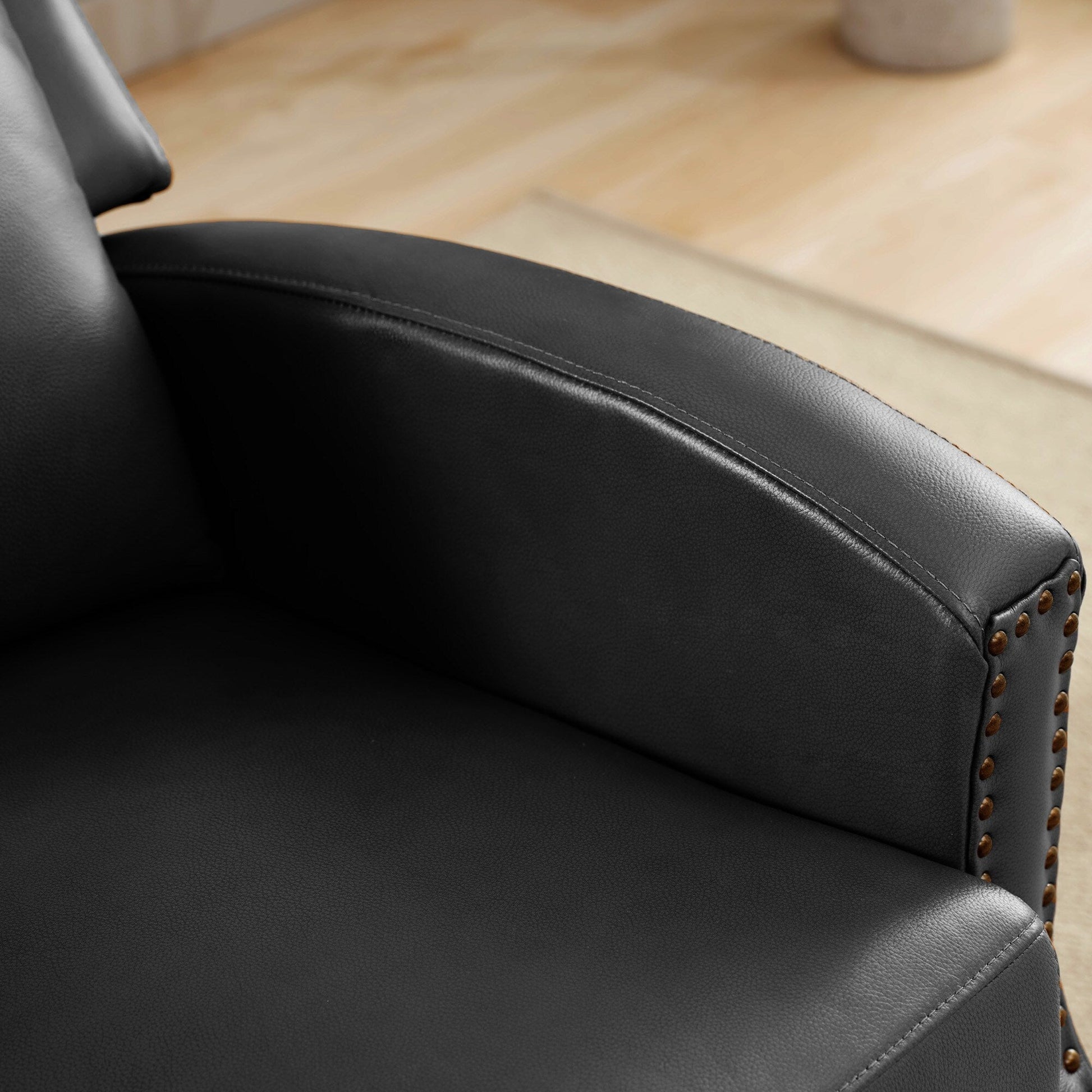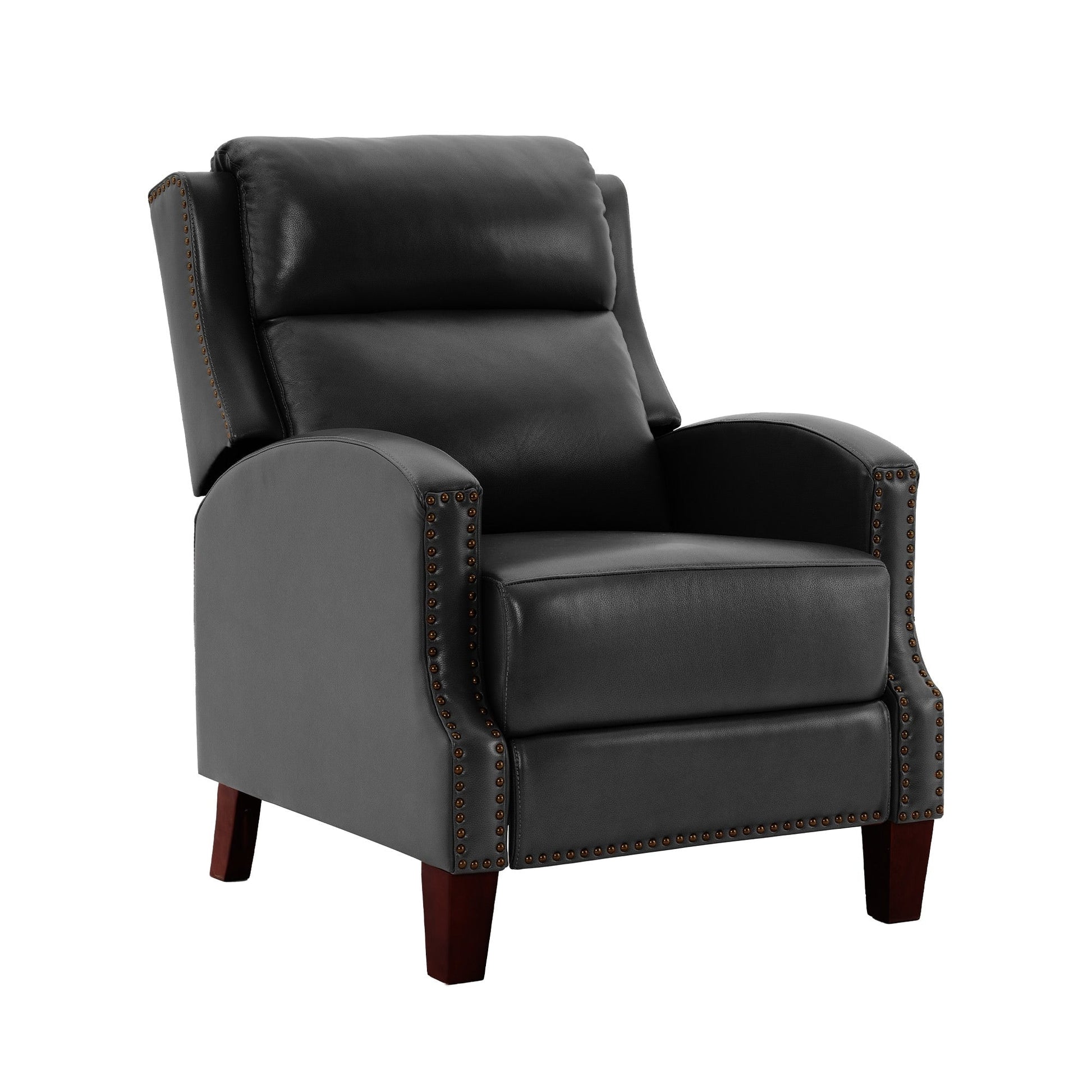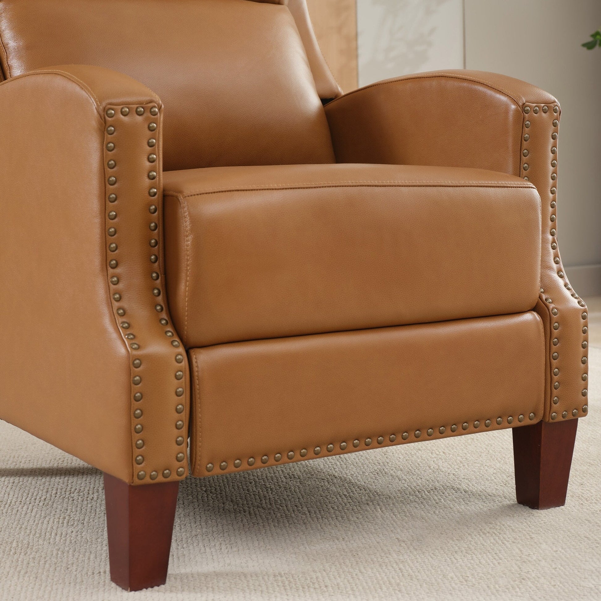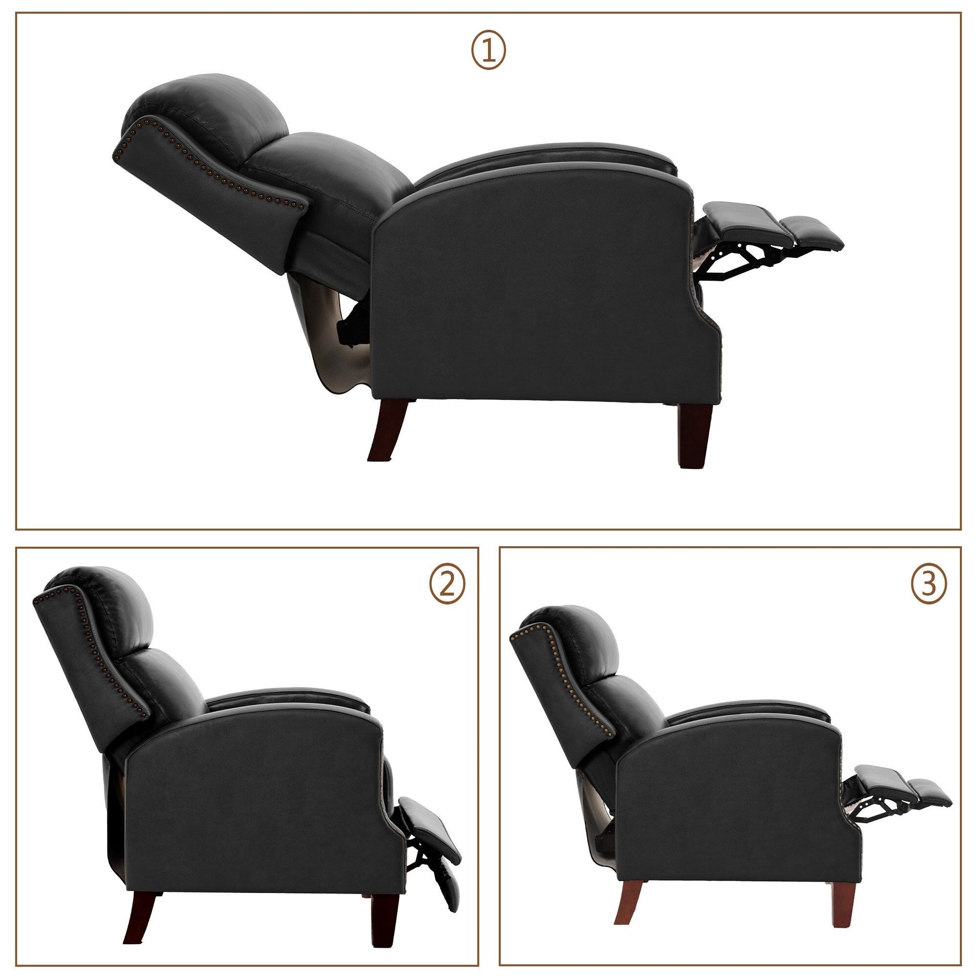 Genuine Leather Pushback Recliner with Multi-Angle Seat Back and Solid Wood Legs