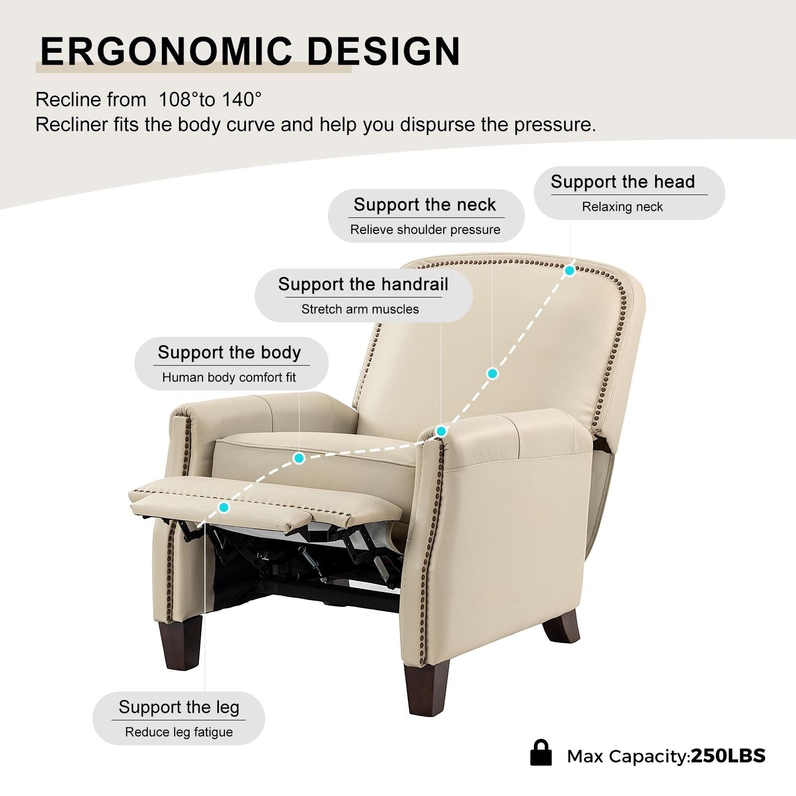 Nailhead Trim: Beautifully crafted nailhead trim adds an elegant and stylish touch to the recliner's design.