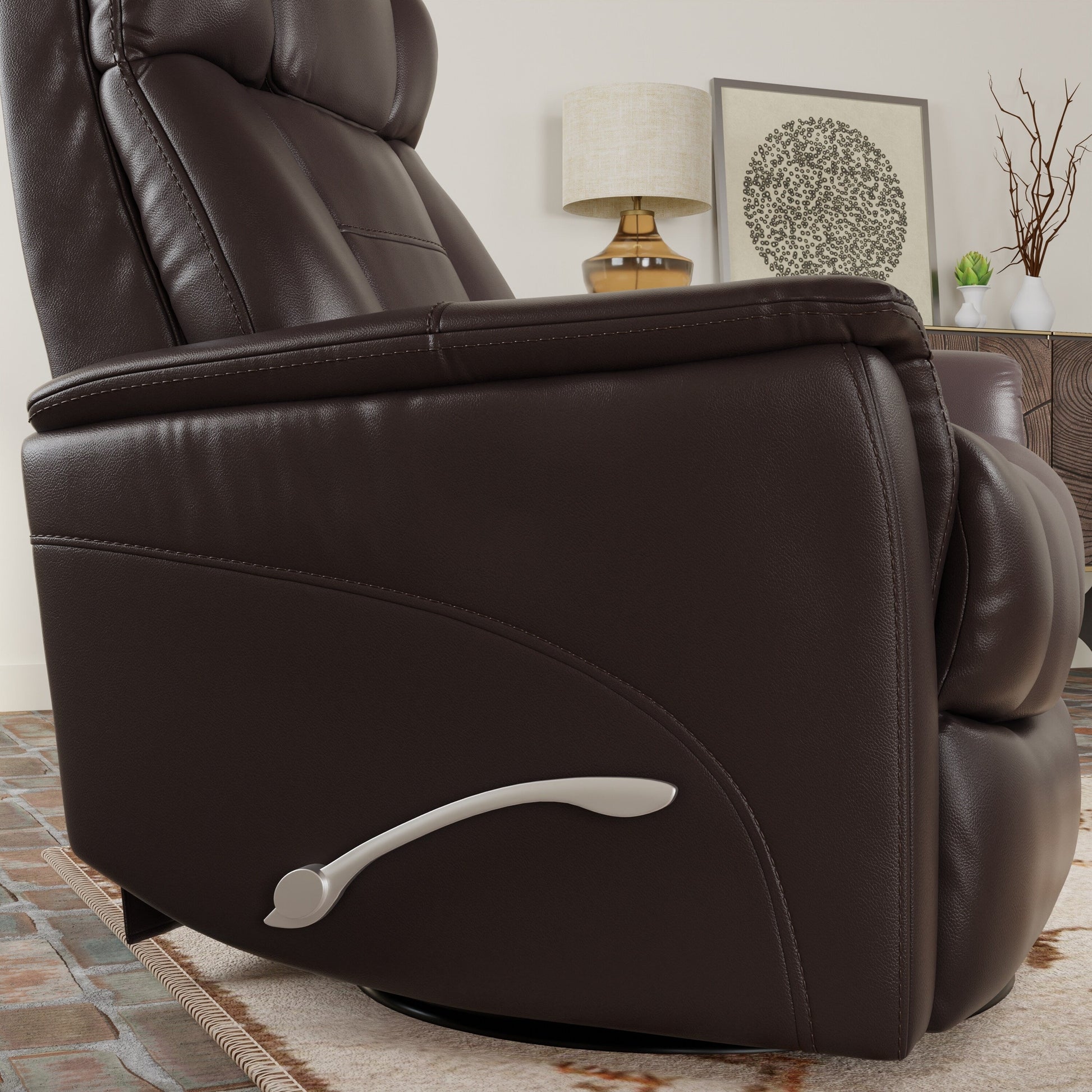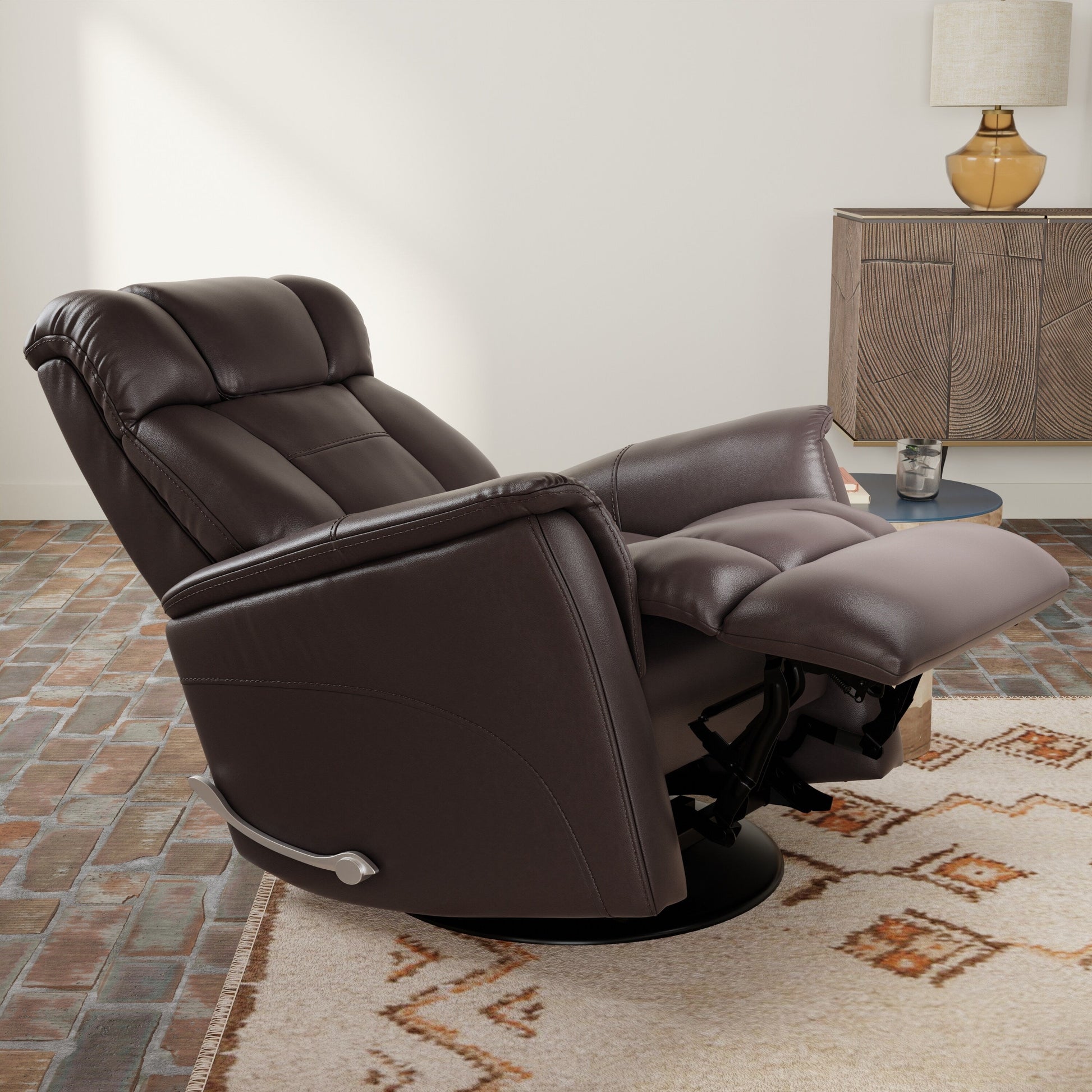Global Home Swivel Glider Recliner with Manual Adjustable Headrest Footrest In Faux Leather Bentley