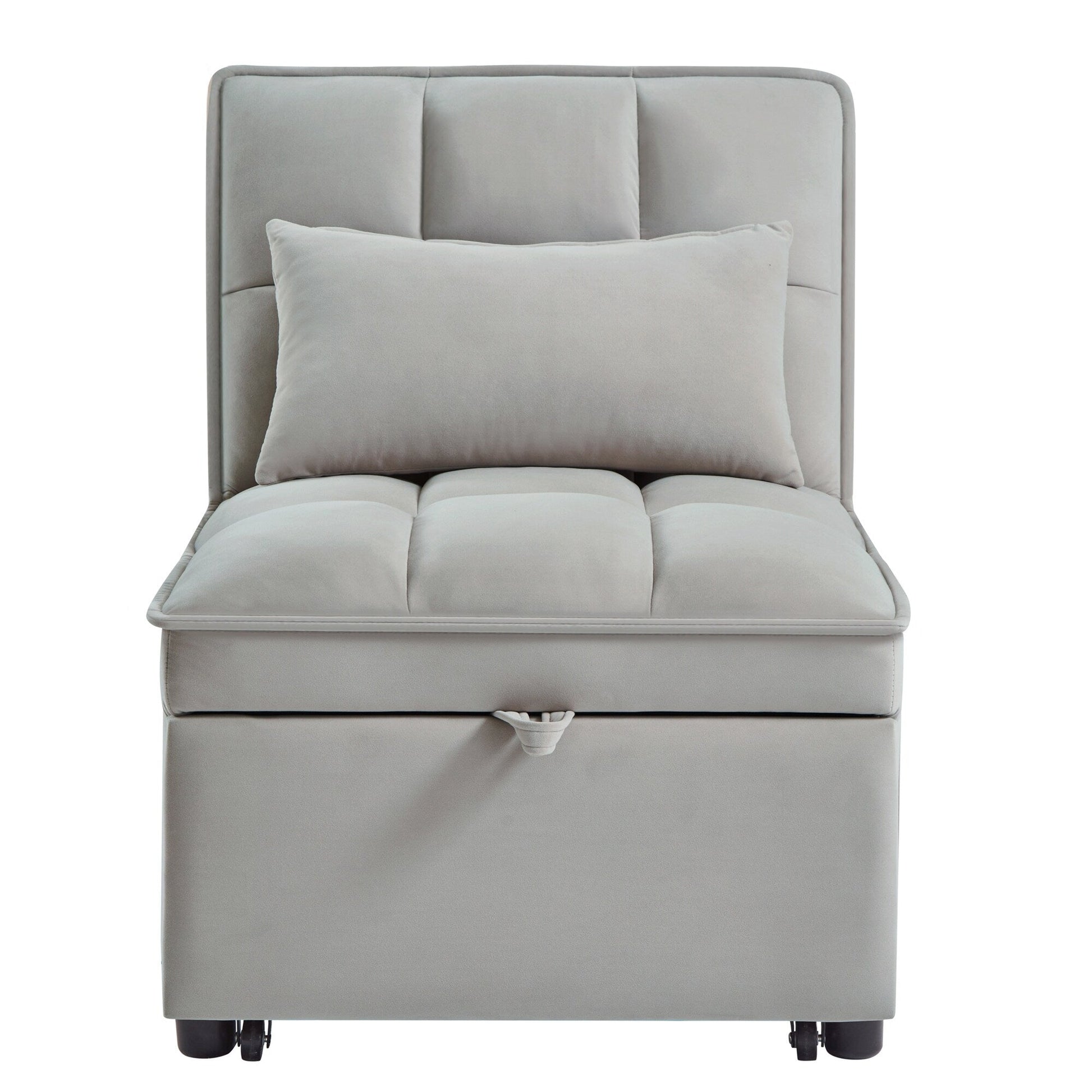 Gray 68.5 Velvet Single Folding Sofa Bed with Adjustable Backrest and Pillows for Living Room