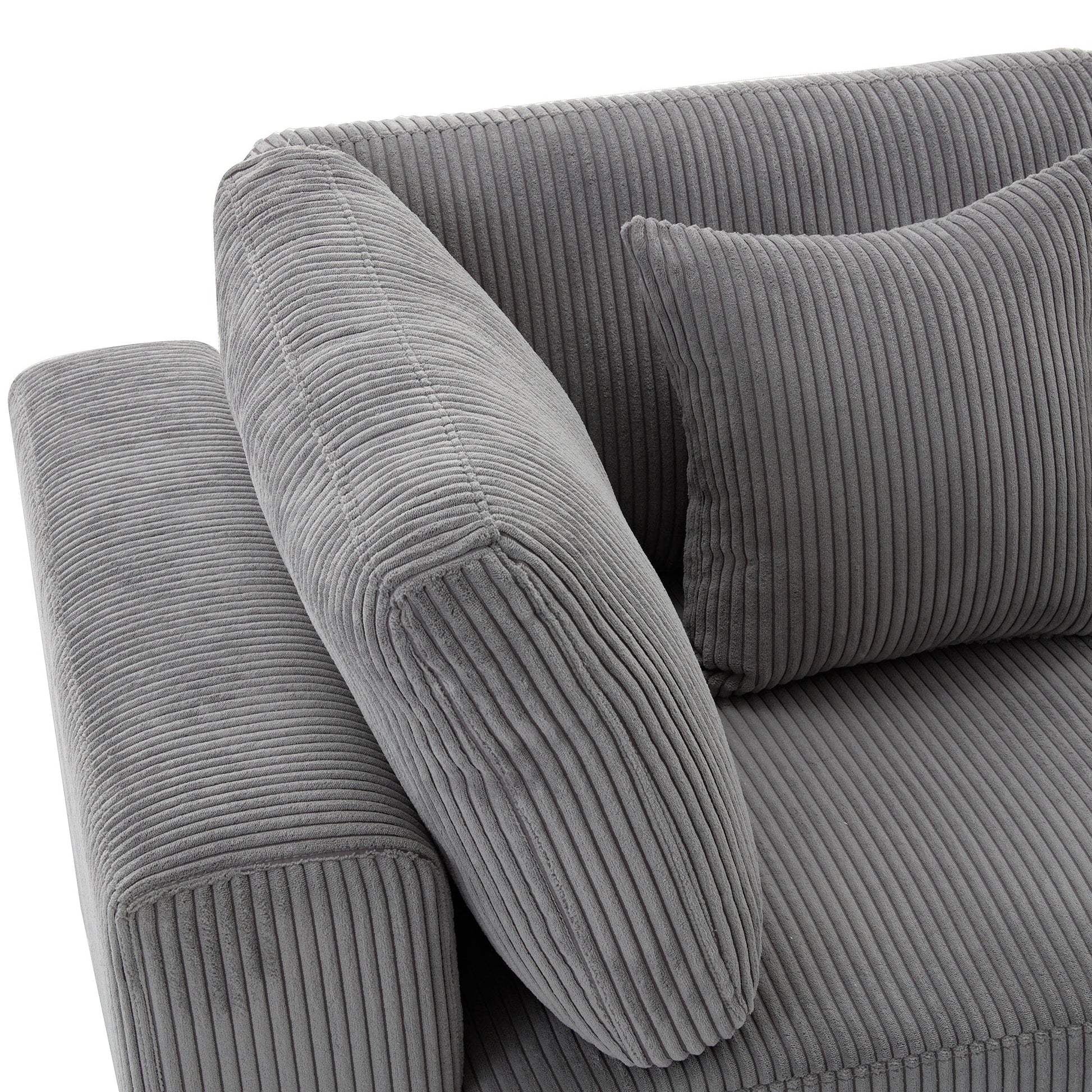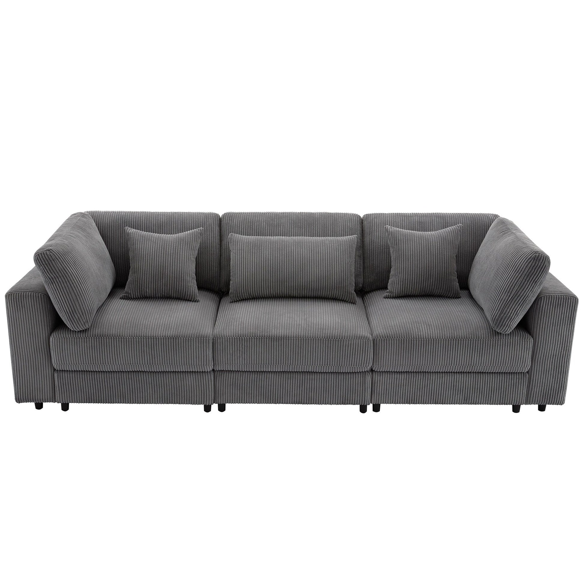 Gray Corduroy Upholstered 3-seater Sofa with Removable Cushions