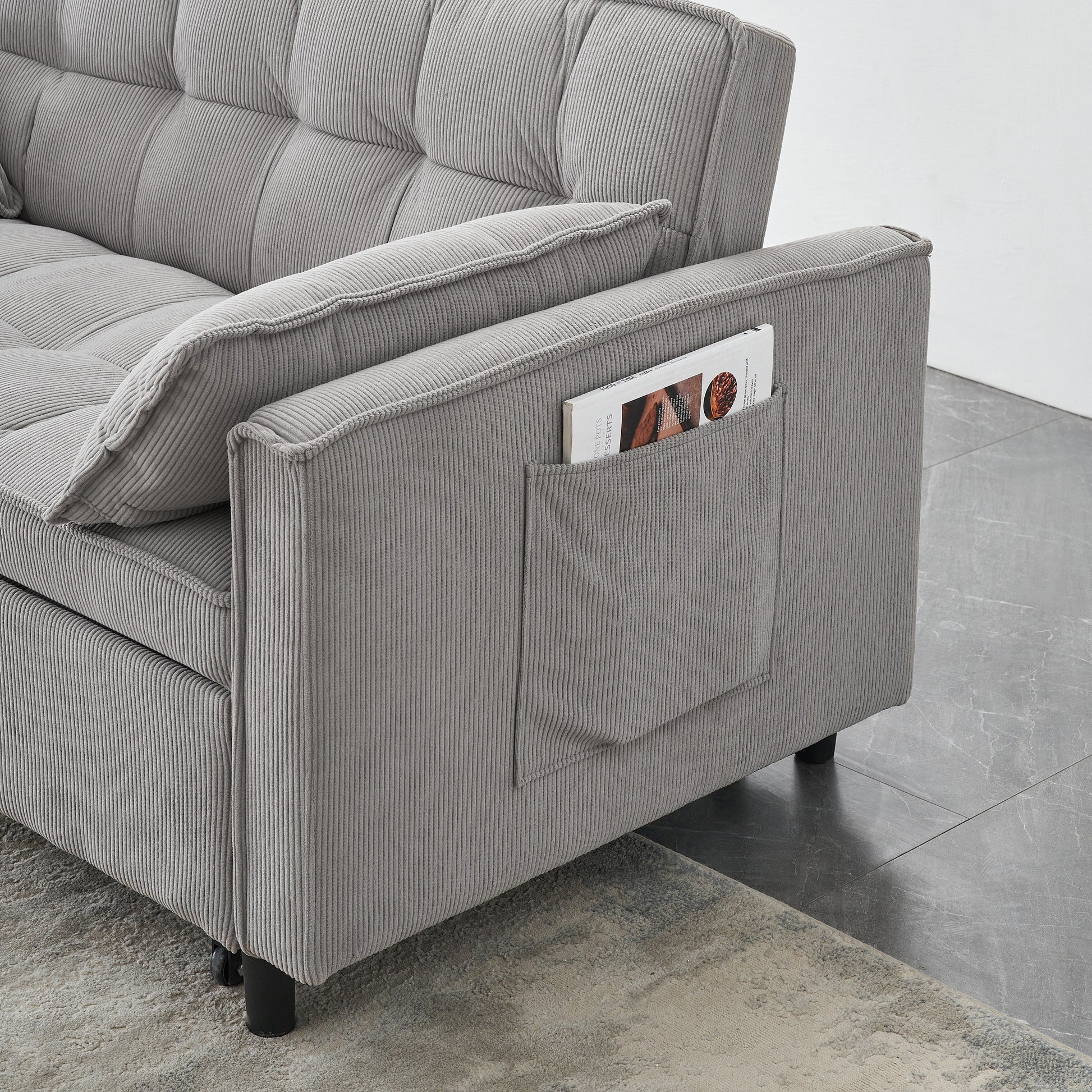 Gray Modern 54.3 Corduroy Loveseat Pull-out Sofa Bed with Adjustable Back and Pillows for Living Room