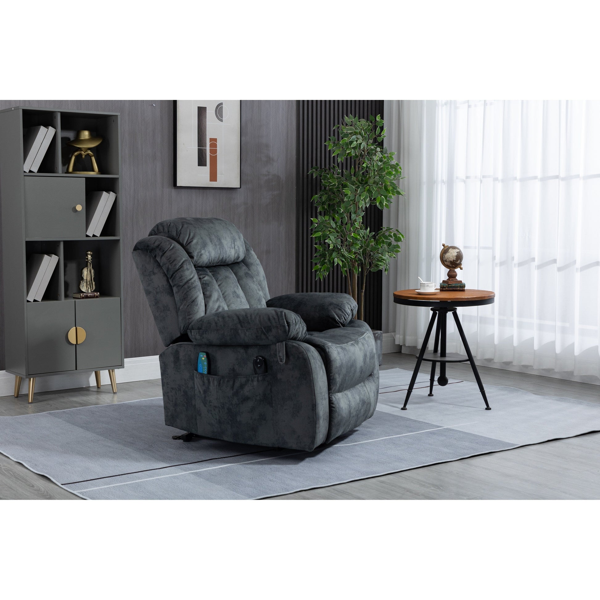 Gray Oversized Velvet Upholstered Power Lift Recliner with...