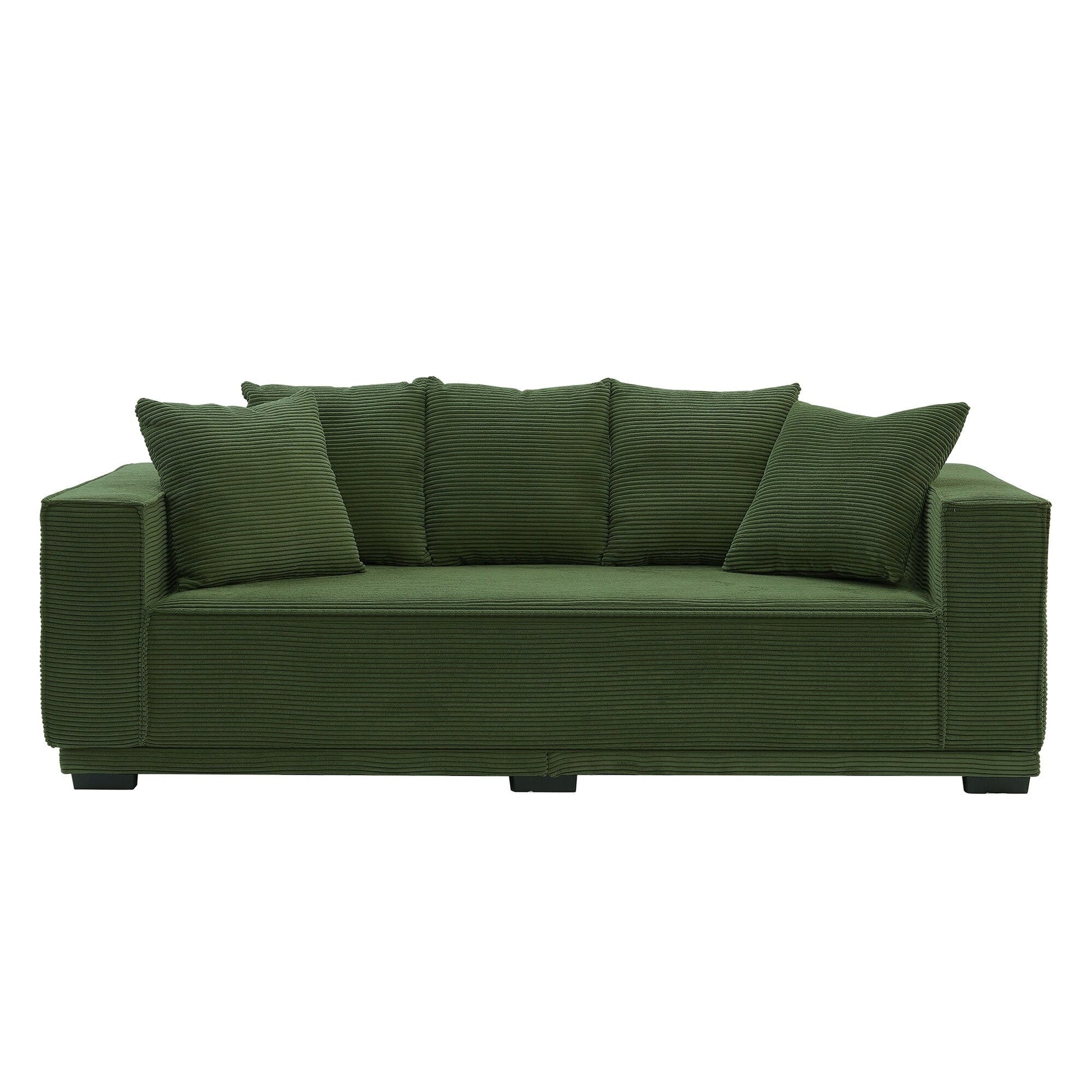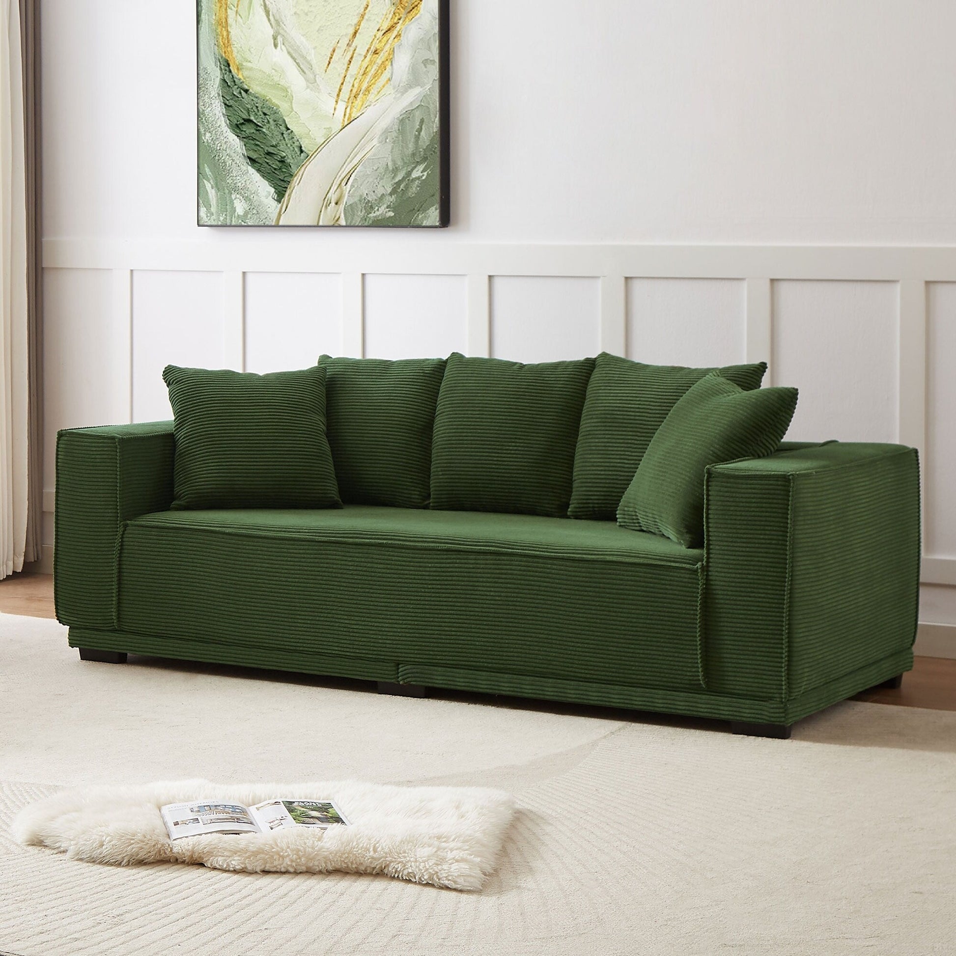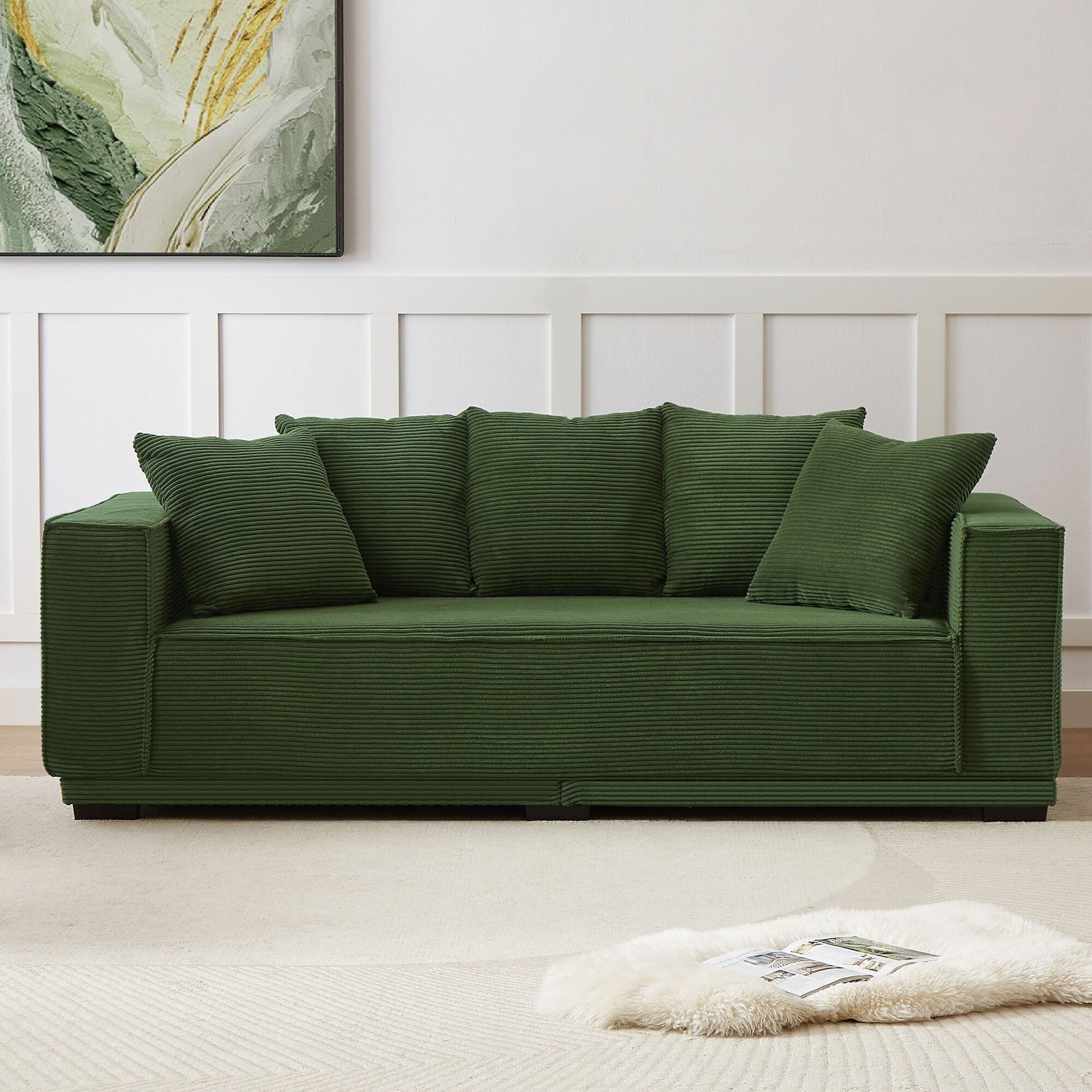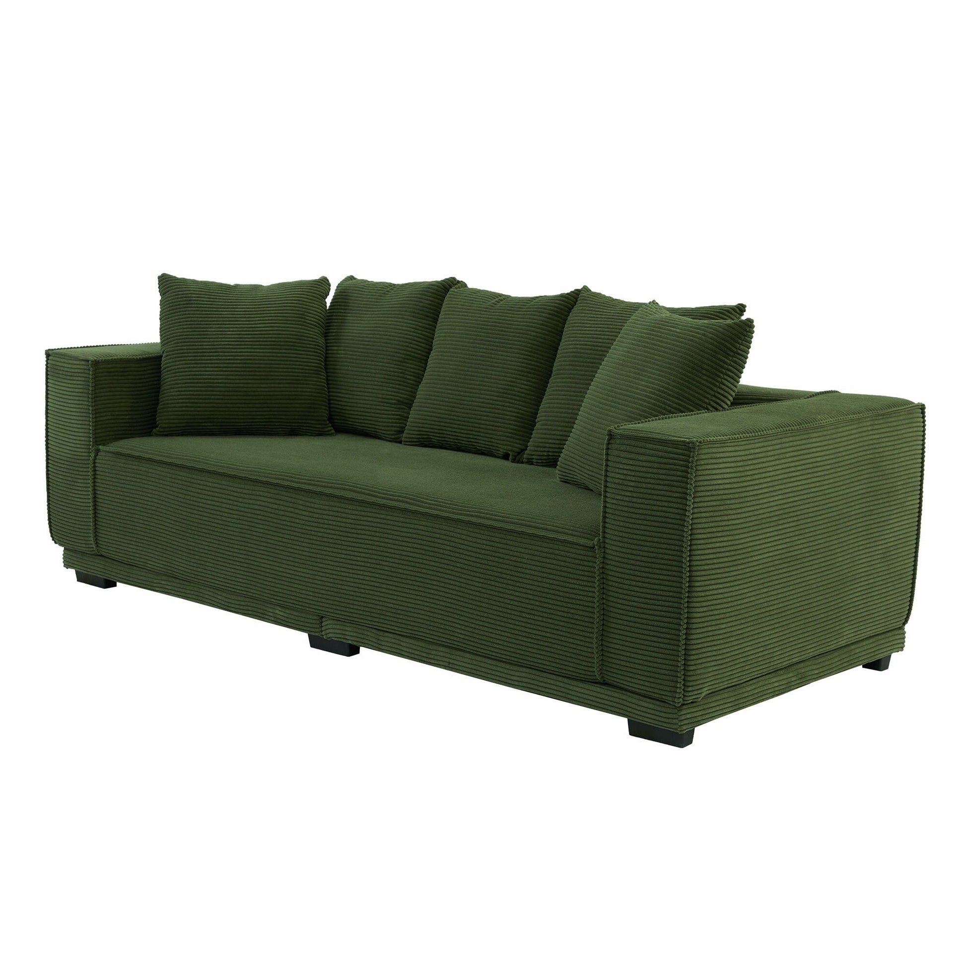 Green Corduroy Upholstered 3-seater Sofa with Toss Pillows