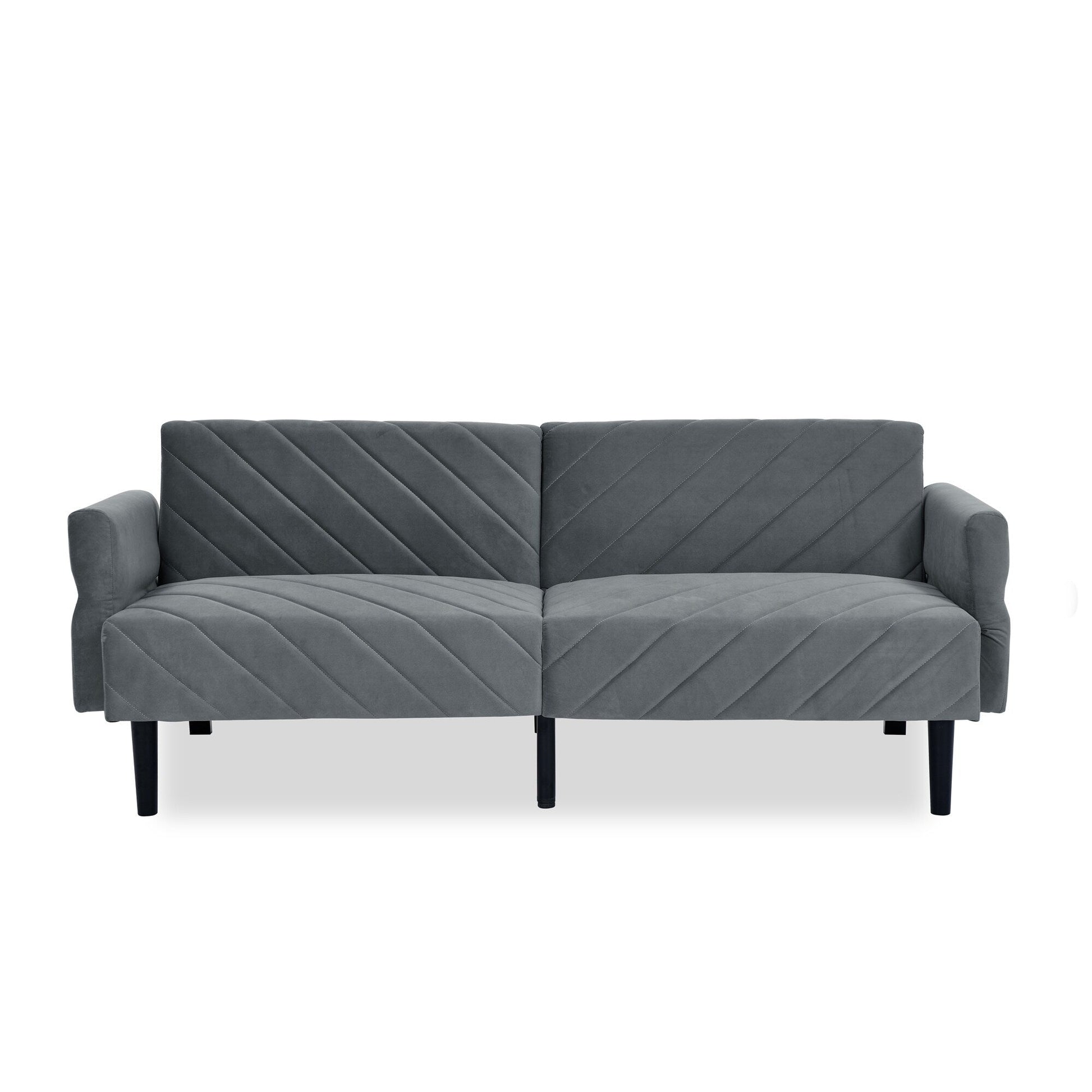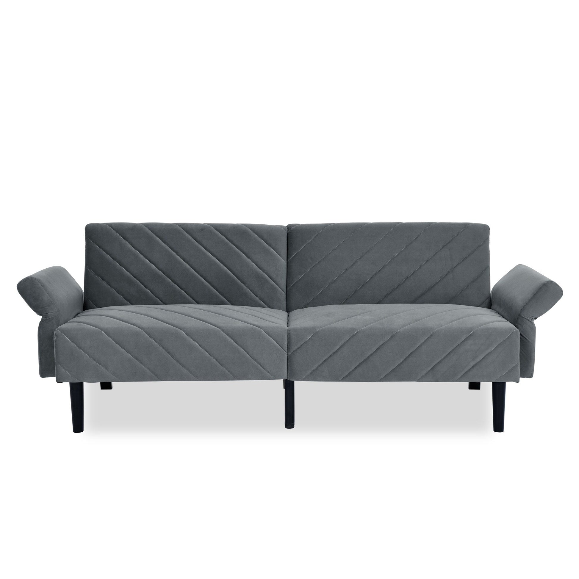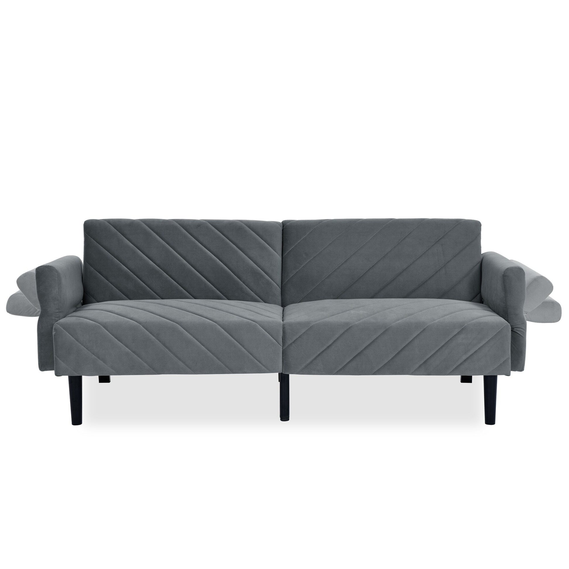 Grey 87 Velvet Tufted Convertible Futon Sofa Bed with Adjustable Armrests for Living Room
