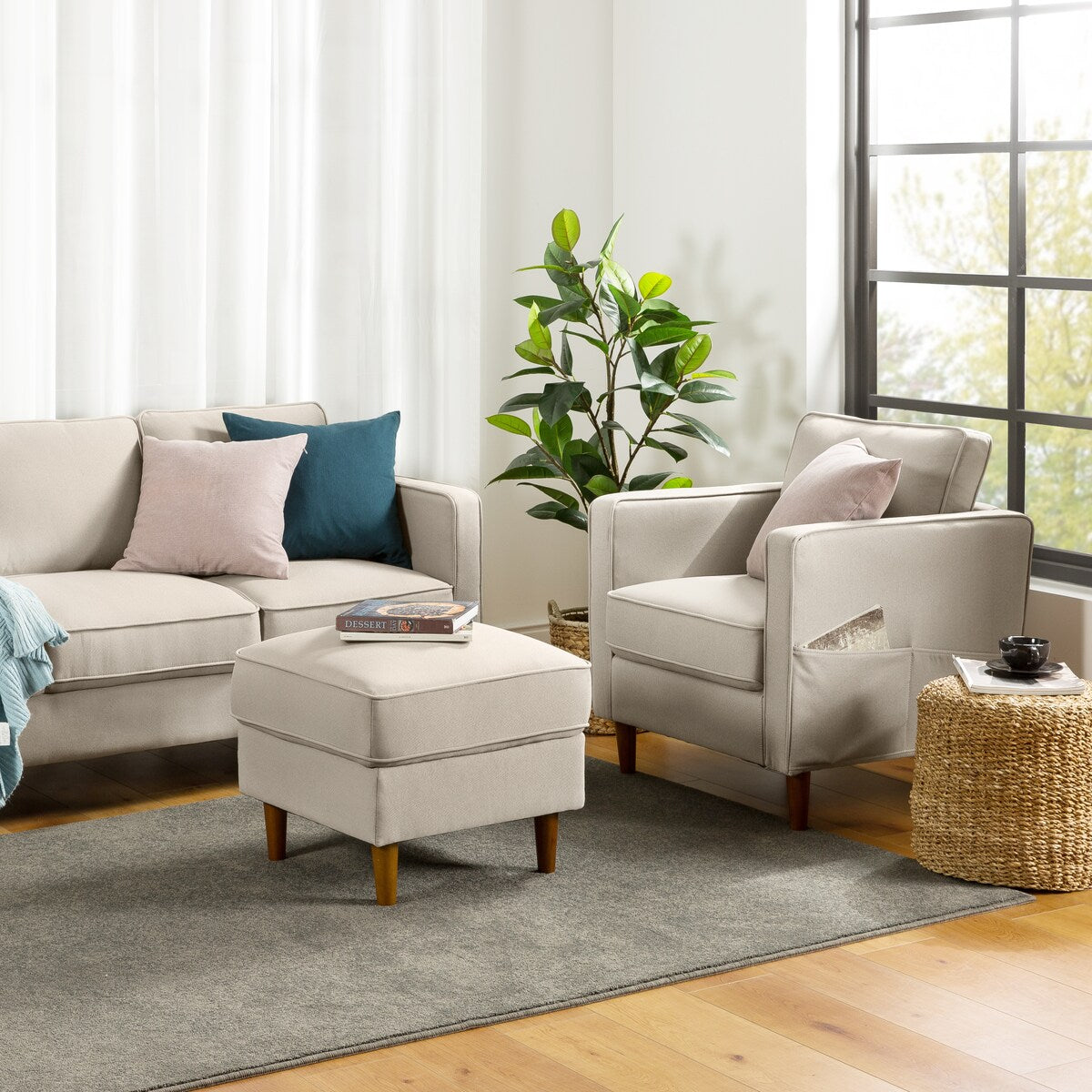 HANA Modern Linen Sofa w/ Arm Pockets by...