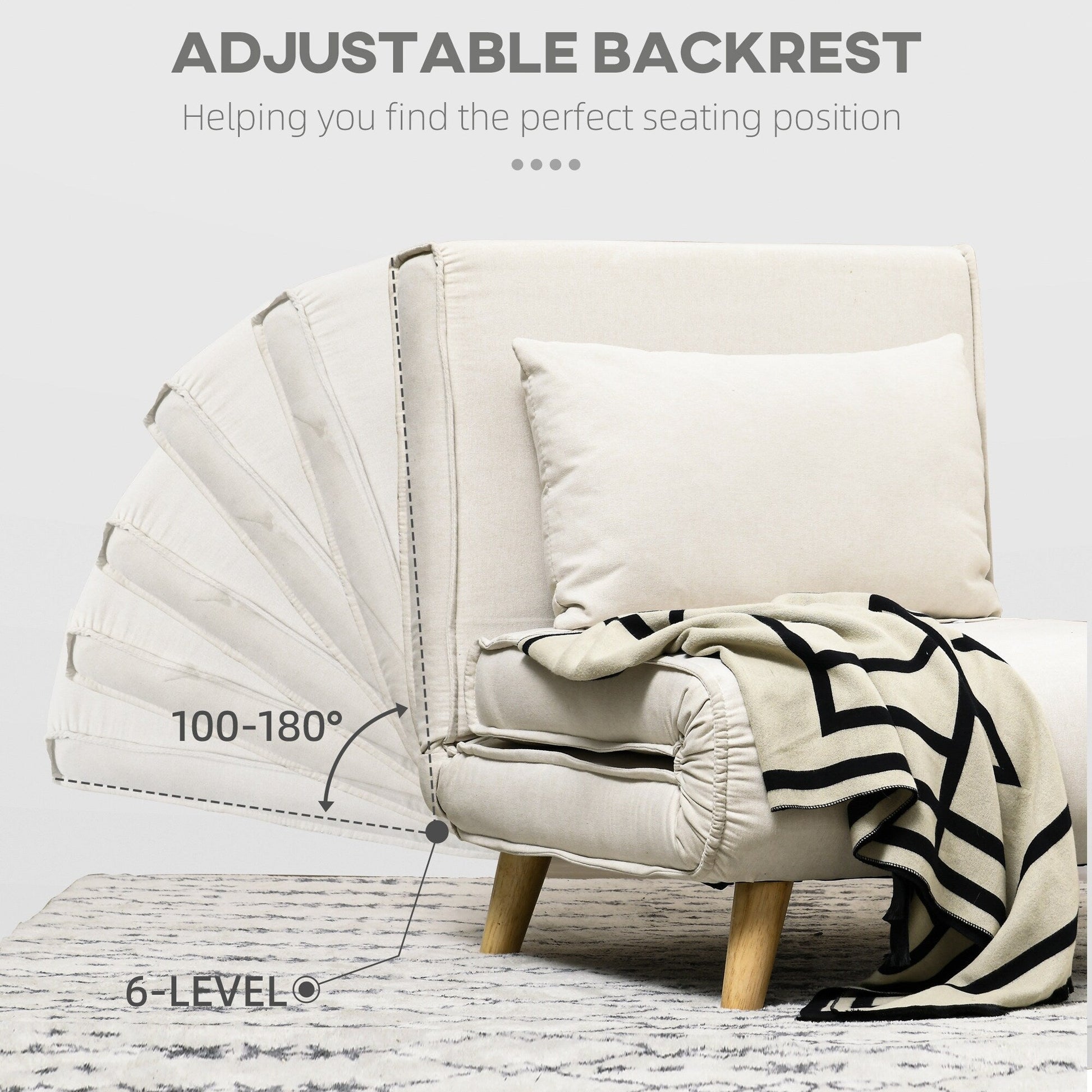 HOMCOM Convertible Chair Bed, 2-in-1 Multi-Functional Sofa Bed, Sleeper Chair with Adjustable Backrest for Living Room,Beige