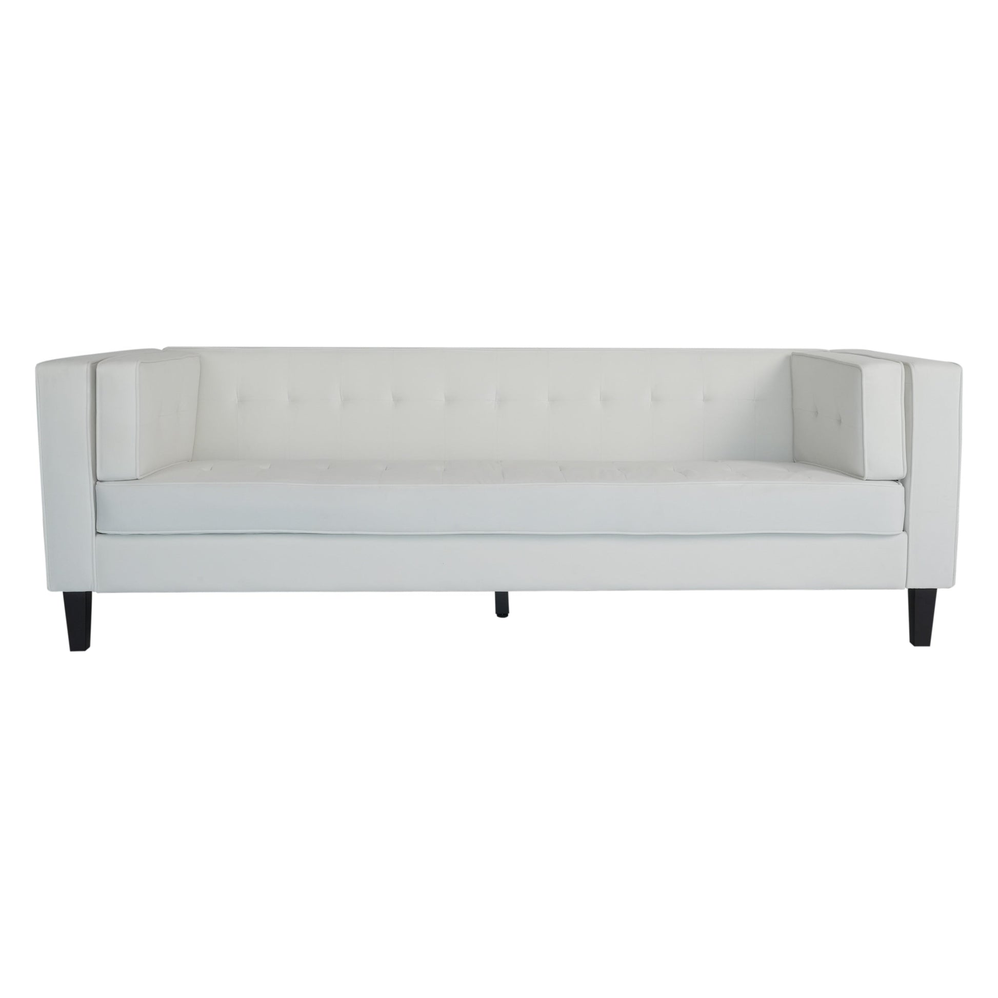 Ivory Velvet Button Tufted 3-seater Sofa with Hardwood...