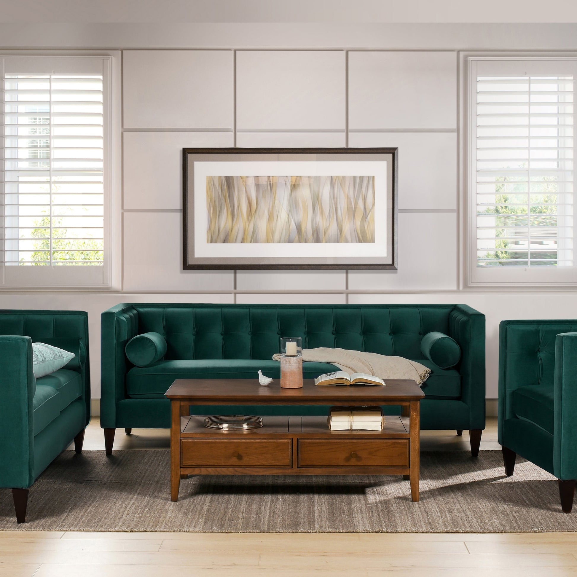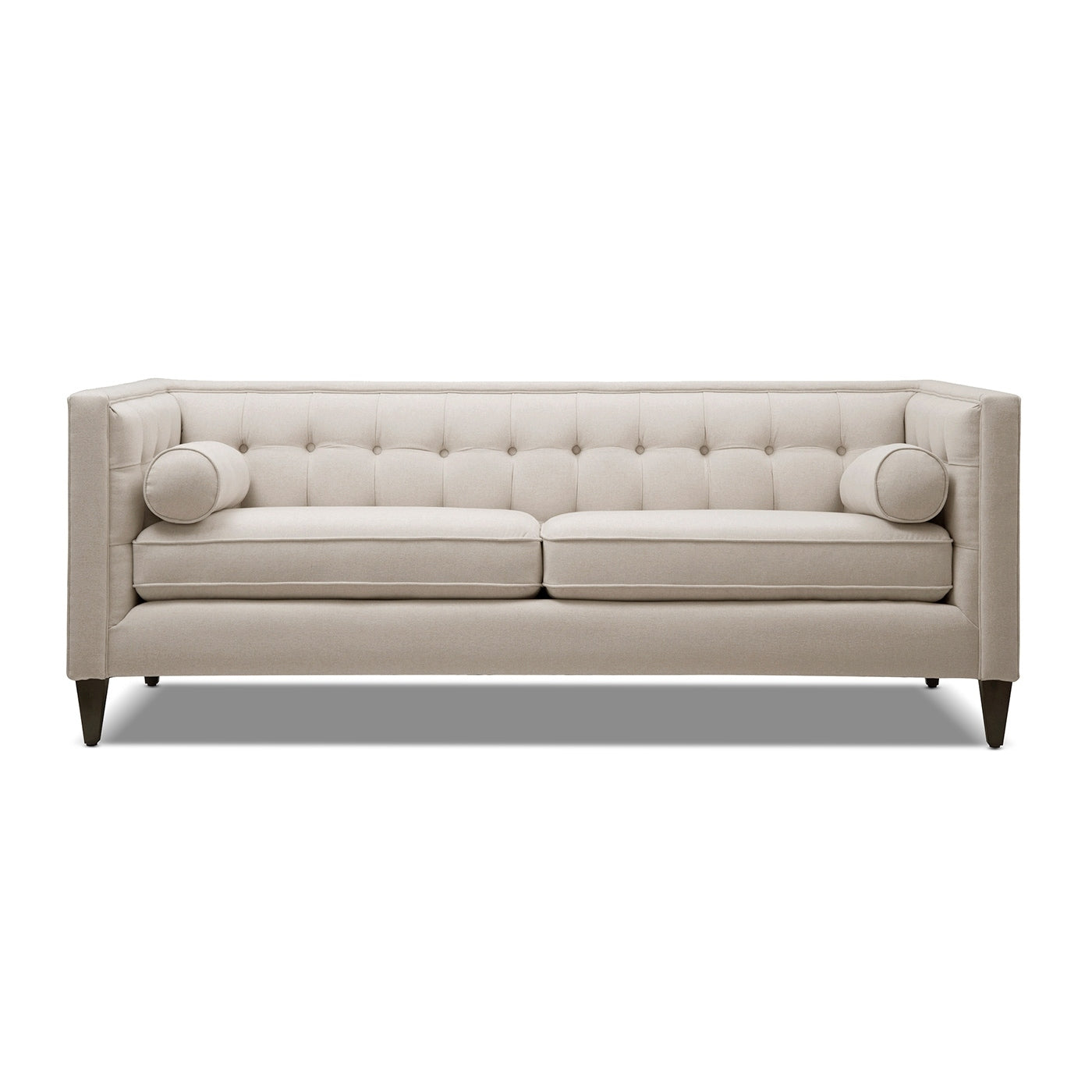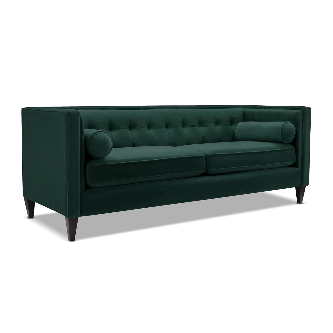 For a bold, modern statement to your living room decor, look to the Jack Seating Collection by Jennifer Taylor Home. The traditional Tuxedo silhouette gets a modern makeover in this perfectly square button tufted design, with tapered wood legs and a geometric silhouette reminiscent of the Chesterfield style. The medium-firm seat cushions are completely removable and reversible and are set off stylishly with two accent bolster pillows. Whether you're relaxing with your favorite book in the family room or entertaining guests, the Jack Seating Collection can fill any living situation with the matching set of sectional, sofa, loveseat, and armchair available.