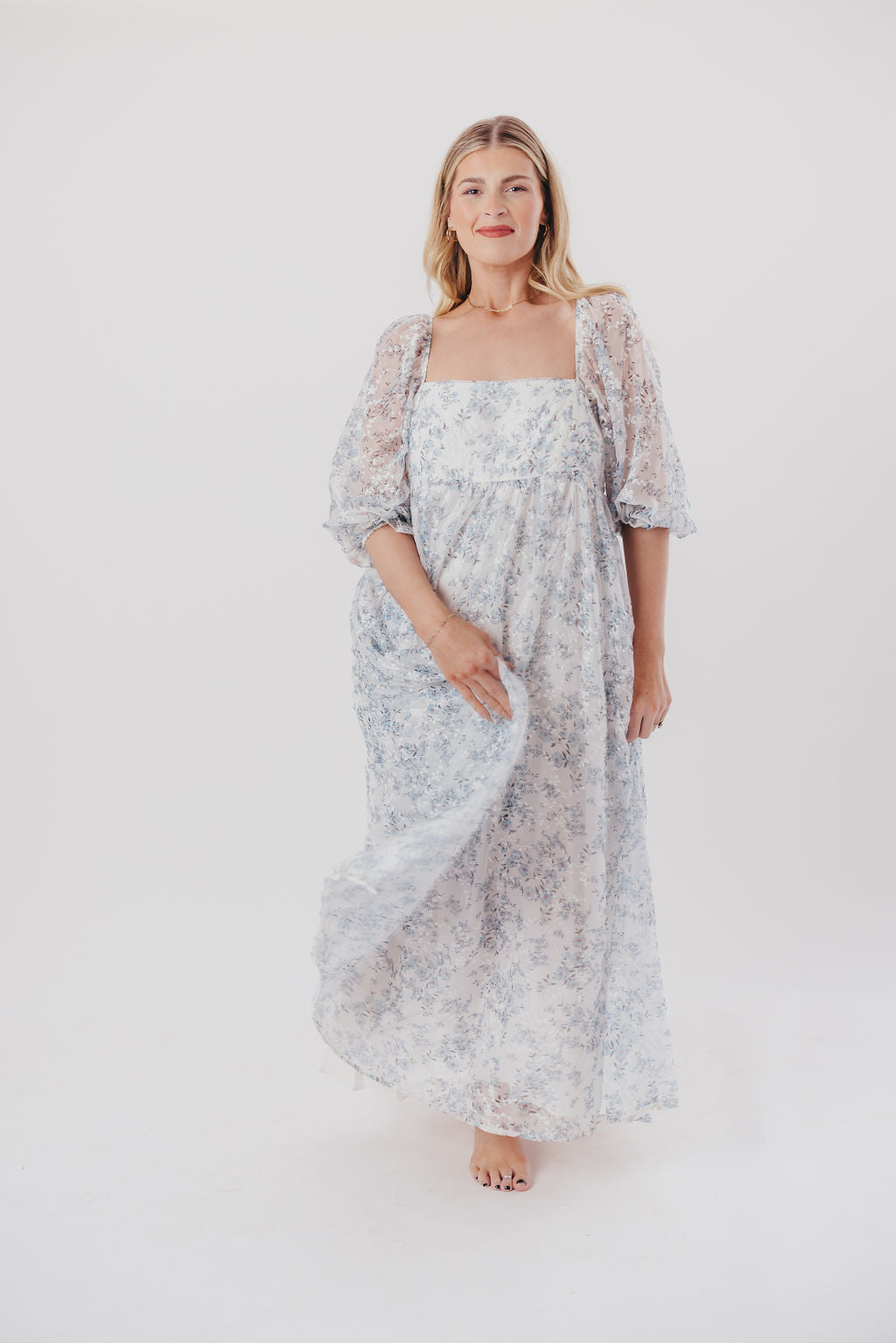 Mona Maxi Dress with Smocking in Blue White...