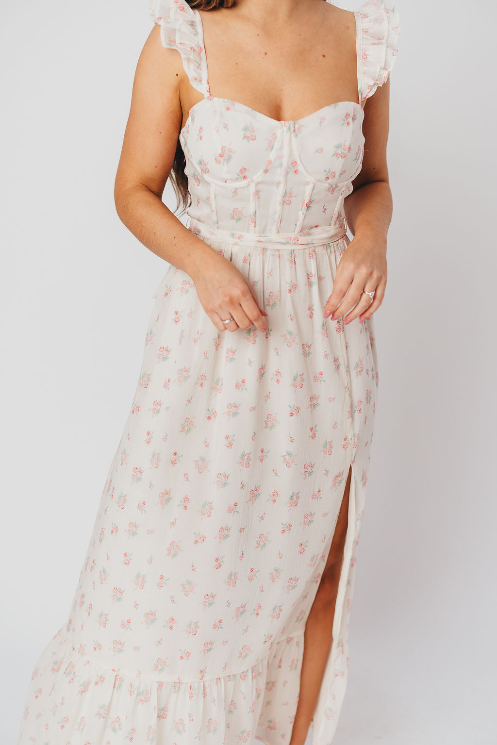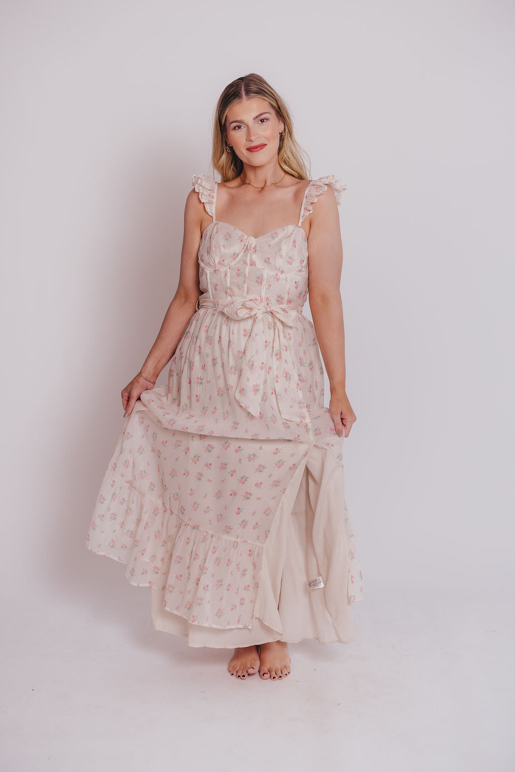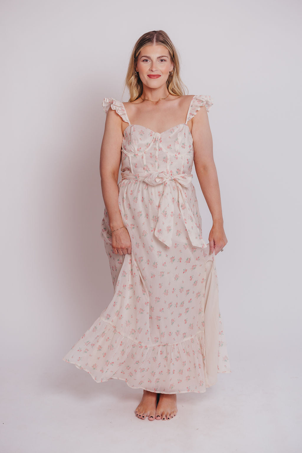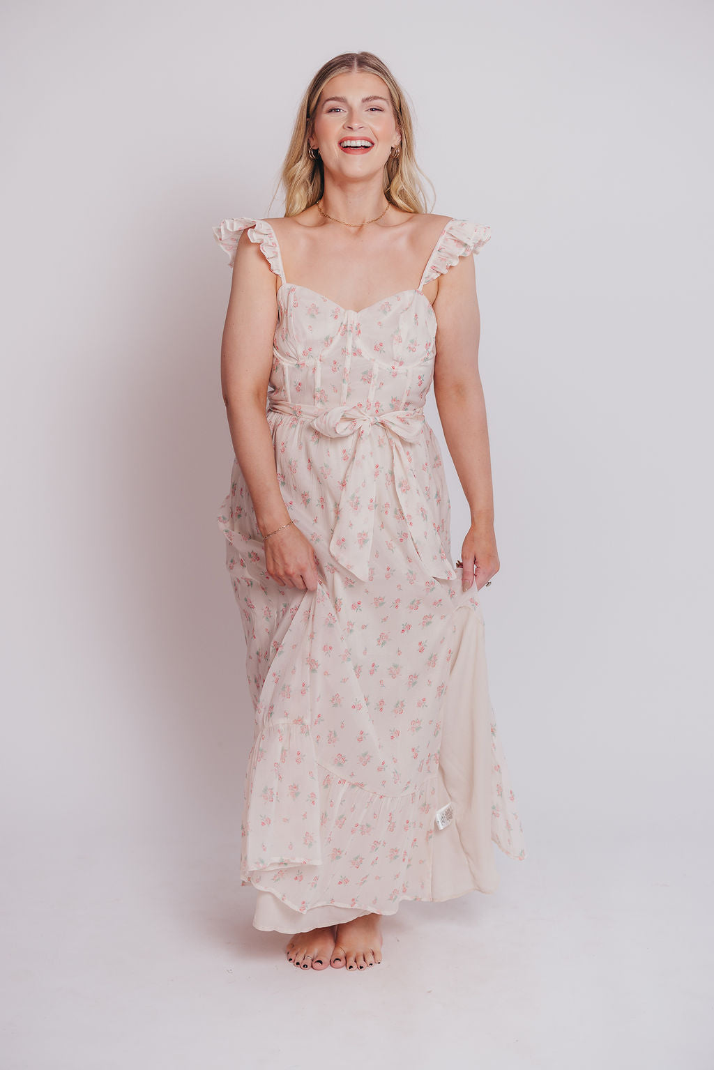 Rosamund Bustier-Style Maxi Dress in Blush Pink Floral...
